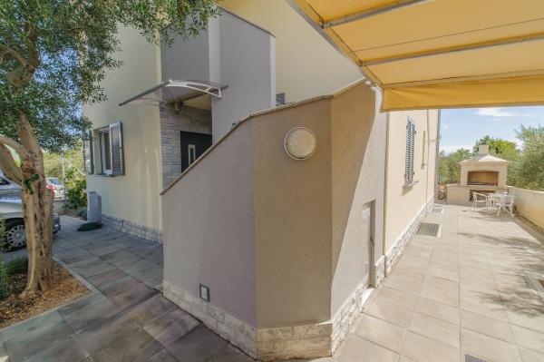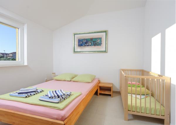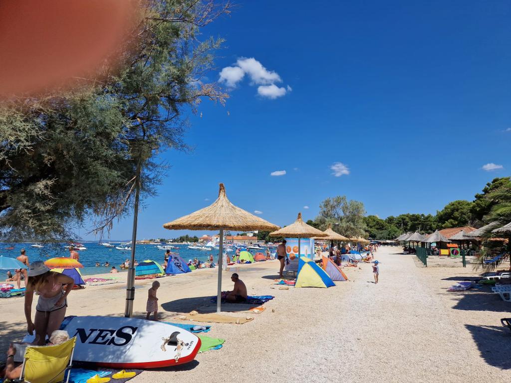 Do wynajęcia jest całe piętro domu rodzinnego z internetem, klimatyzacją, telewizorem, dwiema sypialniami z łazienką, salonem z kuchnią i tarasem, zadaszonymi miejscami parkingowymi, grillem, przystankiem autobusowym w centrum Filip i Jakov. Plaża oddalona jest o 250 m, sklepy, restauracje, apteka i centrum handlowe – o 100 m. Plaża jest piaszczysta, częściowo z drobnym piaskiem, bezpłatna. Oferuje różnorodne atrakcje dla dzieci i młodzieży oraz restauracje. Życie nocne: spacery wzdłuż morza, muzyka w restauracjach lub na nabrzeżu, park rozrywki i kolejka dla dzieci „Tomica i Przyjaciele”. Biograd na Moru oddalony jest o 3 km, a Zadar – o 26 km. Z Filip i Jakov można wybrać się na jednodniową wycieczkę na wyspy Kornati, do wodospadów Krka, nad jezioro Vrana, na starówkę w Zadarze, do parku rozrywki w Biogradzie, a nawet nad Jeziora Plitwickie. Nie potrzebujesz samochodu, aby tu odpocząć – wszystko można zrobić pieszo. Można dojechać autobusem bezpośrednio do domu lub samolotem na lotnisko Zemunik koło Zadaru (25 km). Jeśli gospodarza nie ma w domu, goście zazwyczaj zostają sami w domu.
