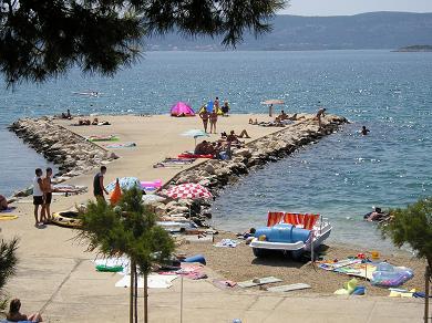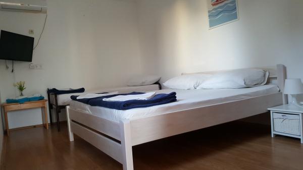 Opłata jest wliczone w cenę.Były to nasze pierwsze wakacje w Chorwacji. Ciężko było znaleźć nocleg na ostatnią chwilę, ale udało się tutaj. Trochę mieliśmy obawy, tak w ciemno z ogłoszenia ale kontakt od początku był tak dobry, że czuliśmy się spokojnie. Po przyjeździe na miejsce miła właścicielka powitała nas, pokazała pokój i dopełniliśmy formalności. Podczas pobytu, była cały czas dostępna przez pocztę e-mail i nie tylko, mogliśmy prosić o pomoc w razie problemów i nie tylko. Rozmowa bez problemu w języku angielskim a gdy ktoś sobie nie radzi to poprzez email / translator. Sam apartament adekwatny do ceny, pomieszczenie nie najnowsze ale łóżka dosyć wygodne, wszystko w miarę czyste, dostęp do ręczników, mała kuchnia z pełnym wyposażeniem - wszystko co potrzeba. W dzień przyjazdu było ciepło, ale później po schłodzeniu klimatyzacja dawała rady, używaliśmy jej czasem jak wychodziliśmy na zewnątrz żeby wracać do schłodzonego mieszkania ponieważ używanie klimatyzacji podczas przebywania z dziećmi w mieszkaniu bardzo łatwo doprowadza je do choroby i chcieliśmy tego uniknąć jak to zawsze robimy. Właściciele nie zwracali nam na to uwagi choć w regulaminie był zakaz używania po wyjściu lecz myślę że kompromis był zachowany i nie mają nam tego za złe i potrafią to zrozumieć, tak jak my staraliśmy się uszanować to by zachować kompromis w jej używaniu. Wszystkie niedogodności rekompensuje widok na morze na najwyższym piętrze i taras na którym spędzaliśmy z żoną wieczoru przy klimatycznym głosie cykad - cudowne doznanie :) Okolica ładna, trochę stromo do mieszkania ale nam to nie przeszkadzalo dzieciakom czasem trochę tak Do plaży około 10-12 minut spokojnym krokiem. Na miejscu w okolicy wszystko dostępne, plaża niezatłoczona, piaszczysta i kamienista, woda przejrzysta, pyszne lody, duży wybór knajp można zjeść taniej jak i drożej , deptak na wieczorne spacery, brak wielkich tłumów, rejsy na Kornati, dobre wyroby swojskie z polecenia właścicieli. Wieczorami spokojnie, cicho a jak ktoś chciał poszaleć na mieście podczas naszego pobytu były dożynki, koncert, pokaż fajerwerków więc na prawdę doświadczyliśmy wszystkiego ;) Na początek pobytu miłe powitanie w postaci chłodnego piwa i słodyczy dla dzieciaków a na koniec miłe pożegnanie z upominkiem dla nas za co jeszcze raz bardzo dziękuje, cała rodzina już próbowała :) Do właścicieli - czuliśmy się bardzo