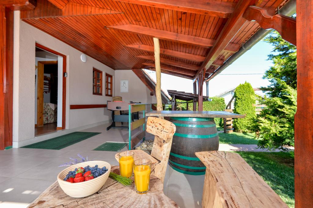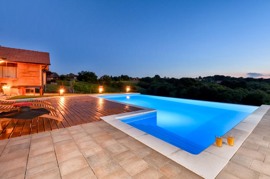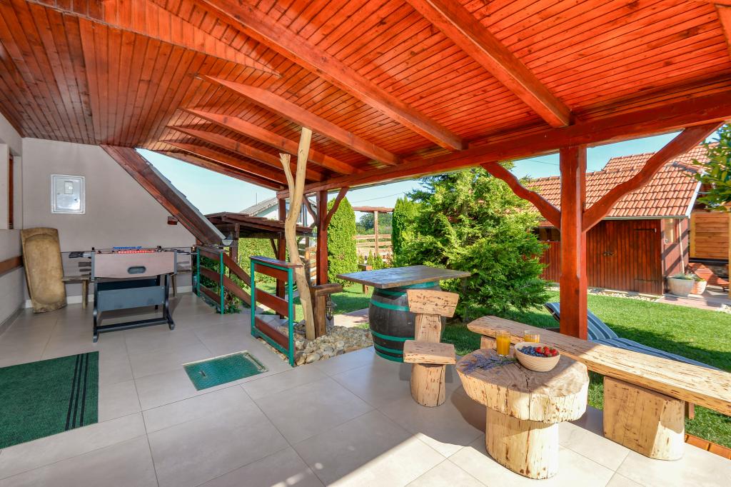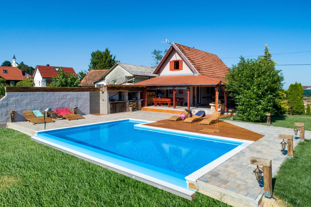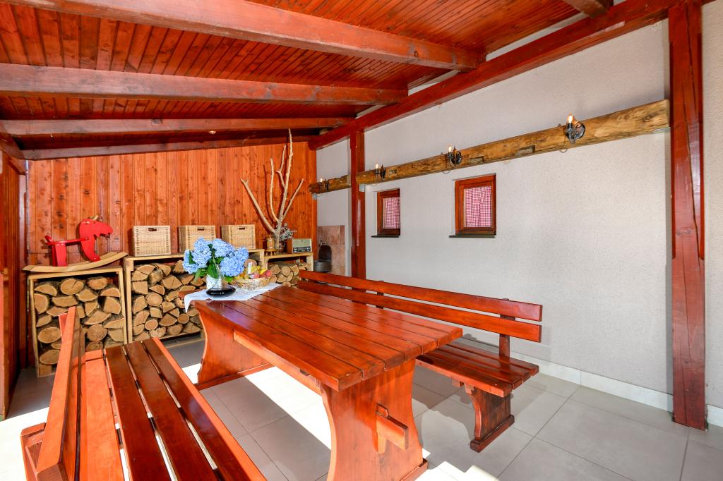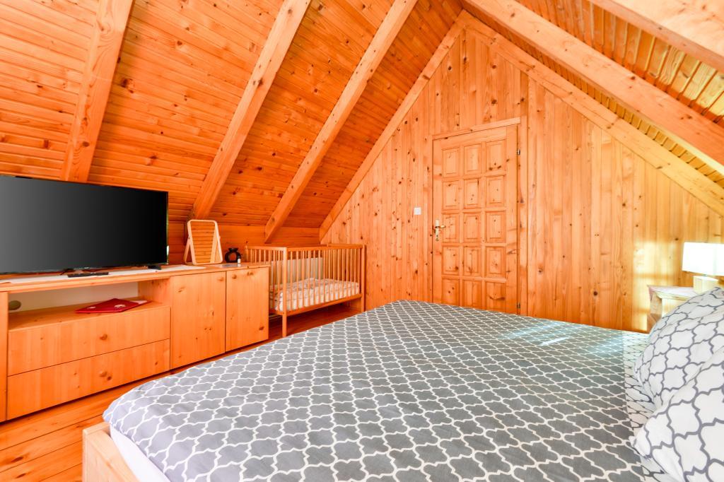 Idealne wakacje od codzienności Dom wakacyjny Holiday Home Dika w Kapelščak składa się z dwóch domów, jeden obok drugiego. W czterech sypialniach, z trzema dużymi podwójnymi łóżkami i dwoma oddzielnymi łóżkami, możemy pomieścić do ośmiu osób. Dwie kuchnie wewnątrz i jedna na zewnątrz umożliwiają przygotowanie wyśmienitych potraw. Oferujemy duży grill na świeżym powietrzu na przestronnym tarasie gotowym na rodzinne spotkania. Pobyt w domu dopełnia sauna, a na uroczo urządzonym podwórku znajduje się basen jacuzzi z podgrzewaną wodą. Do dyspozycji Gości jest również basen bez krawędzi ze wspaniałym widokiem na przyrodę. Latem można biesiadować przy zewnętrznym kominku, a zimą ogrzać się paląc w piecu potasowym lub po prostu przekręcić termostat i włączyć ogrzewanie. W piwnicy domu znajdziesz butelki starannie wyselekcjonowanych win od winiarzy Međimurje, z możliwością degustacji boskiej kropli naszego klimatu. Obok domu znajduje się podwórko, sad i las. Przyjemny spacer przez piękną przyrodę górnego Međimurja doprowadzi Cię do LifeClass Terme Sveti Martin w 25 minut.