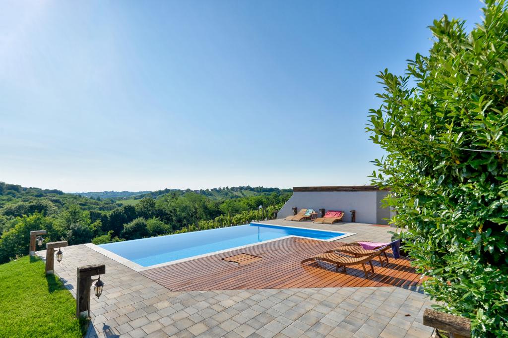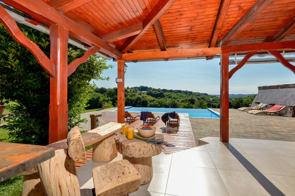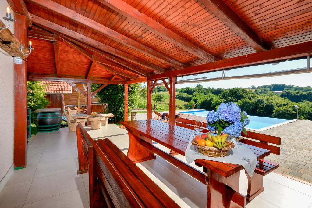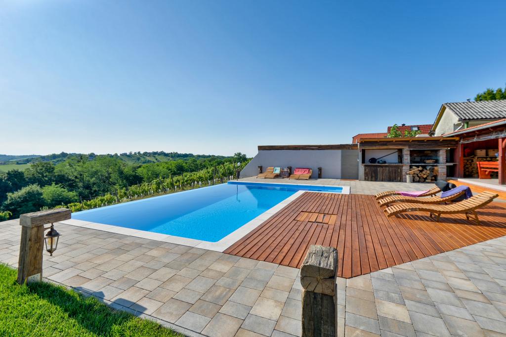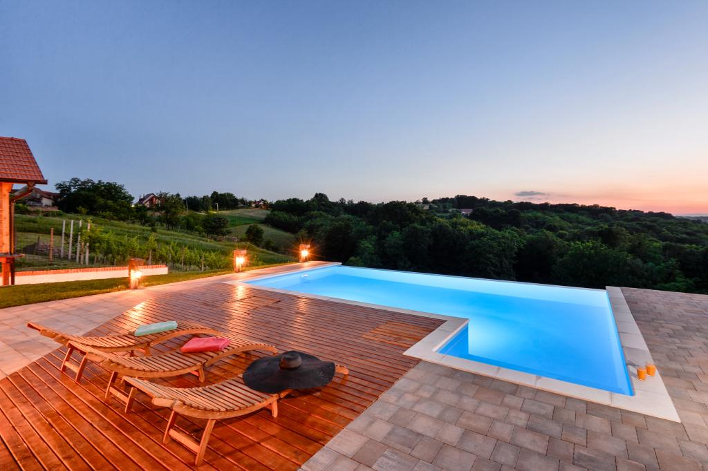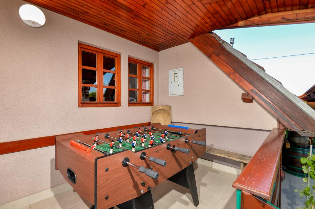 Idealne wakacje od codzienności Dom wakacyjny Holiday Home Dika w Kapelščak składa się z dwóch domów, jeden obok drugiego. W czterech sypialniach, z trzema dużymi podwójnymi łóżkami i dwoma oddzielnymi łóżkami, możemy pomieścić do ośmiu osób. Dwie kuchnie wewnątrz i jedna na zewnątrz umożliwiają przygotowanie wyśmienitych potraw. Oferujemy duży grill na świeżym powietrzu na przestronnym tarasie gotowym na rodzinne spotkania. Pobyt w domu dopełnia sauna, a na uroczo urządzonym podwórku znajduje się basen jacuzzi z podgrzewaną wodą. Do dyspozycji Gości jest również basen bez krawędzi ze wspaniałym widokiem na przyrodę. Latem można biesiadować przy zewnętrznym kominku, a zimą ogrzać się paląc w piecu potasowym lub po prostu przekręcić termostat i włączyć ogrzewanie. W piwnicy domu znajdziesz butelki starannie wyselekcjonowanych win od winiarzy Međimurje, z możliwością degustacji boskiej kropli naszego klimatu. Obok domu znajduje się podwórko, sad i las. Przyjemny spacer przez piękną przyrodę górnego Međimurja doprowadzi Cię do LifeClass Terme Sveti Martin w 25 minut.