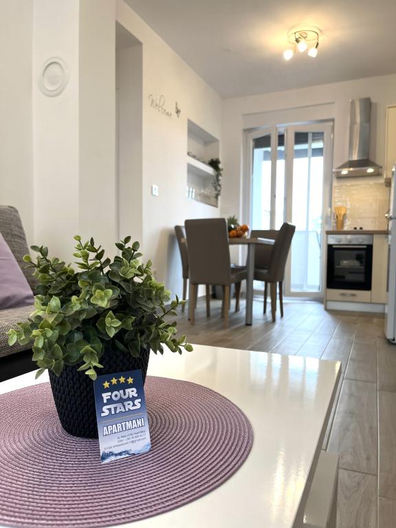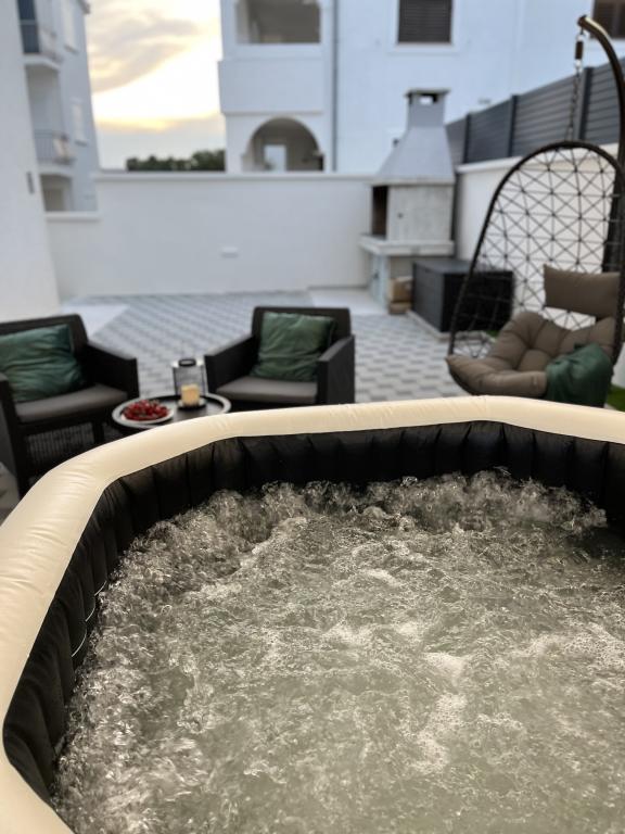 Nowe luksusowe apartamenty Four Stars zlokalizowane są w Sveti Petar na moru, pomiędzy Biogradem na Moru i Zadarem. Apartamenty znajdują się w pierwszym rzędzie od morza, 40 metrów od kamienistej plaży. Wszystkie apartamenty są klimatyzowane i dźwiękoszczelne. W każdym oknie i drzwiach balkonowych znajdują się moskitiery. Drzwi wejściowe do apartamentu są ognioodporne i antywłamaniowe, telewizor LCD z płaskim ekranem i kanałami telewizji satelitarnej, bezpłatne Wi-Fi. Z balkonu roztacza się wspaniały widok na morze i wyspę miłości - Galešnjak. W ofercie bezpłatny prywatny parking, oraz grill za domem, a także jacuzzi, basen z hydromasażem, który zapewnia pełne wyposażenie naszego obiektu. Krótko mówiąc, apartamenty Four Stars oferują idealne wakacje i ucieczkę od zabieganego życia. Jeśli szukasz adrenalinowej zabawy, masz do dyspozycji zabawny Dalmaland Fun & Water Park w Biogradzie na moru (11 km). W pobliżu znajduje się miasto Zadar (17 km), które jest pełne treści historycznych. Cóż, decyzja należy do Ciebie, a my czekamy na Ciebie :)
