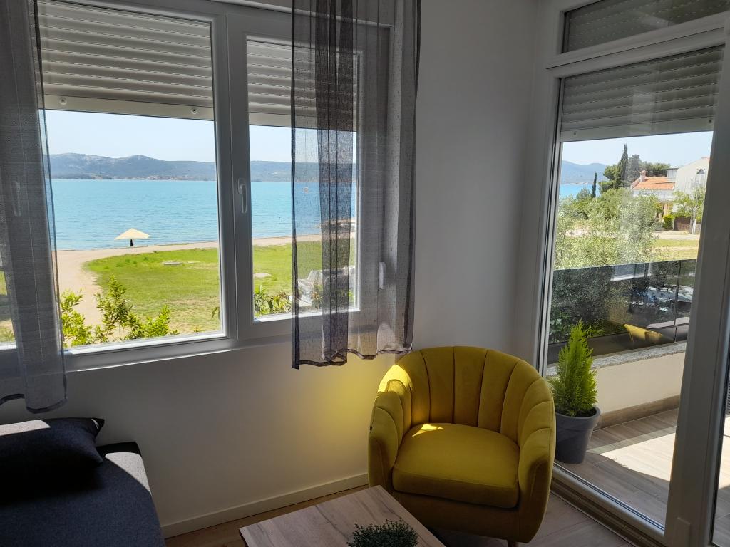 Wynajmę dwa nowocześnie urządzone iw pełni wyposażone, klimatyzowane apartamenty z pięknym widokiem na morze, które oddalone jest zaledwie o 60 m. Przył. 1 (4****) znajduje się na pierwszym piętrze, posiada dwie sypialnie, łazienkę z pralką, kuchnię wyposażoną we wszelki sprzęt AGD (zmywarka, mikrofalówka, toster...), pokój dzienny z wyciąganą łóżko i taras z pięknym widokiem na wyspę Pašman. App 2 znajduje się na poddaszu, posiada dwie sypialnie, kuchnię z salonem, łazienkę i taras z widokiem na morze. Jest wyposażony dokładnie tak samo jak App 1. Parking dla samochodów znajduje się na podwórzu lub przed podwórzem.