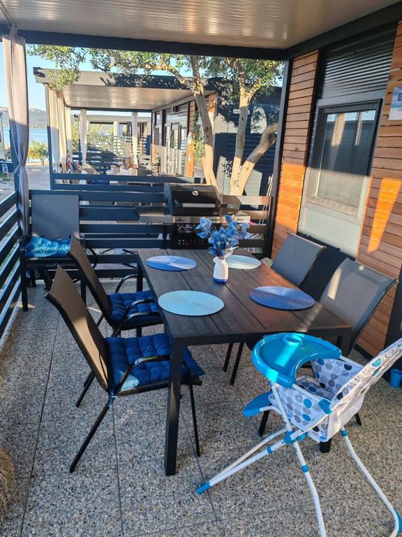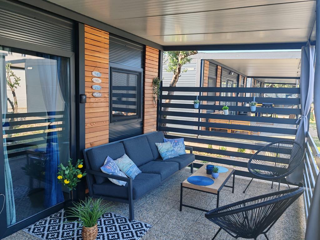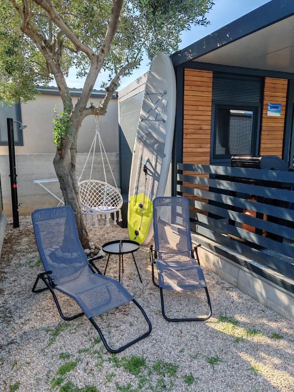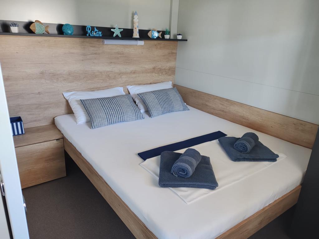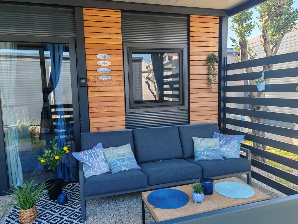Nowy, w pełni wyposażony dom mobilny znajduje się w niedawno odnowionym ośrodku Camp Tamaris. Dom jest w pełni wyposażony we wszystkie udogodnienia zapewniające przyjemny wypoczynek. Zaletą domu jest bliskość pięknej plaży, oddalonej zaledwie o 15 metrów. Opis domu: -2 sypialnie z łóżkami małżeńskimi (140x200 i 160x200) i pościelą -kuchnia z salonem (rozkładany stół, rozkładana sofa) -łazienka (ręczniki i suszarka do włosów) -duży przestronny taras (stół + 6 krzeseł, meble i krzesła do siedzenia, grill gazowy z dodatkowym palnikiem do gotowania)