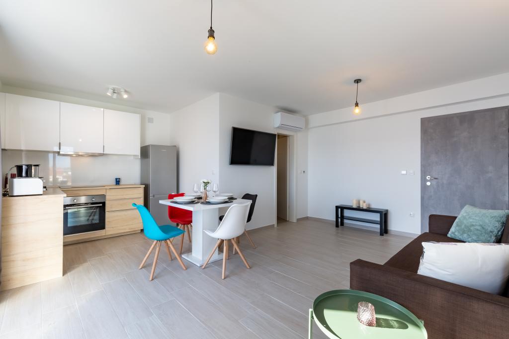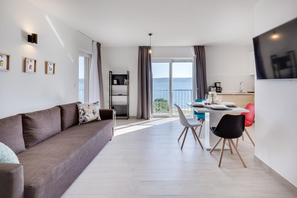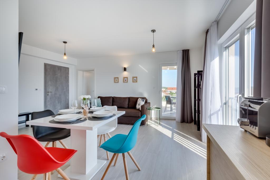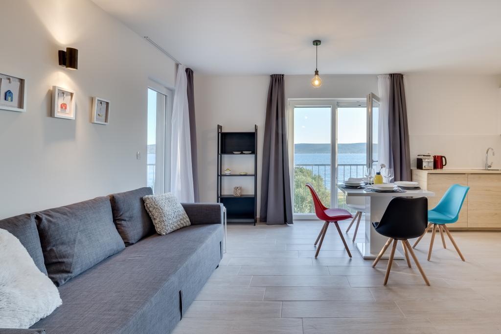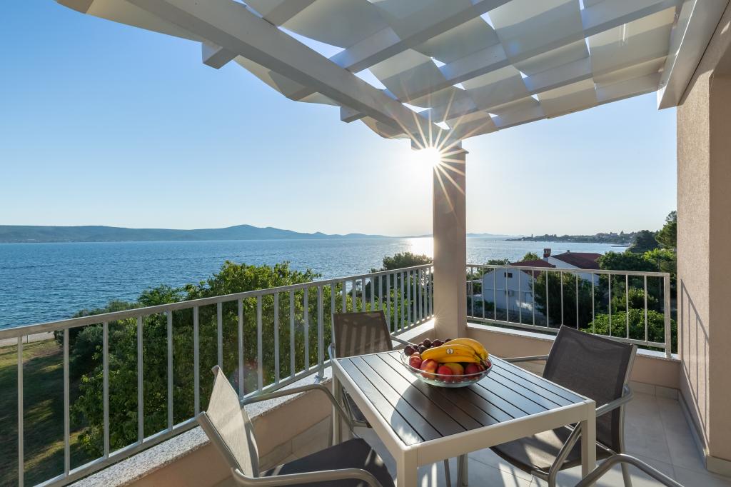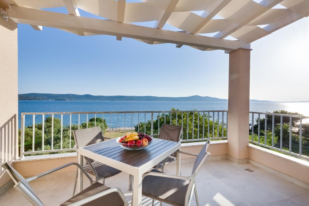 Nowe apartamenty w doskonałej lokalizacji bezpośrednio nad morzem. Tylko dziedziniec pełen drzew oliwnych dzieli Cię od morza. Wszystkie apartamenty posiadają taras z pięknym widokiem na morze. Posiadają w pełni wyposażoną kuchnię (m.in. płytę indukcyjną, piekarnik, zmywarkę, ekspres do kawy), każdy pokój posiada moskitierę oraz klimatyzację. Duży telewizor 50 cali. Łazienki wyposażone są w kabinę prysznicową. Ciesz się kąpielą w morzu, a następnie odpocznij na leżakach w cieniu drzew oliwnych. Wieczorem spaceruj wzdłuż wybrzeża lub odwiedzaj pobliskie miasta (Zadar, Biograd, Šibenik...).