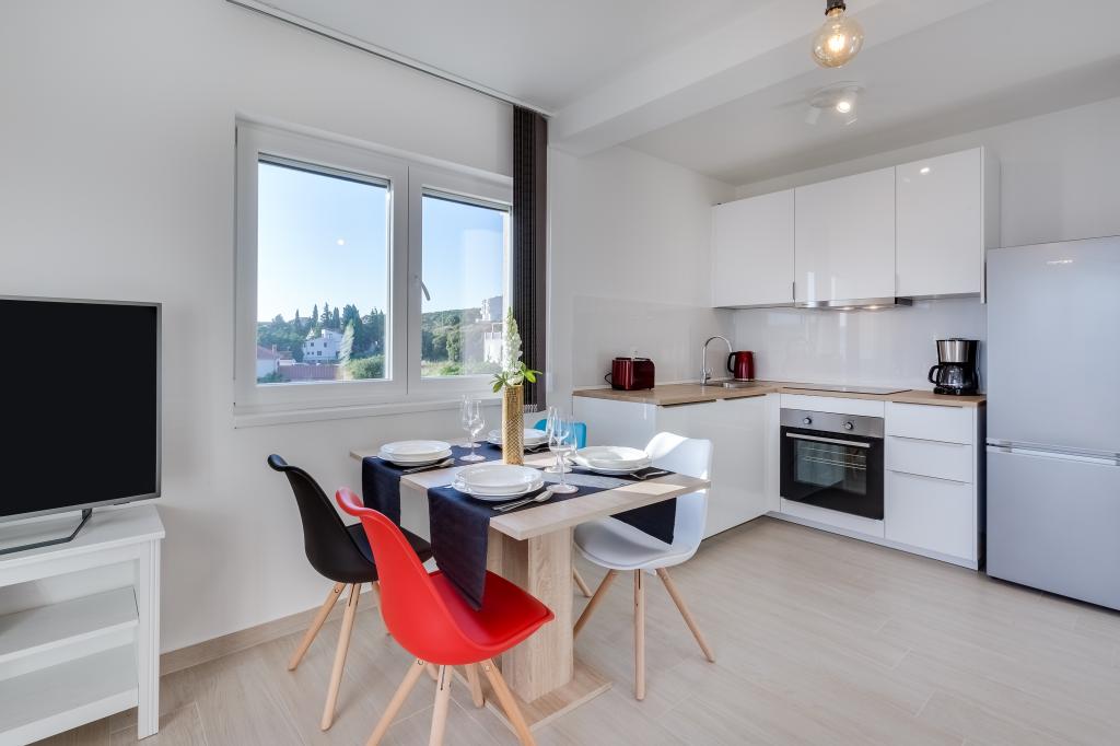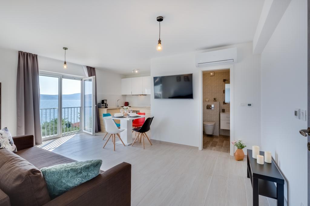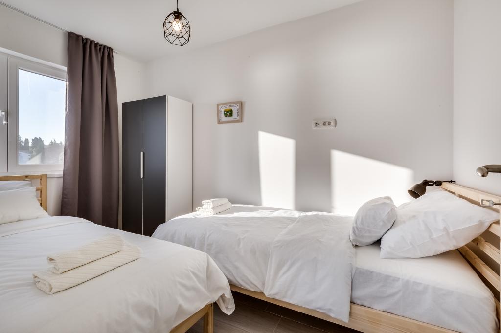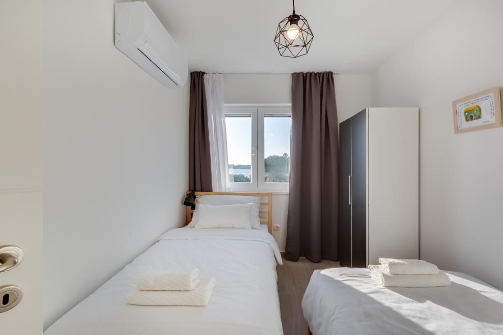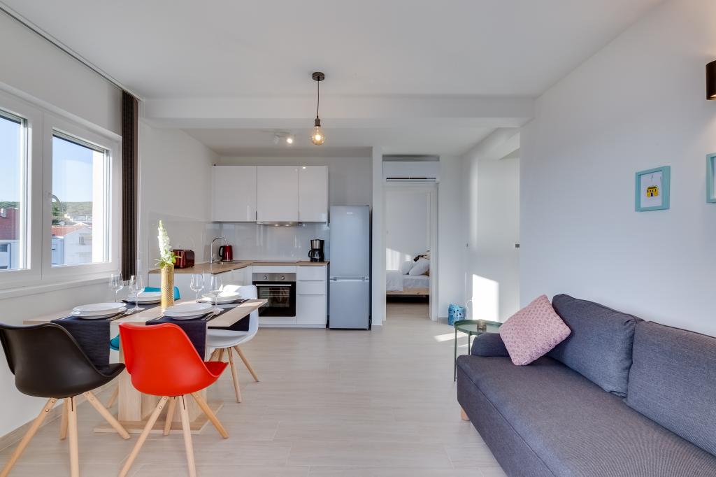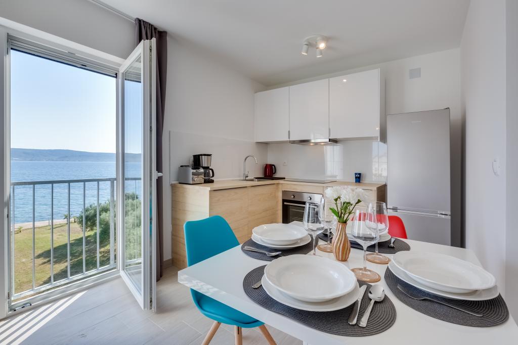 Nowe apartamenty w doskonałej lokalizacji bezpośrednio nad morzem. Tylko dziedziniec pełen drzew oliwnych dzieli Cię od morza. Wszystkie apartamenty posiadają taras z pięknym widokiem na morze. Posiadają w pełni wyposażoną kuchnię (m.in. płytę indukcyjną, piekarnik, zmywarkę, ekspres do kawy), każdy pokój posiada moskitierę oraz klimatyzację. Duży telewizor 50 cali. Łazienki wyposażone są w kabinę prysznicową. Ciesz się kąpielą w morzu, a następnie odpocznij na leżakach w cieniu drzew oliwnych. Wieczorem spaceruj wzdłuż wybrzeża lub odwiedzaj pobliskie miasta (Zadar, Biograd, Šibenik...).
