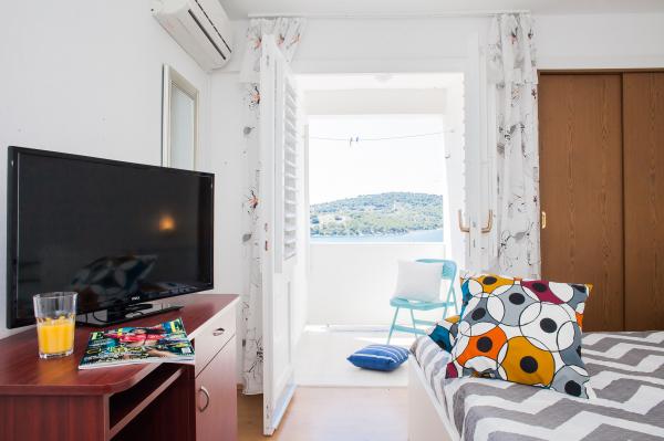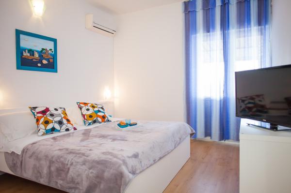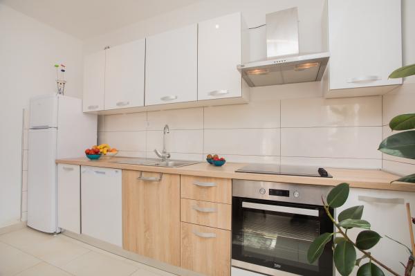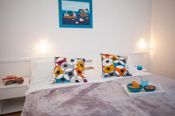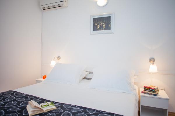Hana Home – Apartamenty z widokiem na morze | Tisno Hana Home oferuje eleganckie zakwaterowanie w 8 nowocześnie urządzonych apartamentach, położonych zaledwie 30 metrów od morza, z pięknym widokiem na morze. Plaża Jazina oddalona jest o 600 metrów, a centrum Tisna o zaledwie 10 minut spacerem. Wszystkie apartamenty wyposażone są w balkon, klimatyzację, telewizor, szybki internet oraz w pełni wyposażoną kuchnię z zestawem do parzenia kawy i herbaty. Goście mają do dyspozycji przestronny taras z grillem i bezpłatny prywatny parking. W lipcu i sierpniu w Tisno odbywają się słynne festiwale muzyczne, a wyspa Murter oferuje liczne możliwości zwiedzania – zatoki, plaże i promenady. W pobliżu znajdują się Parki Narodowe Krka i Kornati oraz zabytkowe miasta Szybenik, Zadar, Split i Trogir. Tisno oferuje doskonałe połączenia komunikacyjne, położone między lotniskami w Zadarze i Splicie, z szybkim dostępem do autostrady. Zwierzęta domowe są mile widziane po wcześniejszym powiadomieniu. Czekamy na Państwa przyjazd. Hana