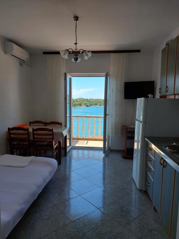Piękne apartamenty z widokiem na morze w Tisno! Ciesz się relaksującymi wakacjami w naszych nowoczesnych i komfortowych apartamentach, zaledwie 50 metrów od Morza Adriatyckiego. Każdy apartament oferuje: przestronny taras z widokiem, w pełni wyposażoną kuchnię, salon z telewizorem, bezpłatny bezprzewodowy dostęp do Internetu, klimatyzację oraz łazienkę. Oferujemy również bezpłatne miejsce do cumowania łodzi, na brzegu tuż pod apartamentem. Tisno to malownicze miejsce z szeroką gamą restauracji, kawiarni i sklepów. W pobliżu znajduje się także wiele parków narodowych i wysp, które można zwiedzać. Zarezerwuj swój pobyt u nas i ciesz się niezapomnianymi wakacjami nad Adriatykiem!