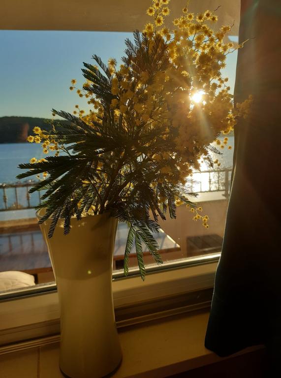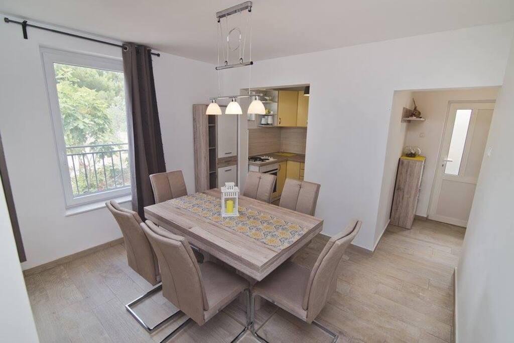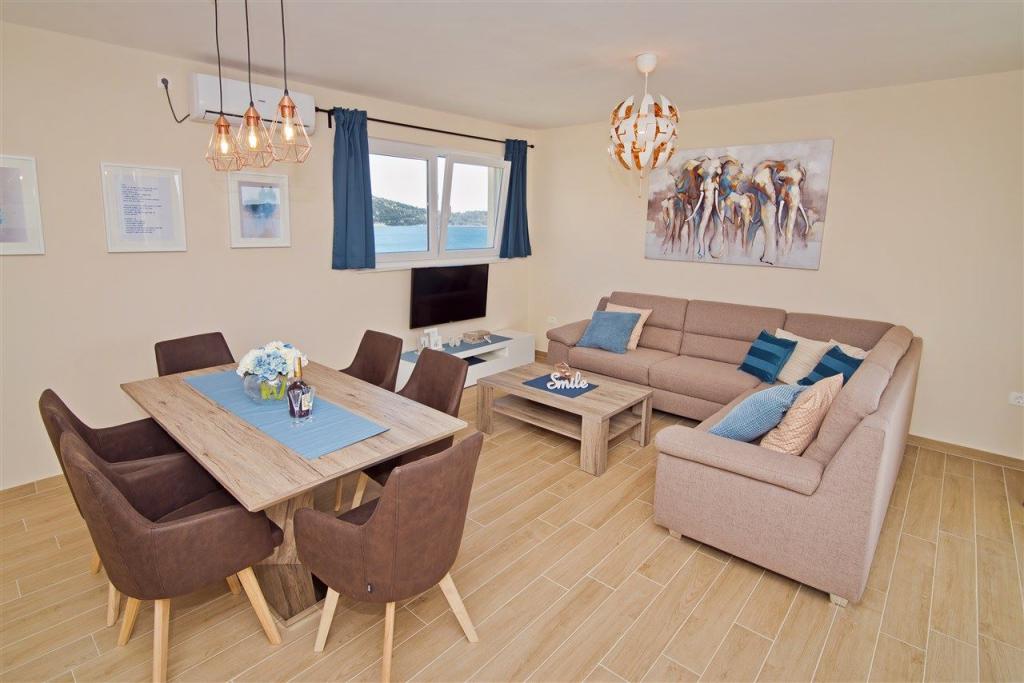 Znajdujemy się po kontynentalnej stronie mostu, tuż obok plaży Jazine. W naszym obiekcie znajdują się 2 apartamenty, każdy z 3 sypialniami, w pełni wyposażone ze wspaniałym widokiem na morze. Zawierają cały niezbędny sprzęt, a także pościel i ręczniki. Apartamenty są klimatyzowane, posiadają bezpłatny parking i Wi-Fi. Oprócz apartamentu istnieje możliwość bez dodatkowej opłaty zacumowania łodzi na boi.Przed apartamentem znajduje się małe nabrzeże do pływania, odpowiednie dla mniejszych dzieci, natomiast główna plaża Jazine to plaża 5 minut spacerem. Apartamenty położone są w spokojnej okolicy, bez hałasu i nadają się na rodzinne wakacje.