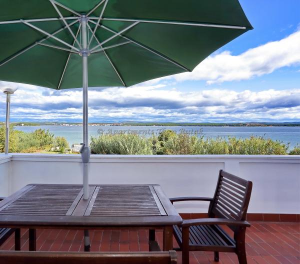 Nowoczesne apartamenty w odległości 20 metrów od piaszczystej plaży i morza na wyspie Pasman! Przytulny, przestronny i nie ma hałasu. Parking w cieniu, bezprzewodowy internet i klimatyzacja wliczona. Apartament Tkon Rutak I (A4) ma możliwość pomieścić 5. osoby dopłaty.