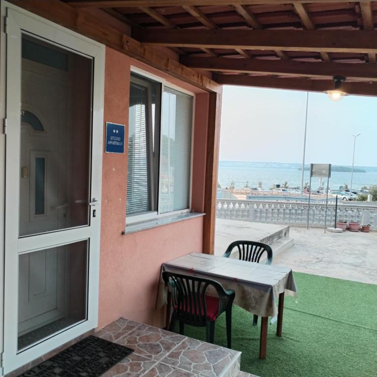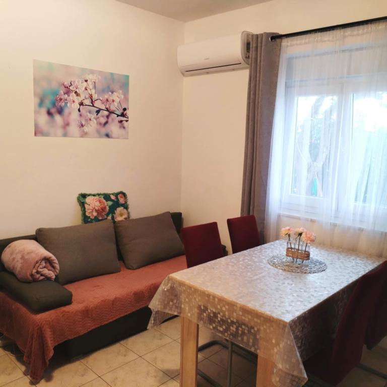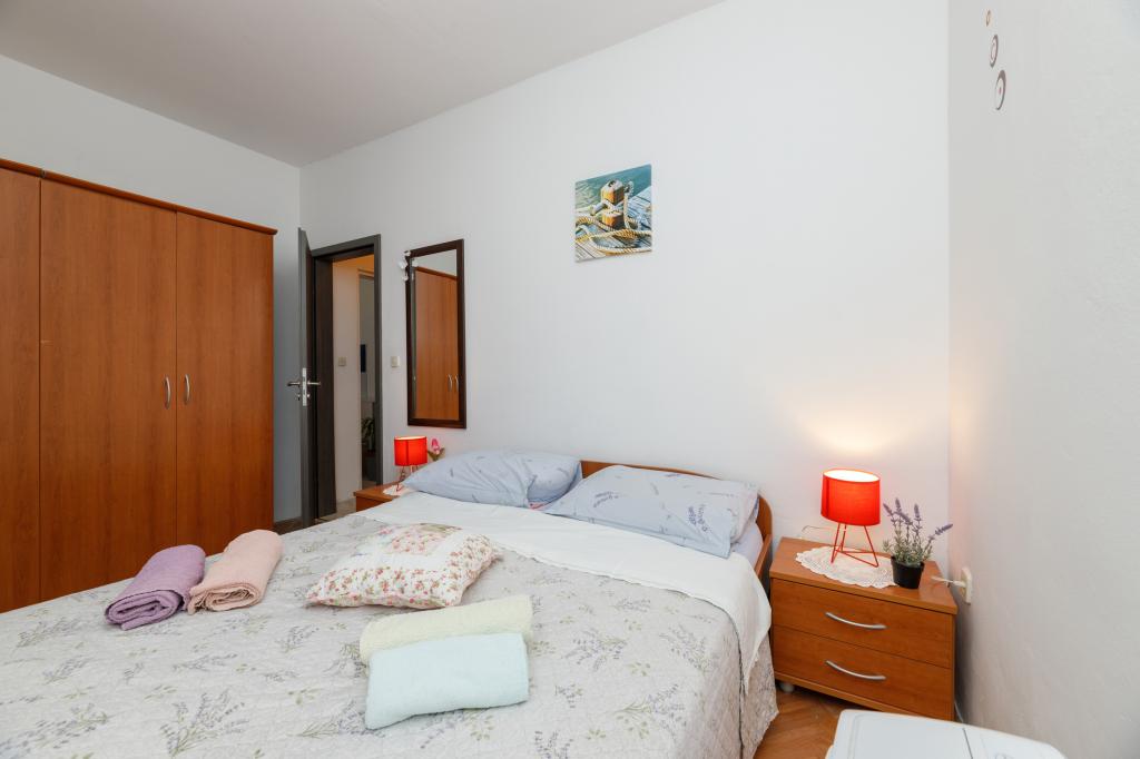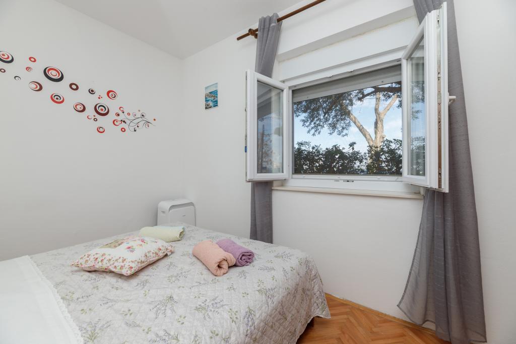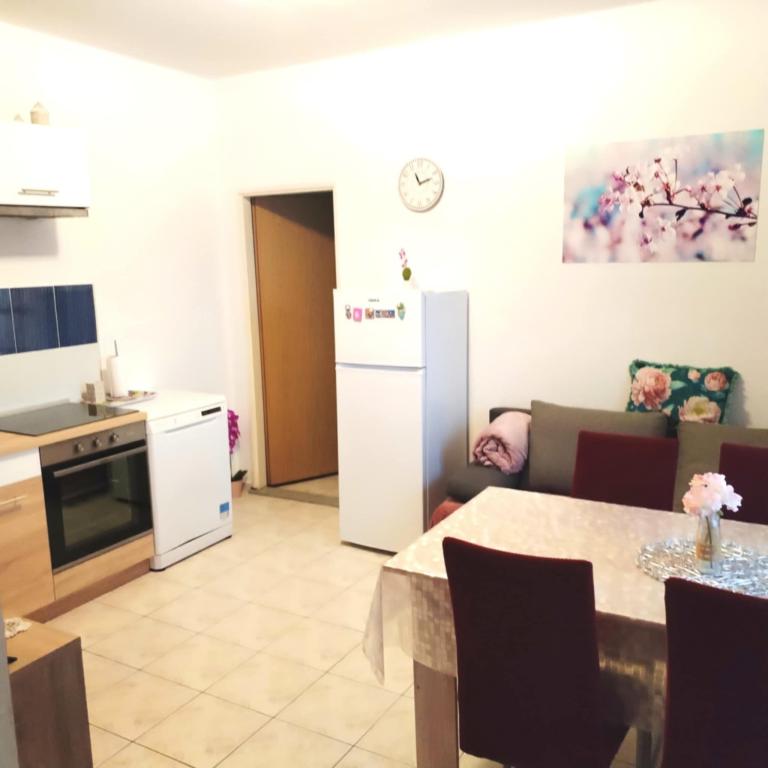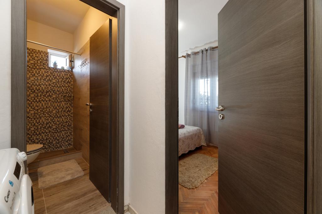 Dwupokojowe mieszkanie w Tkon na wyspie Pasman, 20 m od piaszczystej plaży i 50 m od centrum Tkon, znajduje się na parterze. Posiada pokój z podwójnym łóżkiem dla dwóch osób i rozkładaną sofą dla dwóch osób. Łazienka z kabiną prysznicową, pralką, kuchnia z piekarnikiem i zmywarką. Mieszkanie jest w pełni wyposażone, posiada TV, internet, klimatyzację, parking, grill. Posiada taras z widokiem na morze. W pobliżu mieszkania znajdują się wszystkie niezbędne obiekty, sklepy, restauracje, tawerny, kawiarnie, piekarnia, cukiernia, rzeźnik, apteka, przychodnia. W Tkon goście mogą korzystać z licznych piaszczystych plaż w zatokach, jeździć na rowerze po ścieżkach rowerowych wzdłuż wyspy, różnych imprezach i uroczystościach w okresie letnim oraz zwiedzać pobliski Park Narodowy Kornati zorganizowaną łodzią z Tkon. Mogą również odwiedzić park przyrody Vransko Lake.