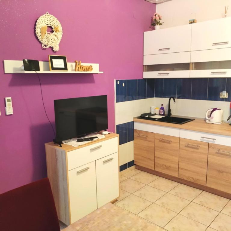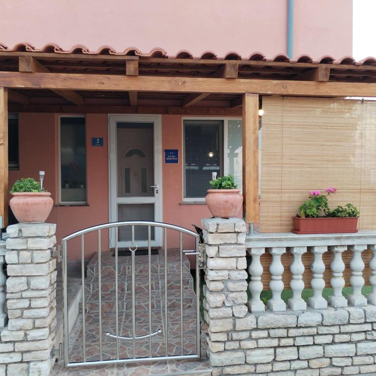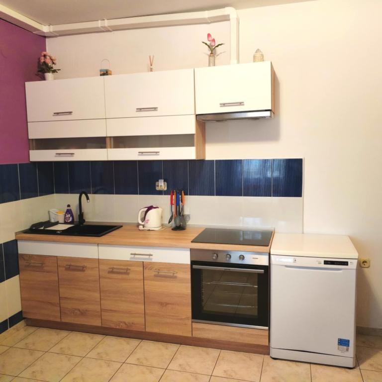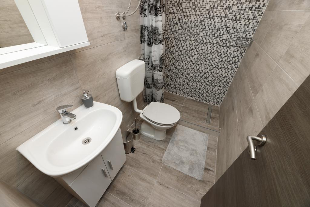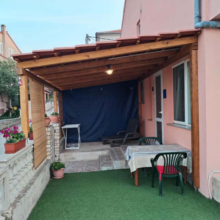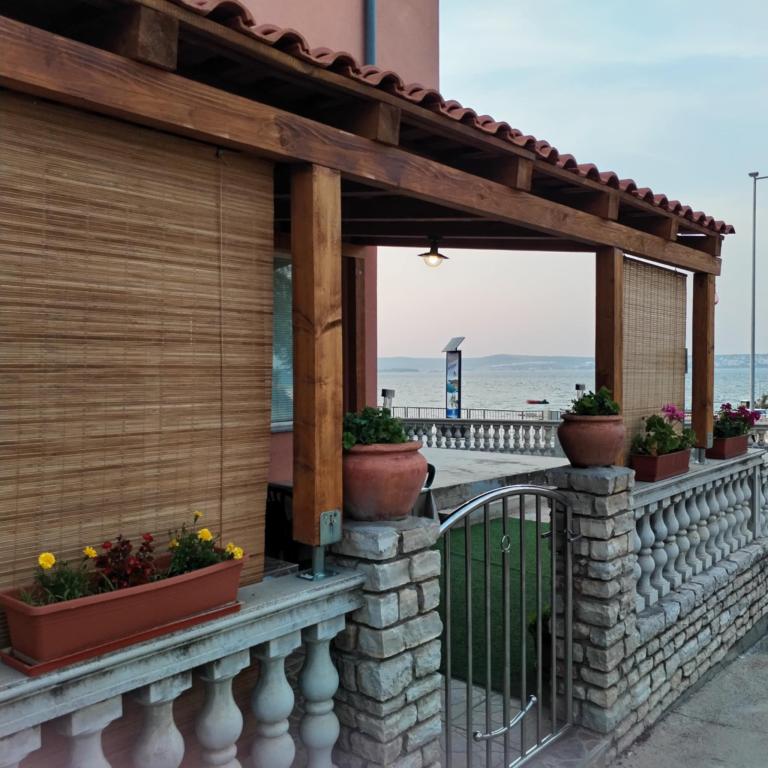 Dwupokojowe mieszkanie w Tkon na wyspie Pasman, 20 m od piaszczystej plaży i 50 m od centrum Tkon, znajduje się na parterze. Posiada pokój z podwójnym łóżkiem dla dwóch osób i rozkładaną sofą dla dwóch osób. Łazienka z kabiną prysznicową, pralką, kuchnia z piekarnikiem i zmywarką. Mieszkanie jest w pełni wyposażone, posiada TV, internet, klimatyzację, parking, grill. Posiada taras z widokiem na morze. W pobliżu mieszkania znajdują się wszystkie niezbędne obiekty, sklepy, restauracje, tawerny, kawiarnie, piekarnia, cukiernia, rzeźnik, apteka, przychodnia. W Tkon goście mogą korzystać z licznych piaszczystych plaż w zatokach, jeździć na rowerze po ścieżkach rowerowych wzdłuż wyspy, różnych imprezach i uroczystościach w okresie letnim oraz zwiedzać pobliski Park Narodowy Kornati zorganizowaną łodzią z Tkon. Mogą również odwiedzić park przyrody Vransko Lake.