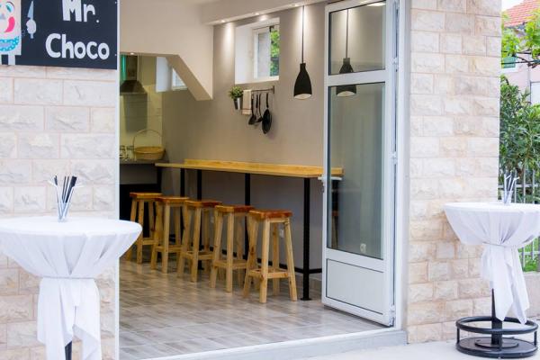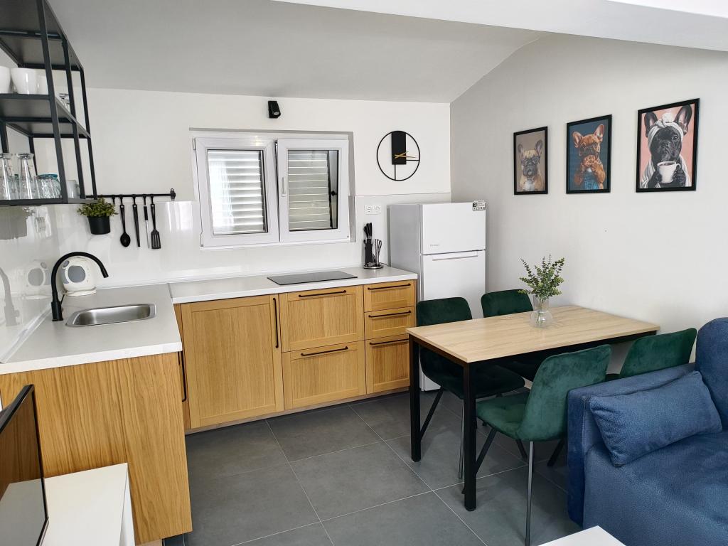 Dom położony jest 50 m od głównej plaży. Składa się z 2 apartamentów dwupokojowych i 3 apartamentów jednopokojowych, mieszczących 16 osób, położonych przy cichej ulicy. W pobliżu znajdują się restauracje, sklepy, piekarnia i pizzeria. Do dyspozycji Gości jest parking.