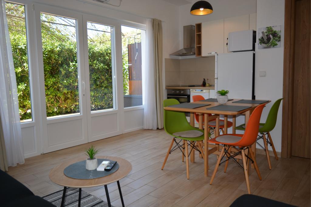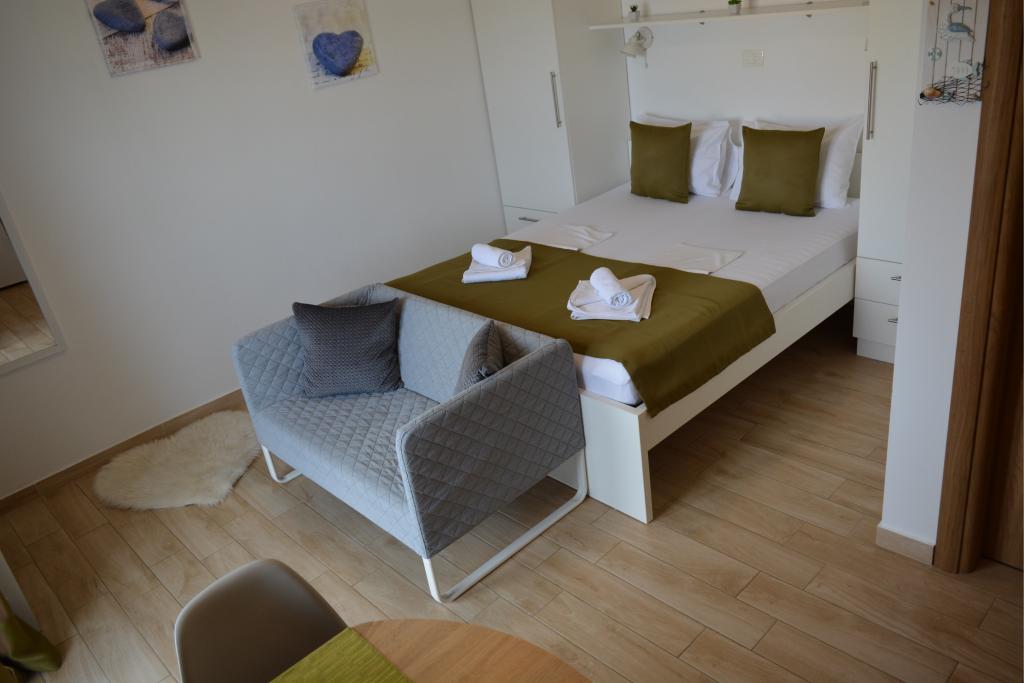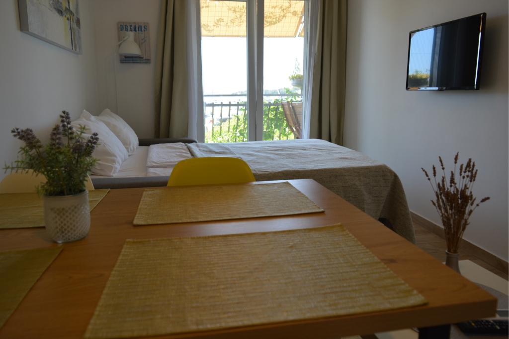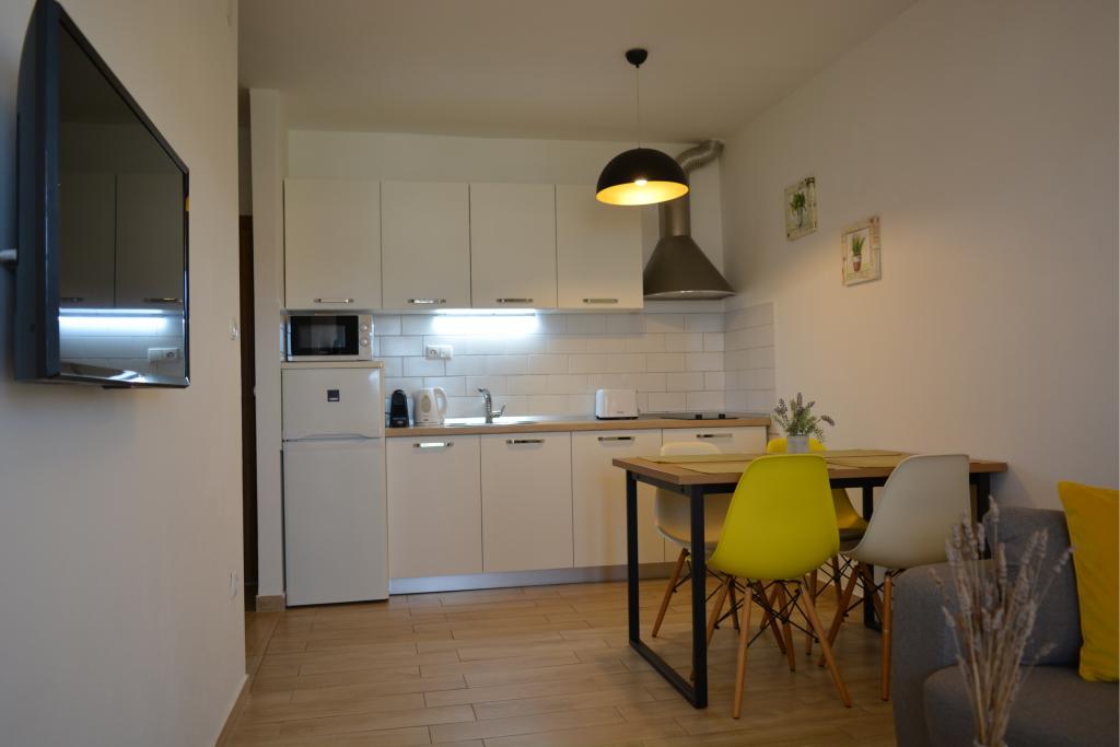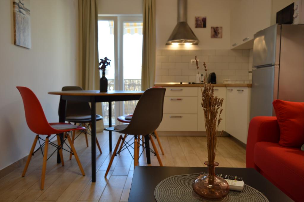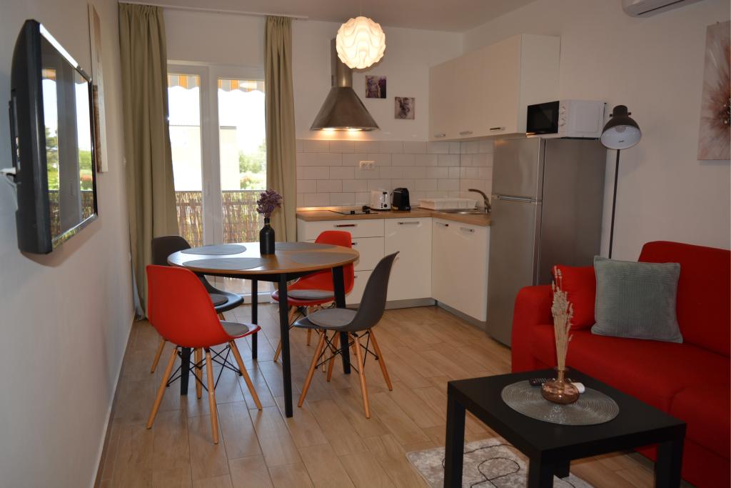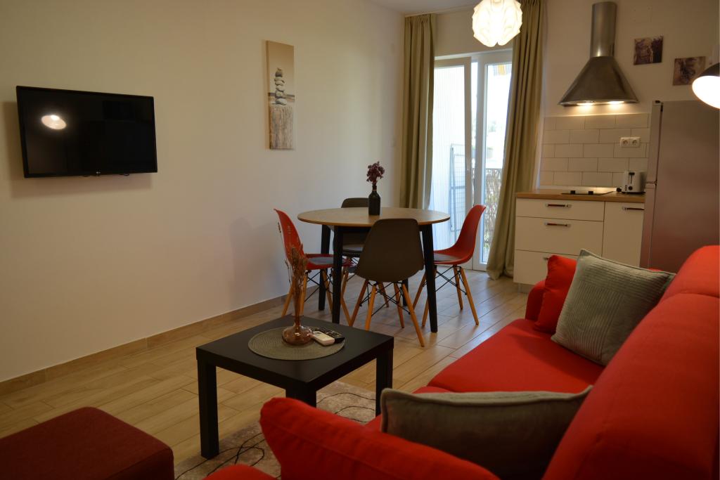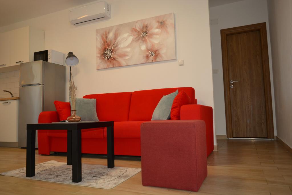 4 całkowicie odnowione apartamenty do wynajęcia w Tribunj, 5 km od Vodic i 12 km od Szybenika. Apartamenty zlokalizowane są w atrakcyjnej lokalizacji zaledwie 150 m od głównej plaży miejskiej. W bezpośrednim sąsiedztwie apartamentu znajdują się restauracje, kawiarnie, sklepy oraz apteka. 3 apartamenty (2+2) składają się z sypialni z dużym podwójnym łóżkiem, kuchni, salonu z rozkładaną sofą (jakościowa sofa z materacem), łazienki i balkonu z widokiem na morze. Apartament typu studio przeznaczony jest dla dwóch osób. Posiada kuchnię, podwójne łóżko, łazienkę i balkon z widokiem na morze. Wszystkie apartamenty są klimatyzowane, posiadają suszarkę do włosów, smart TV oraz bezpłatny bezprzewodowy dostęp do Internetu. Parking strzeżony przed apartamentem.