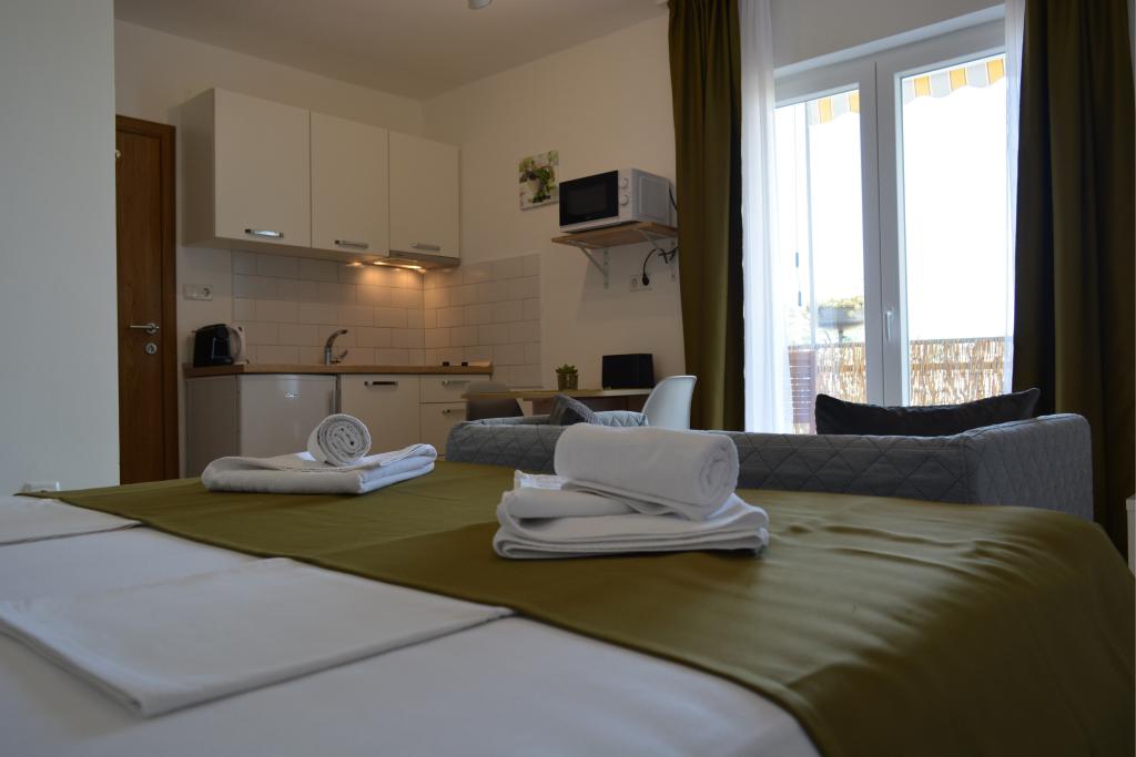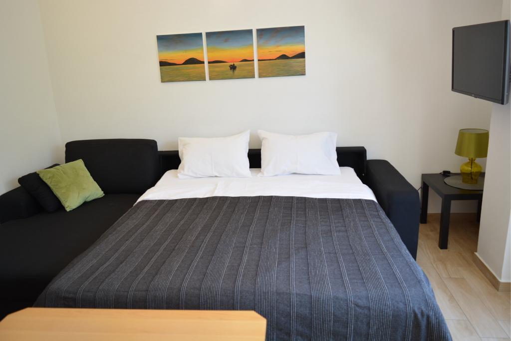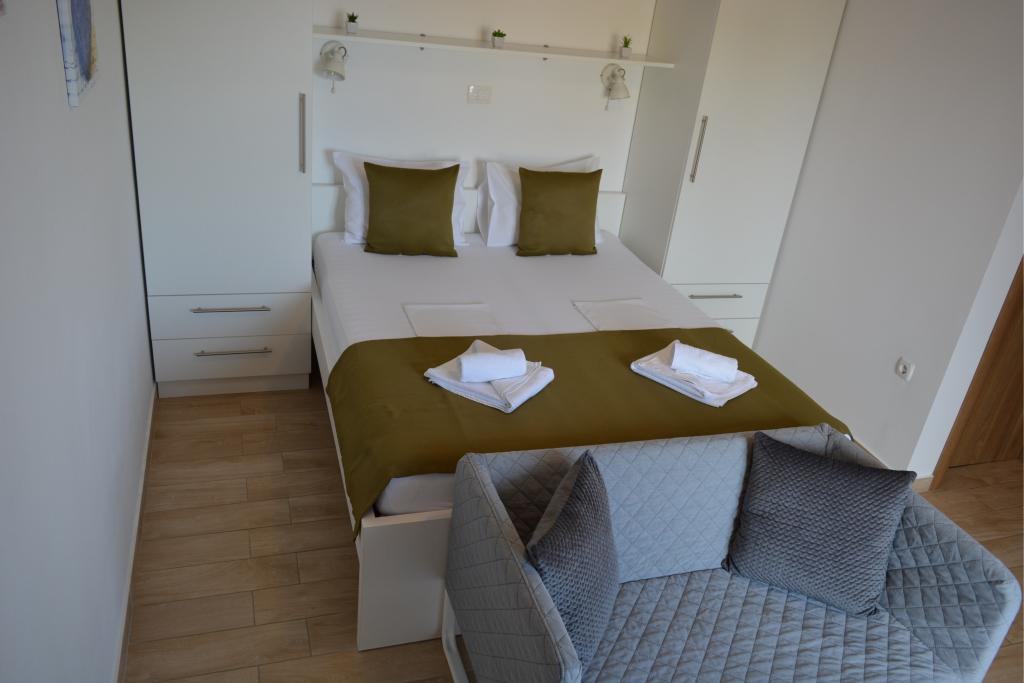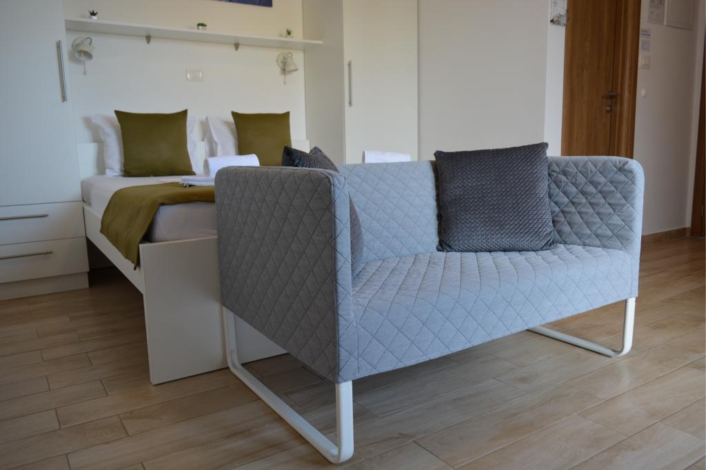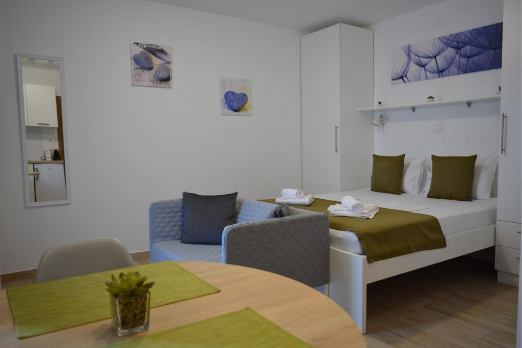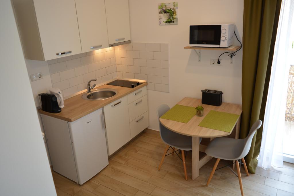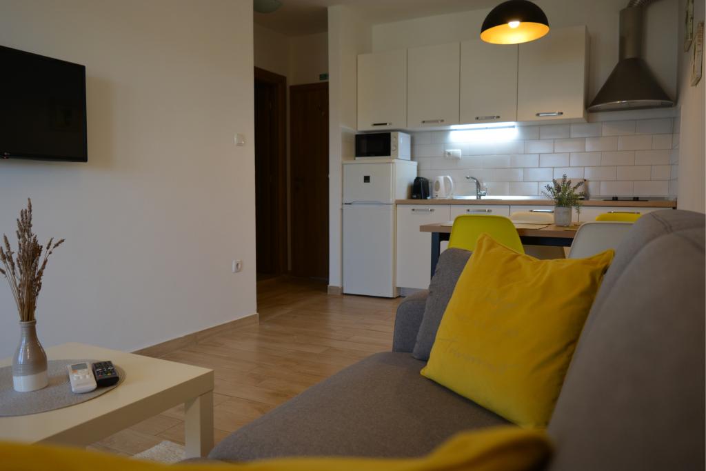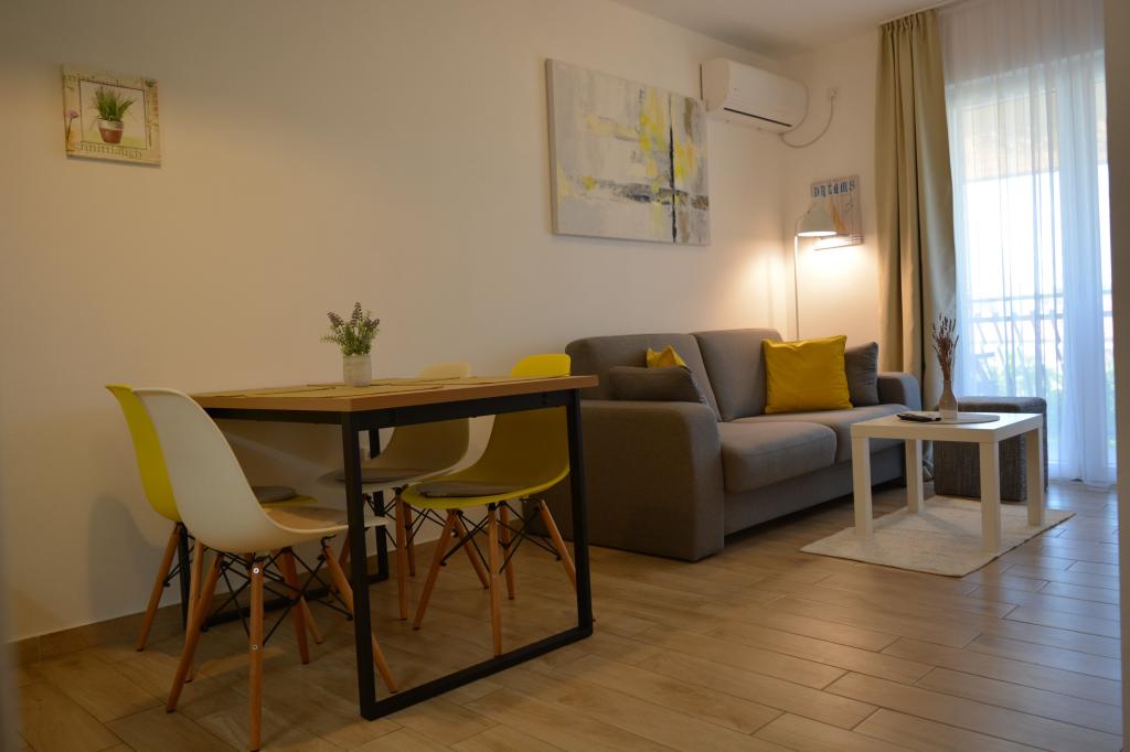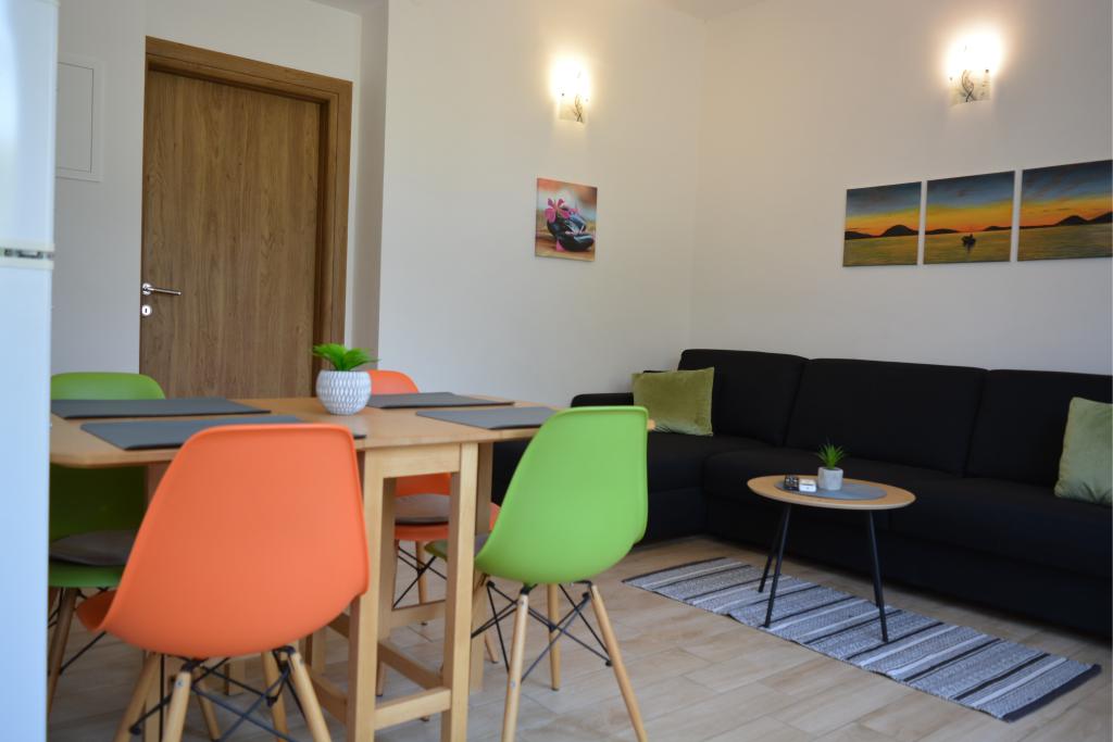 4 całkowicie odnowione apartamenty do wynajęcia w Tribunj, 5 km od Vodic i 12 km od Szybenika. Apartamenty zlokalizowane są w atrakcyjnej lokalizacji zaledwie 150 m od głównej plaży miejskiej. W bezpośrednim sąsiedztwie apartamentu znajdują się restauracje, kawiarnie, sklepy oraz apteka. 3 apartamenty (2+2) składają się z sypialni z dużym podwójnym łóżkiem, kuchni, salonu z rozkładaną sofą (jakościowa sofa z materacem), łazienki i balkonu z widokiem na morze. Apartament typu studio przeznaczony jest dla dwóch osób. Posiada kuchnię, podwójne łóżko, łazienkę i balkon z widokiem na morze. Wszystkie apartamenty są klimatyzowane, posiadają suszarkę do włosów, smart TV oraz bezpłatny bezprzewodowy dostęp do Internetu. Parking strzeżony przed apartamentem.