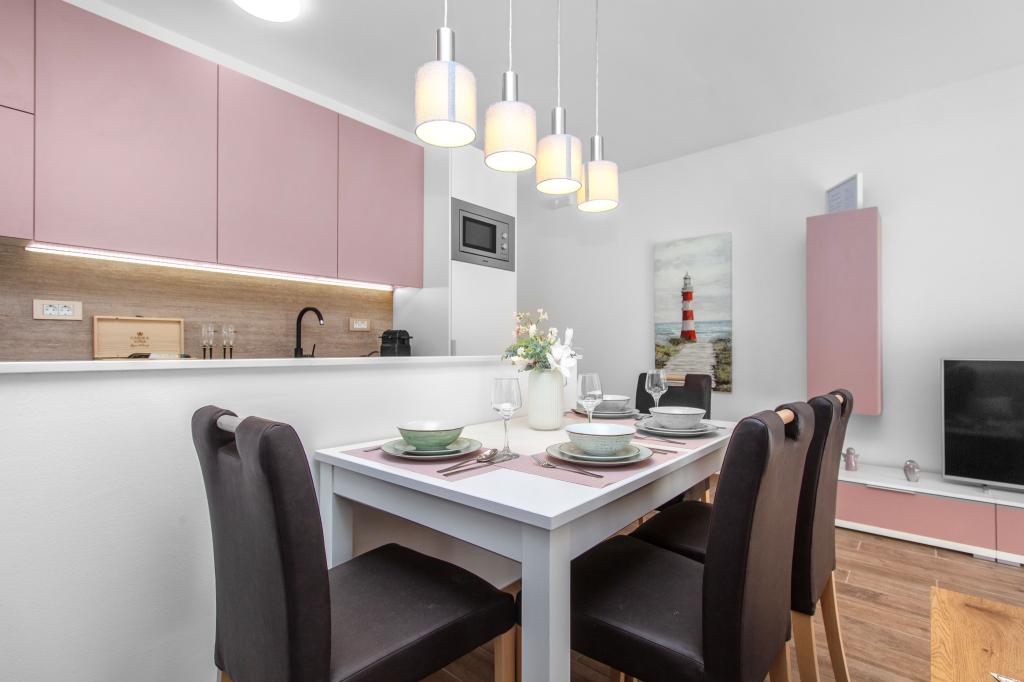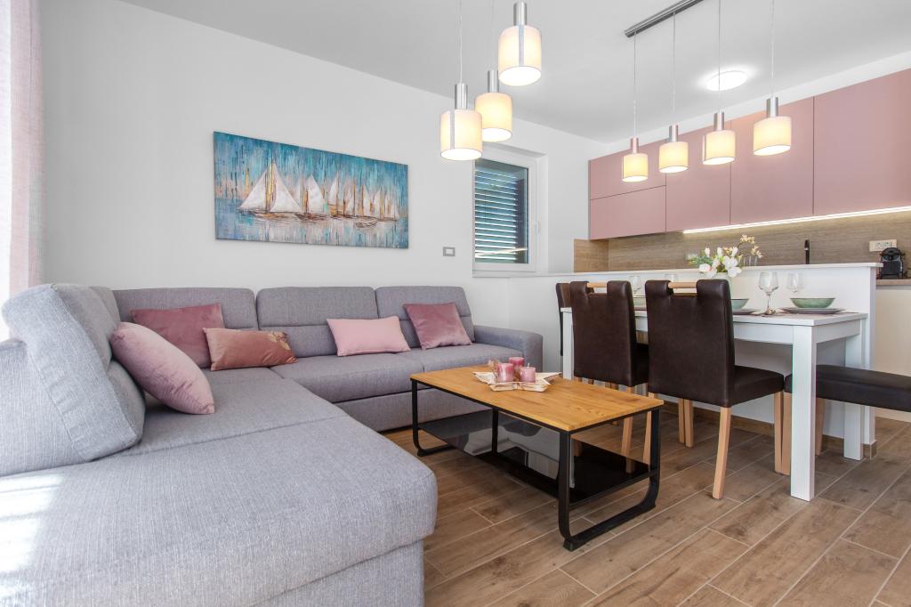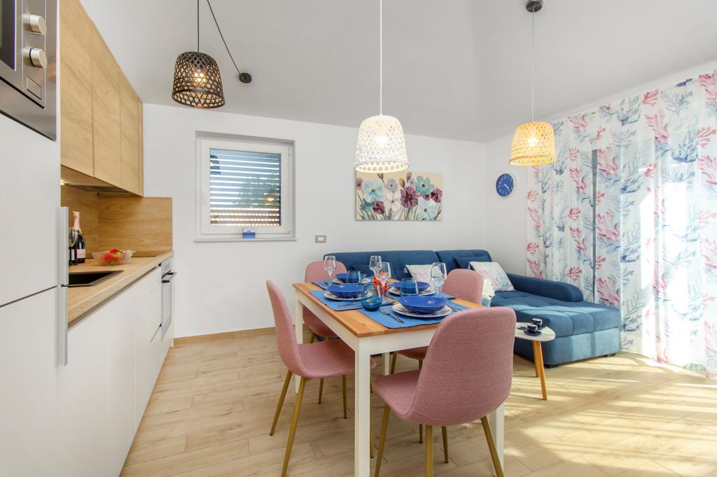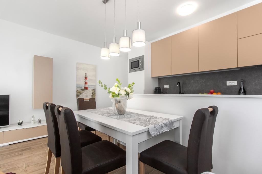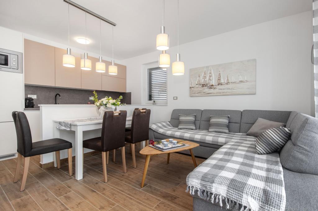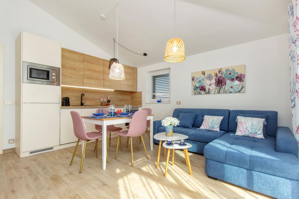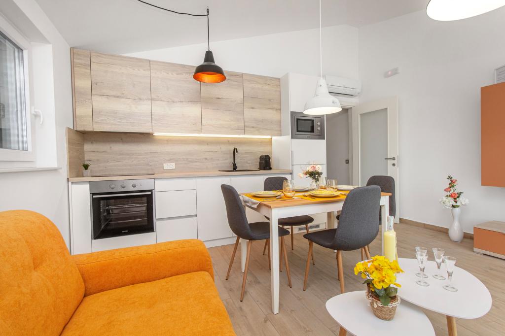 Obiekt Trzy Oliwki to nowy obiekt, który po raz pierwszy otworzy swoje podwoje dla gości już od lata 2024 roku. Na dziedzińcu budynku rosną trzy stare drzewa oliwne, drewno tak typowe dla chorwackiego wybrzeża i wysp, z którego owoców uzyskuje się najwyższej jakości oliwę, często nazywaną „płynnym złotem”. Nazwa Three Olives sugeruje środowisko ciszy, spokoju i obfitości. Apartamenty w budynku są wyjątkowe, nowoczesne i w pełni funkcjonalnie wyposażone, abyś czuł się komfortowo, jak we własnym domu! Obiekt jest doskonale położony; położony jest 150 m od morza i 200 m od centrum miasta. W bezpośrednim sąsiedztwie nie ma głównych dróg ani obiektów biznesowych, dzięki czemu goście mają pewność spokoju zarówno w dzień, jak i w nocy. Krótko mówiąc, wszystko jest gotowe na pełne wakacje.