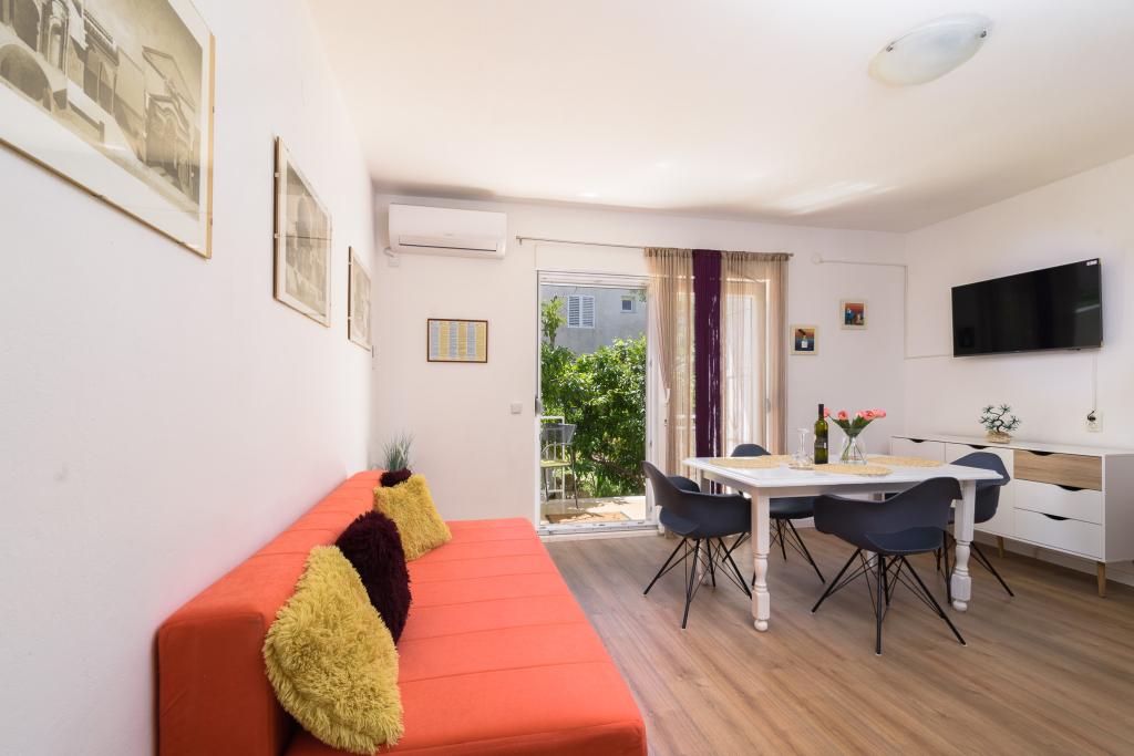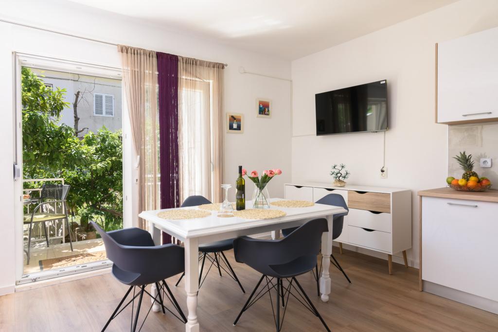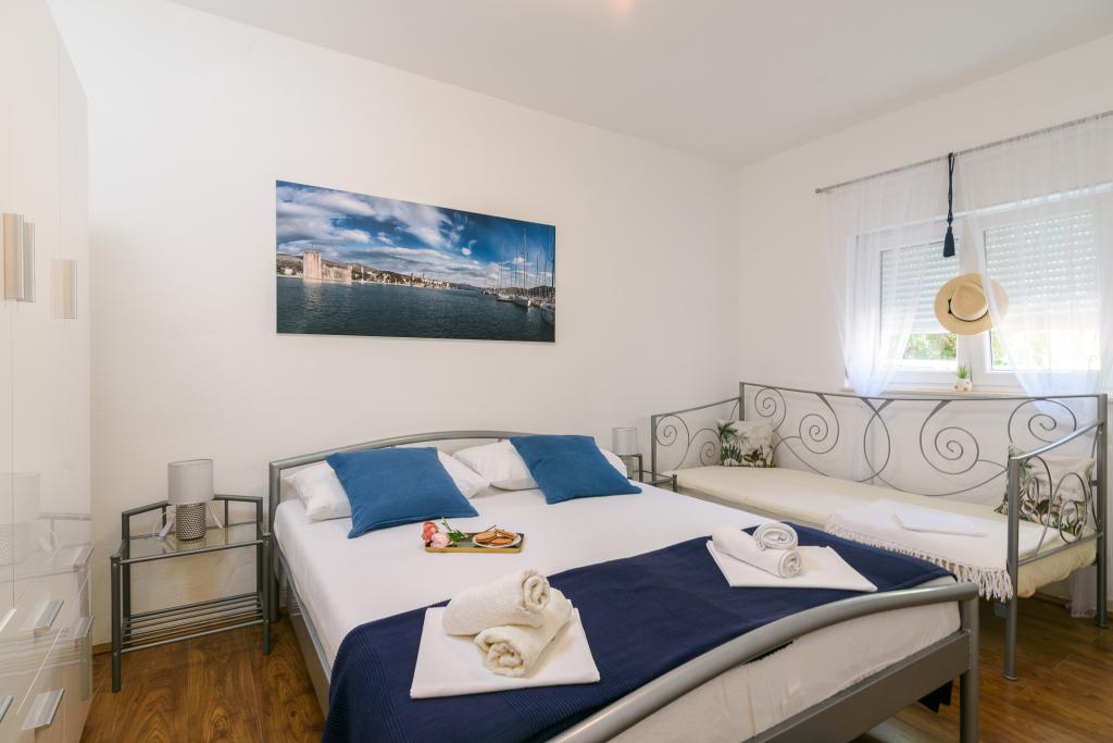 Znajdujemy się w spokojnej części Trogiru, z dala od centrum jakiegoś 400m, a od najbliższych sklepów, aptek, ryb i zielony rynek. Nasz obiekt składa się z dwóch jednostek, które są nowoczesne, klimatyzowane i wyposażone w bezpłatny parking dla samochodu, jak również bezprzewodowy dostęp do Internetu.