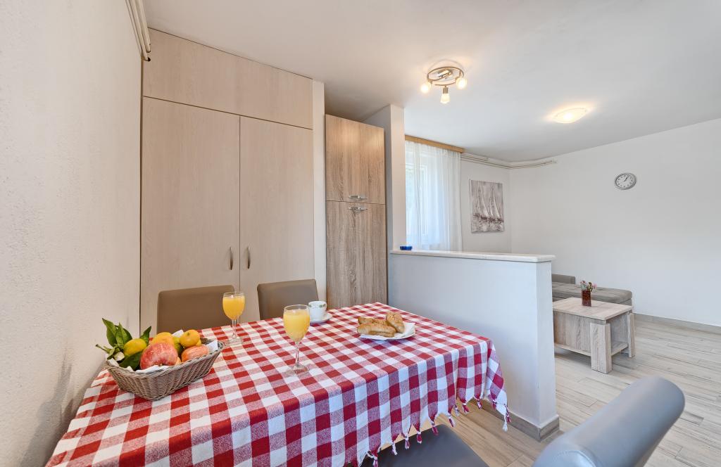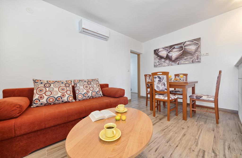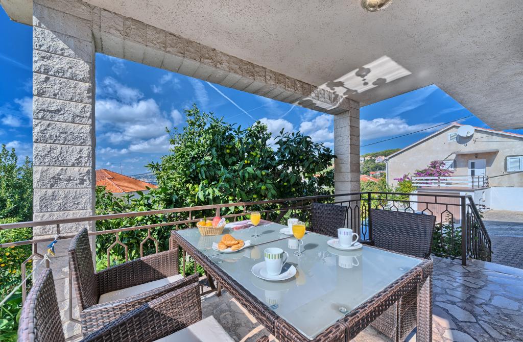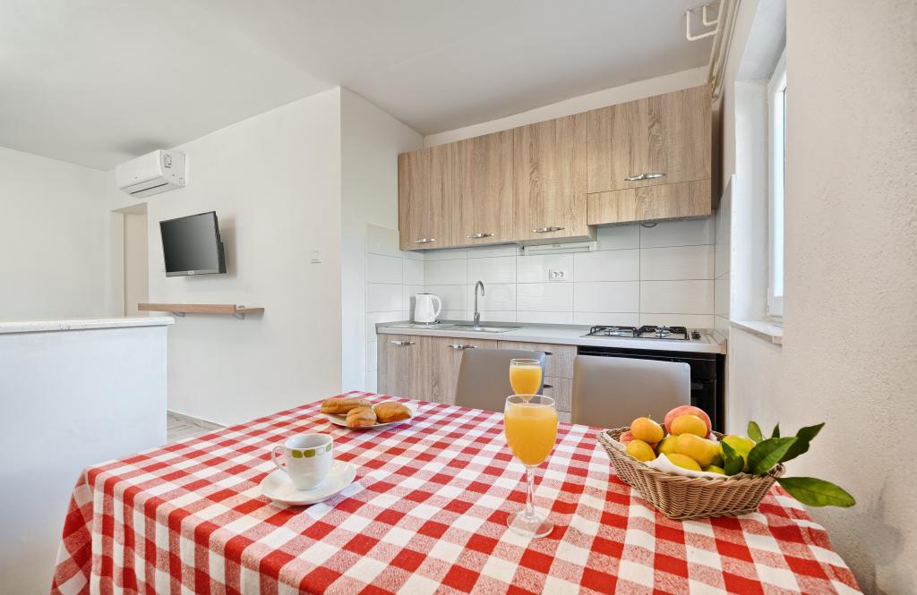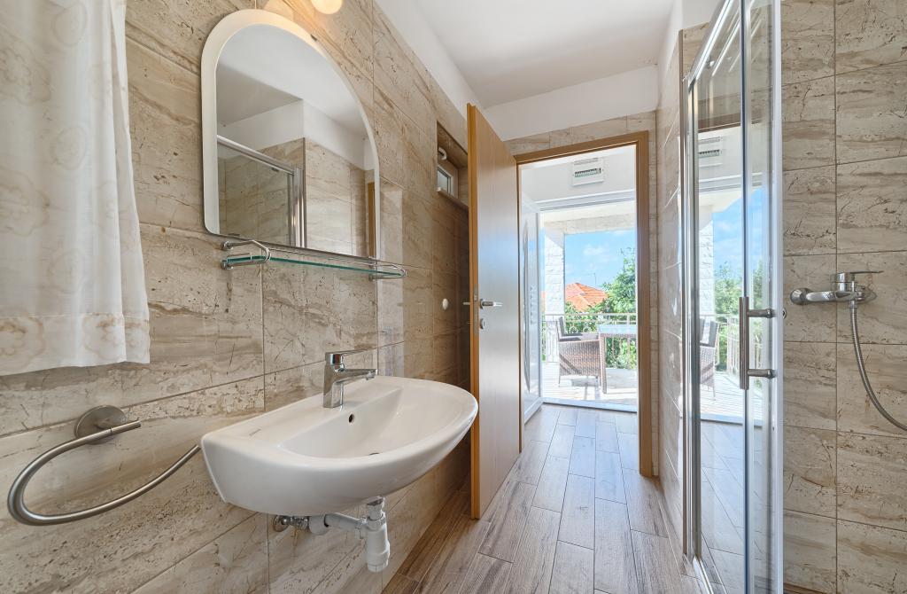 Apartamenty Bareta znajdują się na wyspie Ciovo, gmina Trogir. Znajdują się w doskonałej lokalizacji dla tych, którzy chcą cieszyć się słońcem i morzem, a także dla tych, którzy chcą poznać historyczne i naturalne piękno Środkowej Dalmacji. Stare Miasto UNESCO w Trogirze znajduje się zaledwie 1000 metrów od hotelu, a Split (Pałac Dioklecjana, promy na wyspy), Omiš, Cetina (rafting, kanioning, wspinaczka), wodospady Krka i Szybenik znajdują się w odległości 50 km. Lotnisko w Splicie znajduje się zaledwie 5 km od hotelu. Apartamenty znajdują się na parterze rodzinnego domu otoczonego ogrodem i zielenią. Każdy apartament ma własne wejście i możliwy jest duży taras ze stołem, parking, grill i prysznic na świeżym powietrzu. Apartamenty składają się z salonu połączonego z kuchnią, sypialni (łóżko 2 1, 2 2), ewentualnie dwóch dorosłych z dwójką dzieci, łazienki z toaletą. Apartamenty są w pełni wyposażone we wszystko, czego potrzeba do komfortowego pobytu / naczynia, pościel itp.) Tr