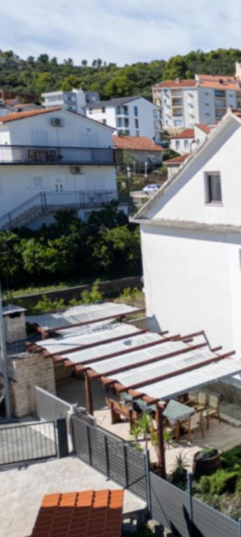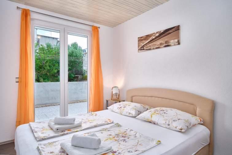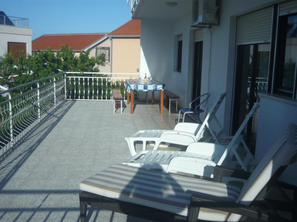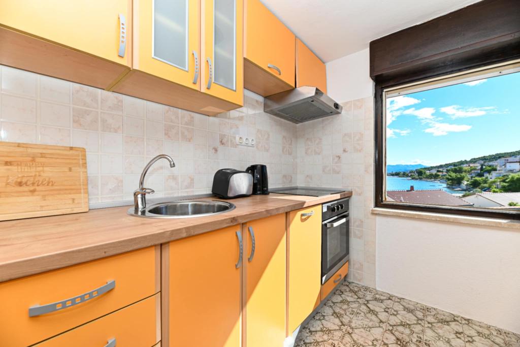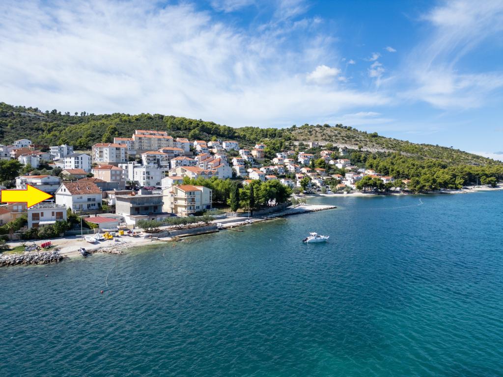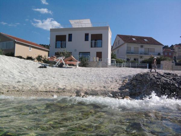Dom położony jest w Mastrince w pięknej zatoce na wyspie Čiovo. Dom znajduje się 2 km od Trogiru i 5 km od lotniska. Trogir to miasto znajdujące się pod ochroną UNESCO, ze swoim pięknym pięknem i oferujące wspaniałe poczucie sztuki w jego starym centrum. Oprócz tego masz różnorodną ofertę GASTRO i życie nocne, które gwarantuje dobrą zabawę. Bogata oferta życia nocnego, imprezy taneczne na otwartych tarasach letnich, muzyka na żywo dla wszystkich pokoleń, dyskoteki, imprezy, festiwale, koncerty, śpiew klap. W domu znajdują się 3 w pełni wyposażone i klimatyzowane apartamenty z telewizją satelitarną. Każdy z apartamentów posiada własny balkon z pięknym widokiem na morze i plażę, która znajduje się zaledwie 10 m od domu. Parking znajduje się tuż przed domem dla gości przyjeżdżających samochodem. Okolica jest spokojna i cicha, a zaledwie kilka minut od domu można się bawić i bawić. Dla gości przylatujących samolotem istnieje możliwość bezpłatnego zorganizowania transferu pomiędzy lotniskiem a apartamentem i odwrotnie.