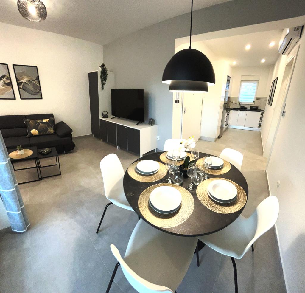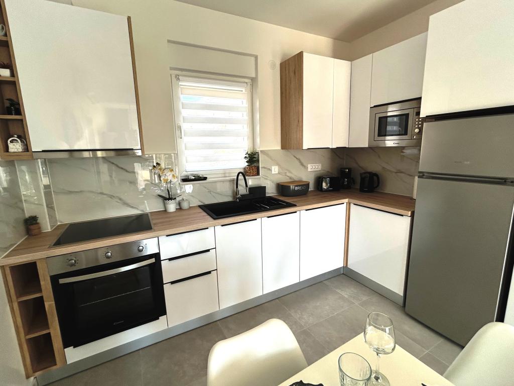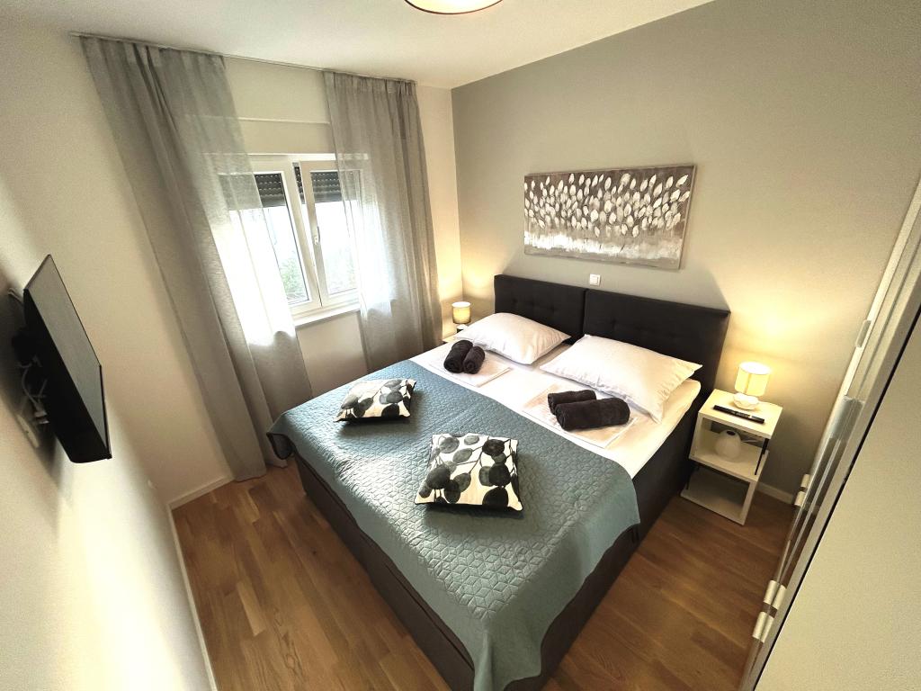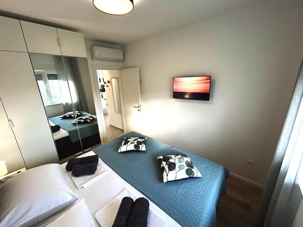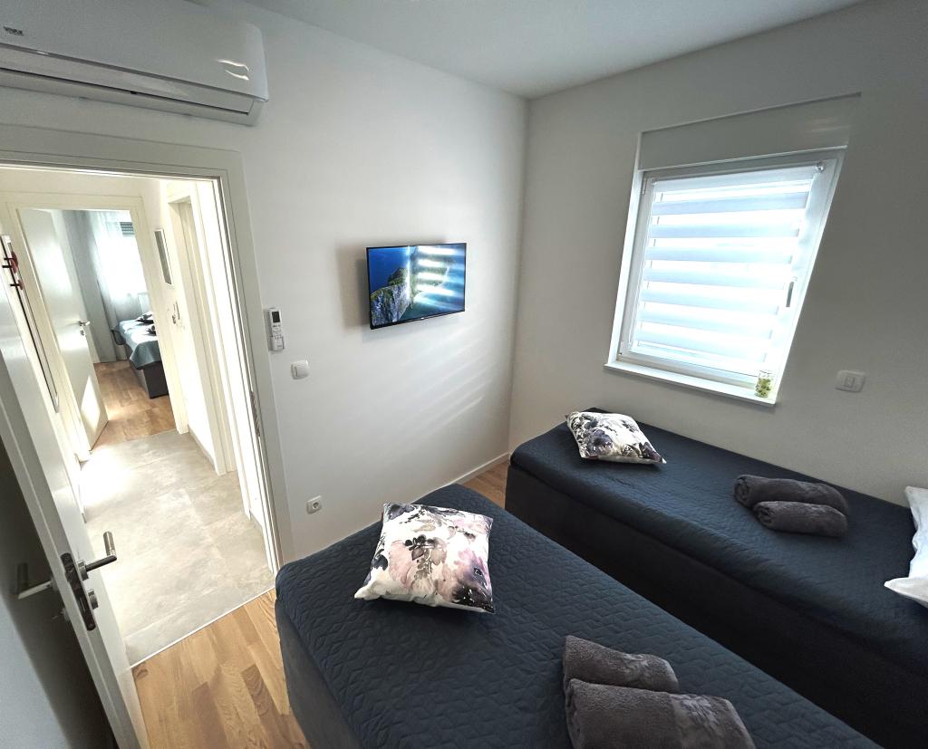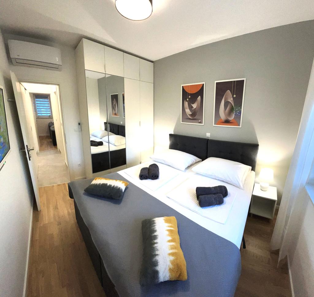 Apartamenty Town Trogir znajdują się na stałym lądzie Trogiru w doskonałej lokalizacji, zaledwie 400 m od starego centrum miasta i 1000 m od nowej plaży miejskiej. Do plaży można dotrzeć promenadą wzdłuż morza. Wszystkie główne udogodnienia znajdują się w odległości krótkiego spaceru, od 5 do 10 minut. Apartamenty Town Trogir są nowe i znajdują się w małym budynku mieszkalnym z 6 apartamentami. Apartamenty mają powierzchnię około 60 m2. Apartamenty znajdują się na parterze, 1. piętrze i 2. piętrze. Apartamenty są nowocześnie urządzone i w pełni wyposażone. Apartamenty mają 2 sypialnie, salon z jadalnią, w pełni umeblowaną kuchnię, łazienkę i duże tarasy z meblami ogrodowymi na parterze. Salon i sypialnie mają oddzielne jednostki chłodzące. Bezpłatny parking znajduje się przed budynkiem. Pościel i ręczniki są wliczone w cenę. WiFi jest bezpłatne. Podatek turystyczny jest wliczony w cenę.