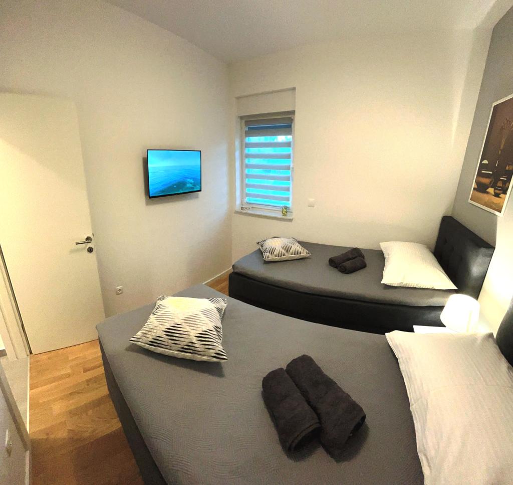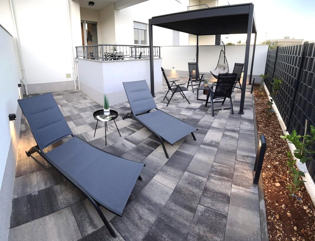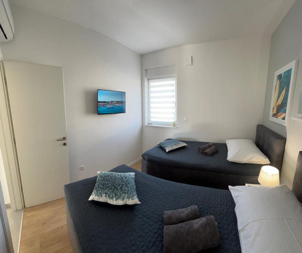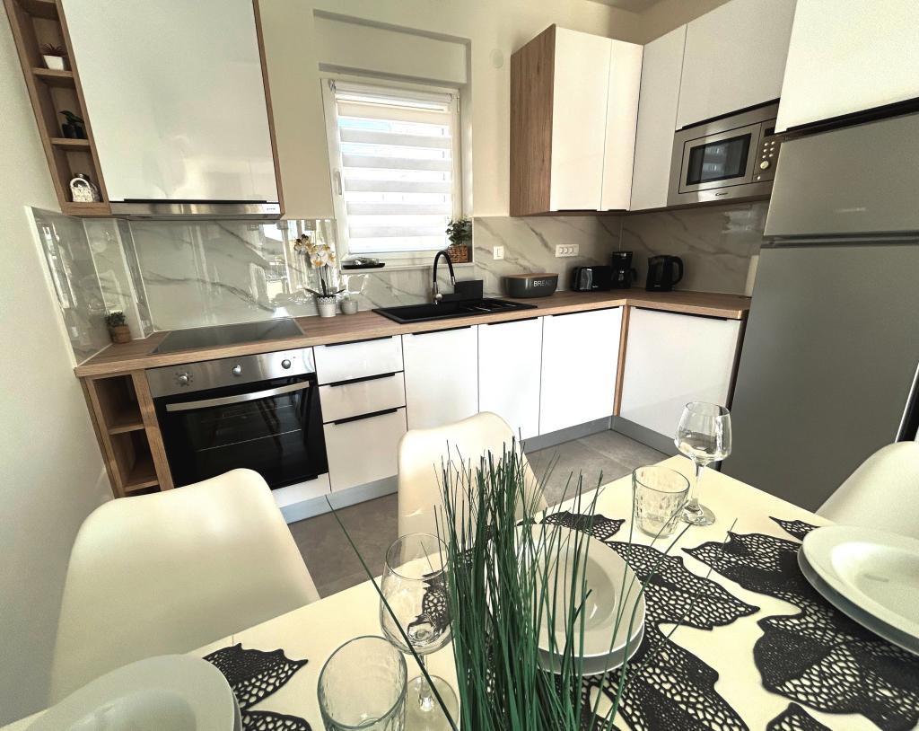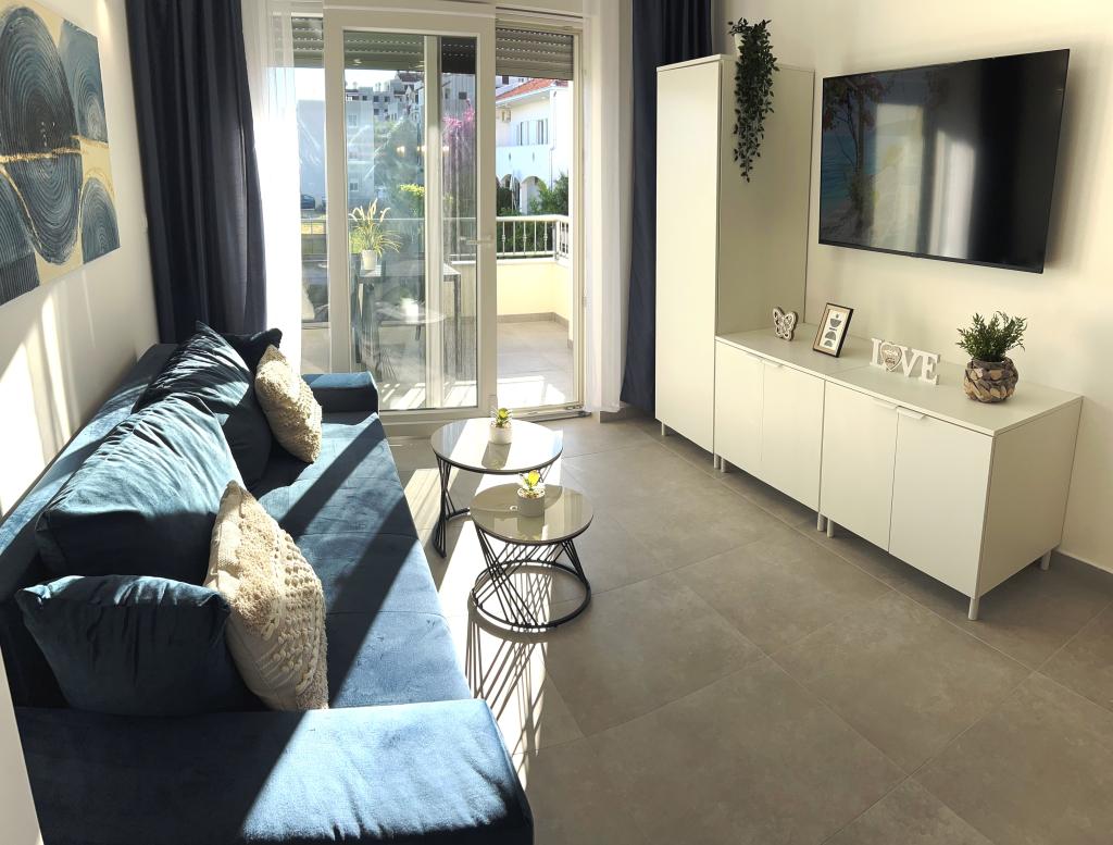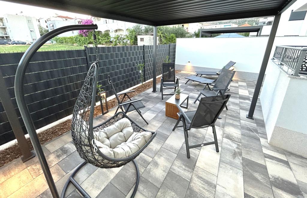 Apartamenty Town Trogir znajdują się na stałym lądzie Trogiru w doskonałej lokalizacji, zaledwie 400 m od starego centrum miasta i 1000 m od nowej plaży miejskiej. Do plaży można dotrzeć promenadą wzdłuż morza. Wszystkie główne udogodnienia znajdują się w odległości krótkiego spaceru, od 5 do 10 minut. Apartamenty Town Trogir są nowe i znajdują się w małym budynku mieszkalnym z 6 apartamentami. Apartamenty mają powierzchnię około 60 m2. Apartamenty znajdują się na parterze, 1. piętrze i 2. piętrze. Apartamenty są nowocześnie urządzone i w pełni wyposażone. Apartamenty mają 2 sypialnie, salon z jadalnią, w pełni umeblowaną kuchnię, łazienkę i duże tarasy z meblami ogrodowymi na parterze. Salon i sypialnie mają oddzielne jednostki chłodzące. Bezpłatny parking znajduje się przed budynkiem. Pościel i ręczniki są wliczone w cenę. WiFi jest bezpłatne. Podatek turystyczny jest wliczony w cenę.