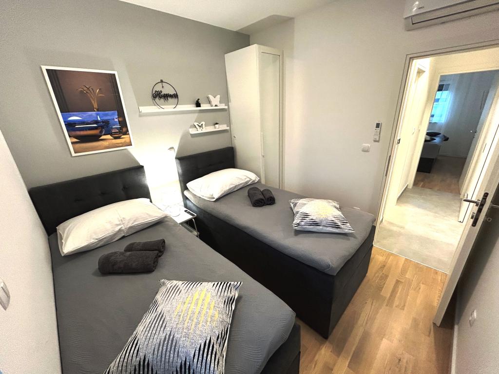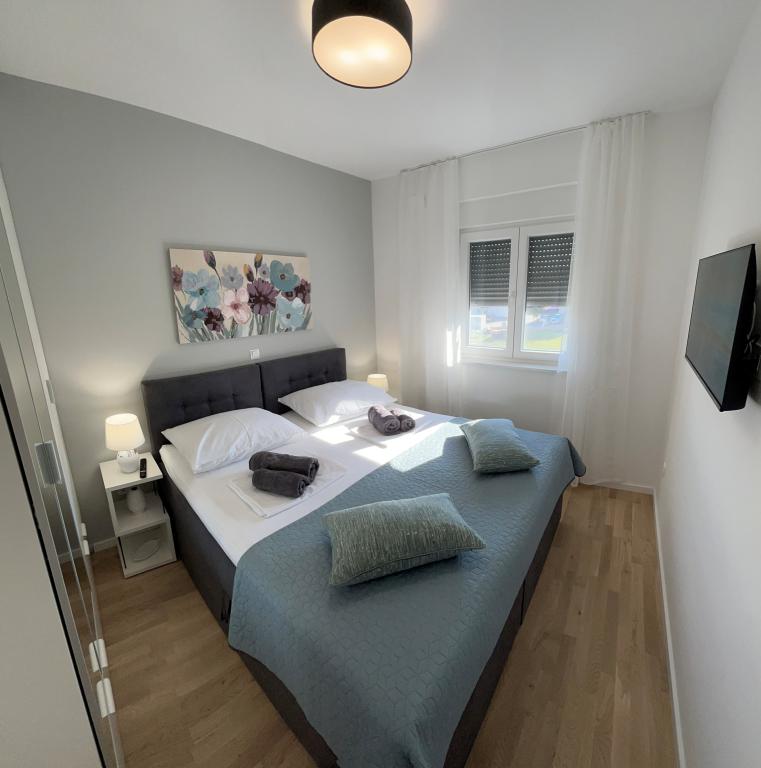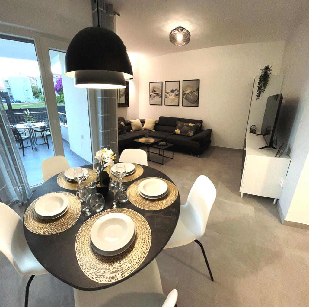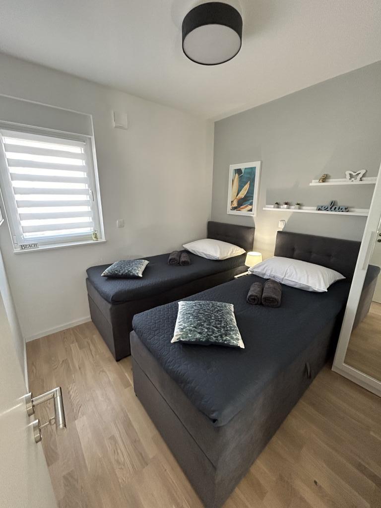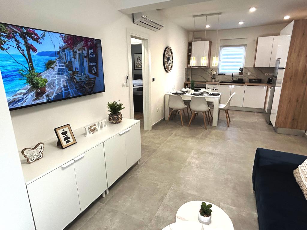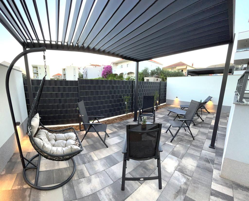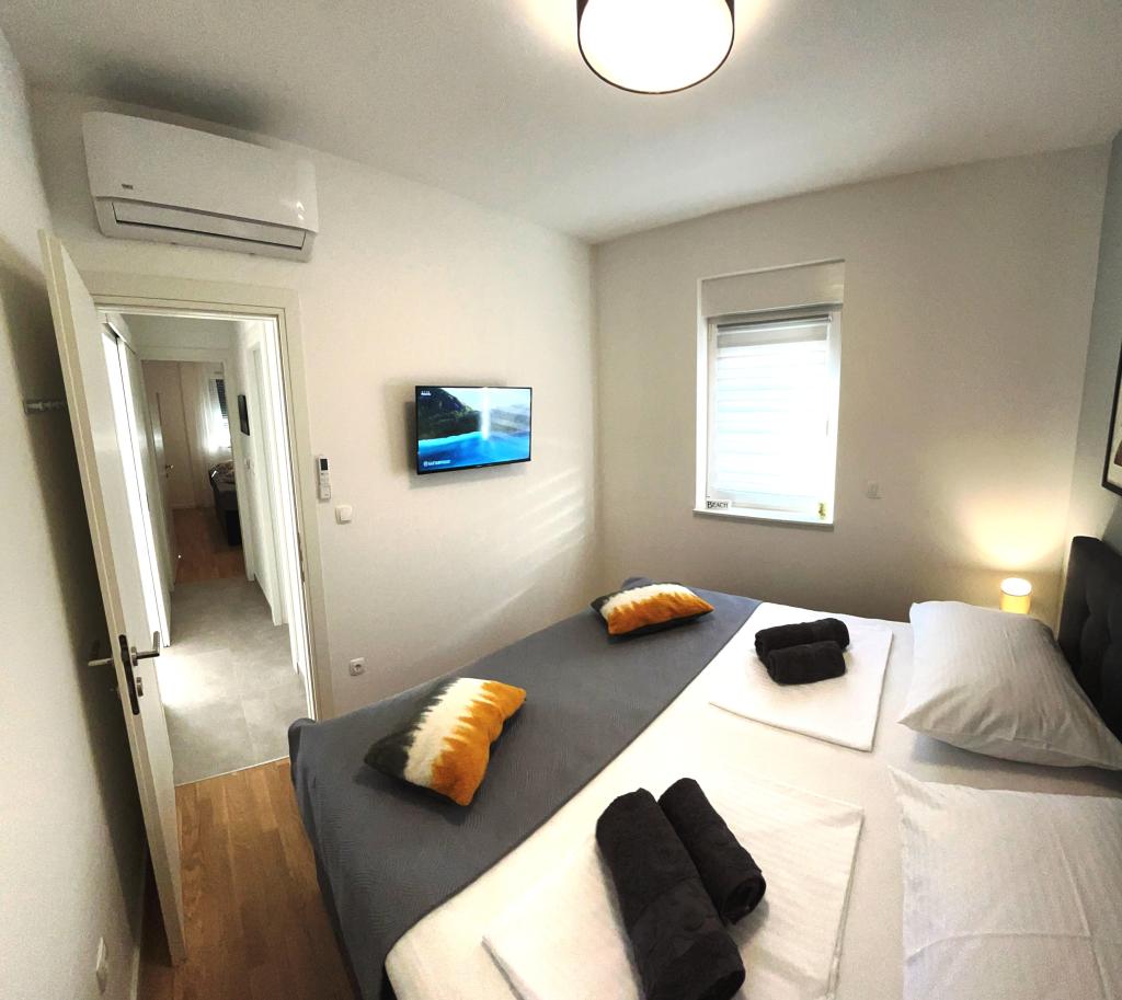 Apartamenty Town Trogir znajdują się na stałym lądzie Trogiru w doskonałej lokalizacji, zaledwie 400 m od starego centrum miasta i 1000 m od nowej plaży miejskiej. Do plaży można dotrzeć promenadą wzdłuż morza. Wszystkie główne udogodnienia znajdują się w odległości krótkiego spaceru, od 5 do 10 minut. Apartamenty Town Trogir są nowe i znajdują się w małym budynku mieszkalnym z 6 apartamentami. Apartamenty mają powierzchnię około 60 m2. Apartamenty znajdują się na parterze, 1. piętrze i 2. piętrze. Apartamenty są nowocześnie urządzone i w pełni wyposażone. Apartamenty mają 2 sypialnie, salon z jadalnią, w pełni umeblowaną kuchnię, łazienkę i duże tarasy z meblami ogrodowymi na parterze. Salon i sypialnie mają oddzielne jednostki chłodzące. Bezpłatny parking znajduje się przed budynkiem. Pościel i ręczniki są wliczone w cenę. WiFi jest bezpłatne. Podatek turystyczny jest wliczony w cenę.