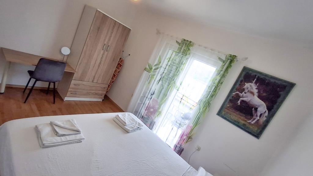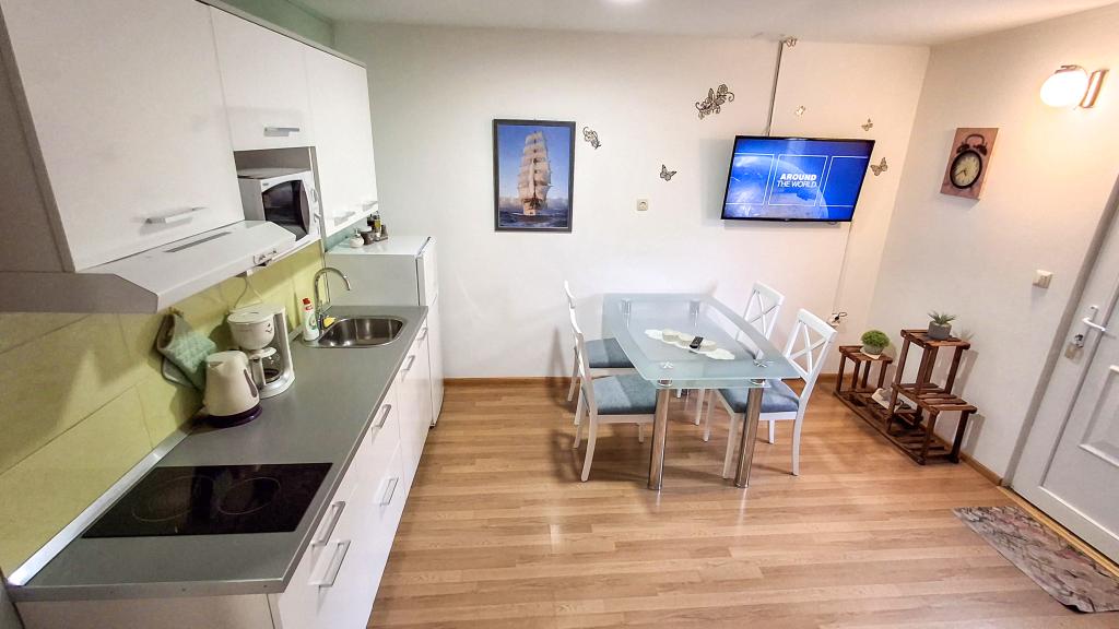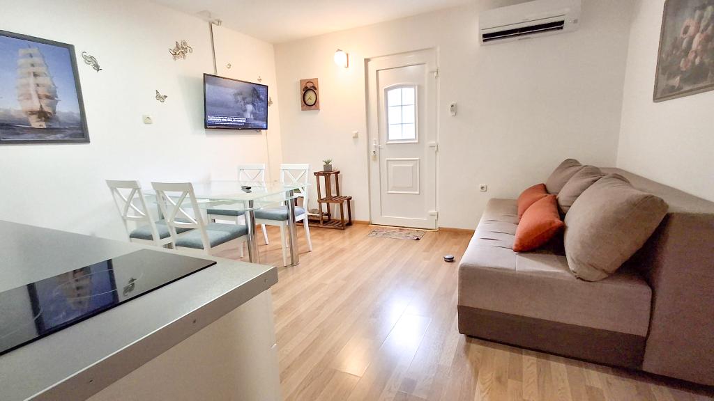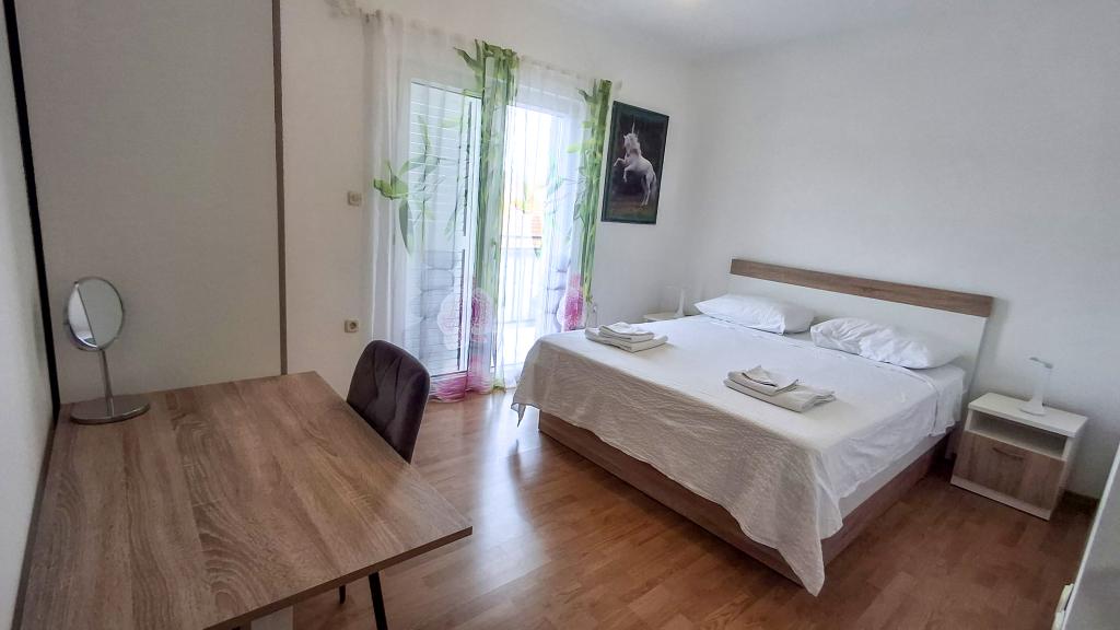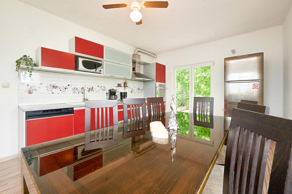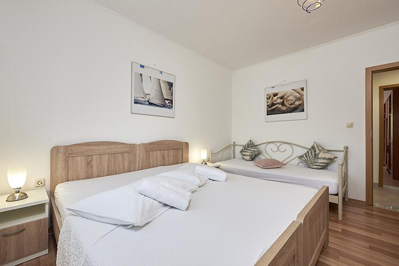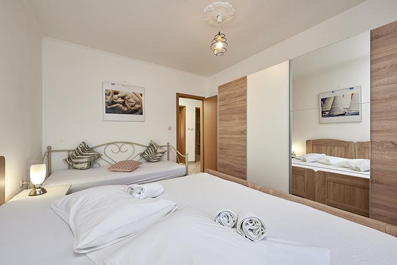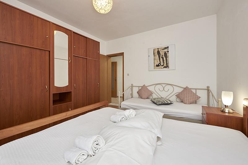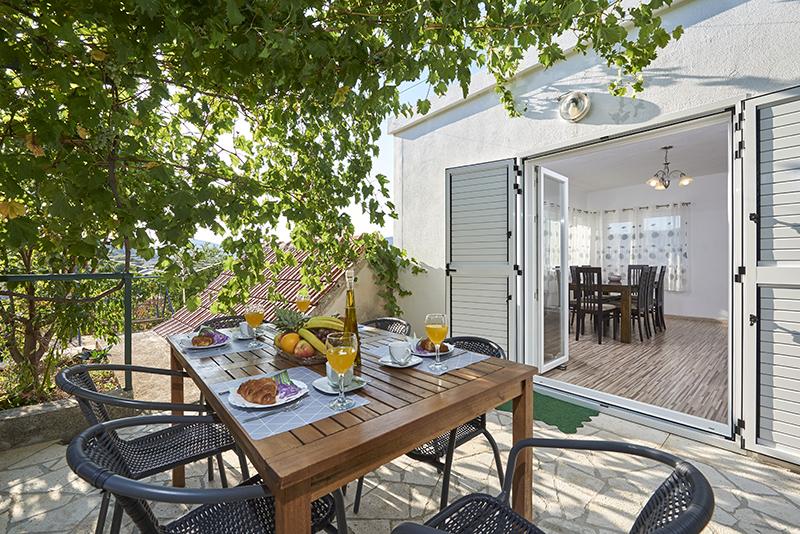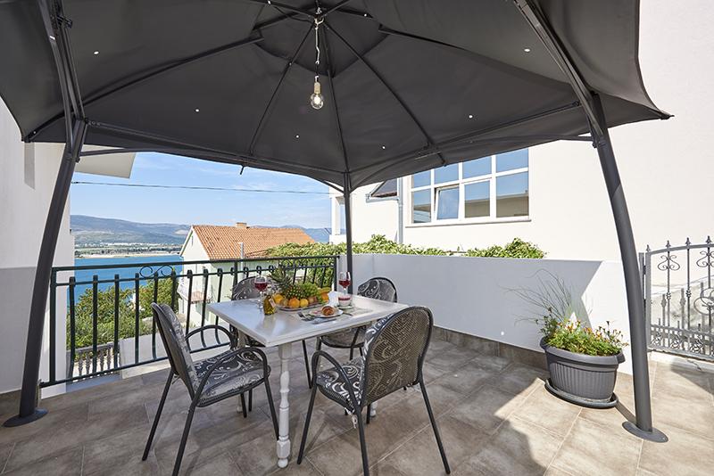 Apartamenty Ugrina znajdują się w pięknym śródziemnomorskim miasteczku Mastrinka na wyspie Čiovo. W domu znajdują się dwa mieszkania do wynajęcia, które znajdują się na tym samym piętrze. Jedno mieszkanie jest jednopokojowe, drugie dwupokojowe. Łącznie może nocować 12 osób. Przed domem miejsce na trzy samochody. Apartamenty są w pełni wyposażone. Apartament oferuje bezpośredni widok na morze. Każdy apartament posiada odkryty taras ze sprzętem do grillowania. Dom jest dobrze skomunikowany z lądem. Wyspa Čiovo jest połączona z lądem dwoma mostami. Jest połączony starym mostem z miastem Trogir, które znajduje się na Liście Światowego Dziedzictwa UNESCO. Jest połączona z lądem nowym mostem i stanowi najbliższą trasę do lotniska w Splicie. Miasto Split oddalone jest od obiektu o 25 kilometrów, a Pałac Dioklecjana w Splicie wpisany jest na Listę Światowego Dziedzictwa UNESCO. Sąsiadujące miasta to Žedno, Arbanija i Okrug Gornji.