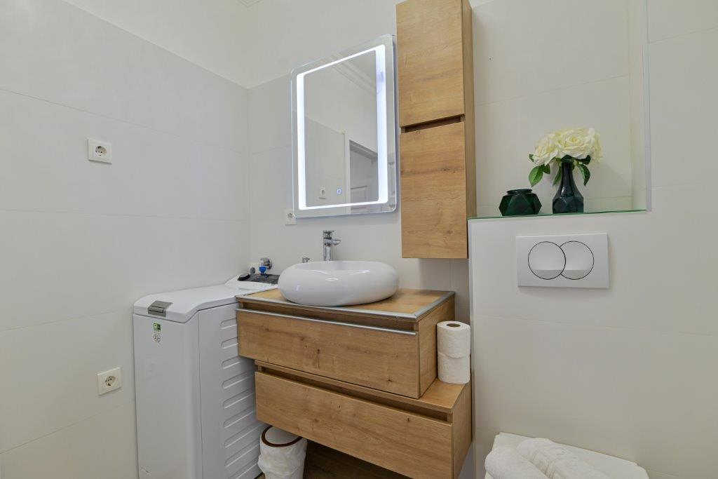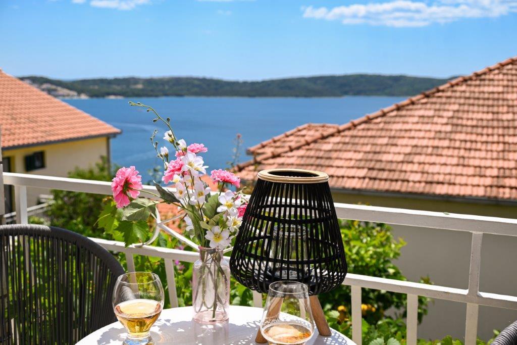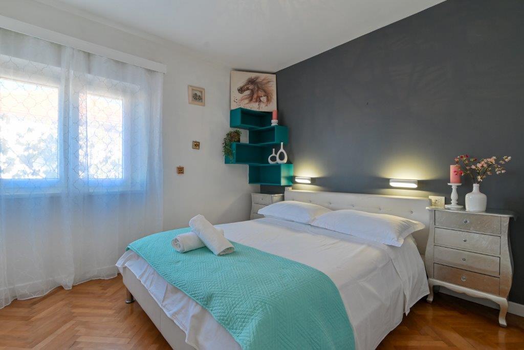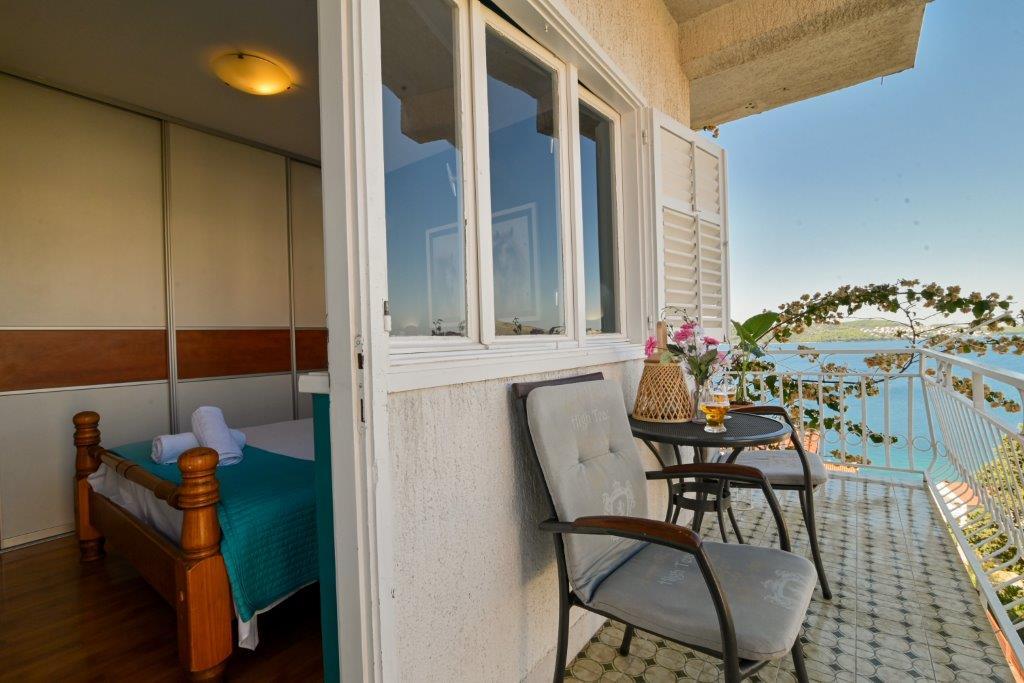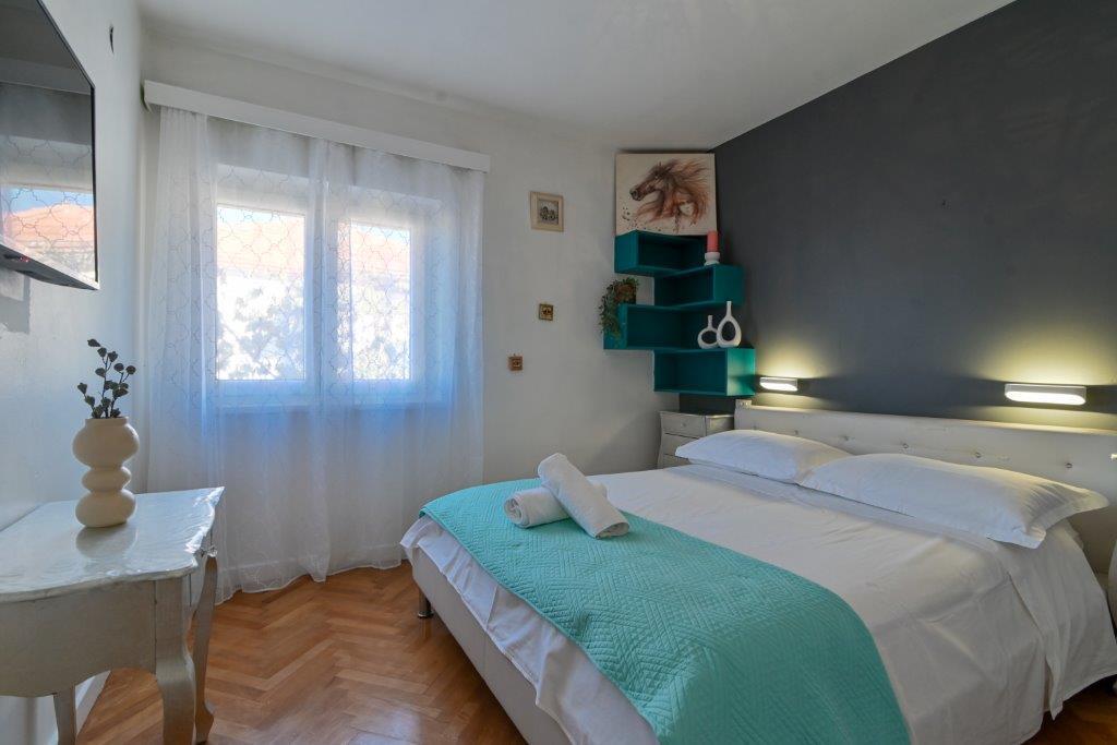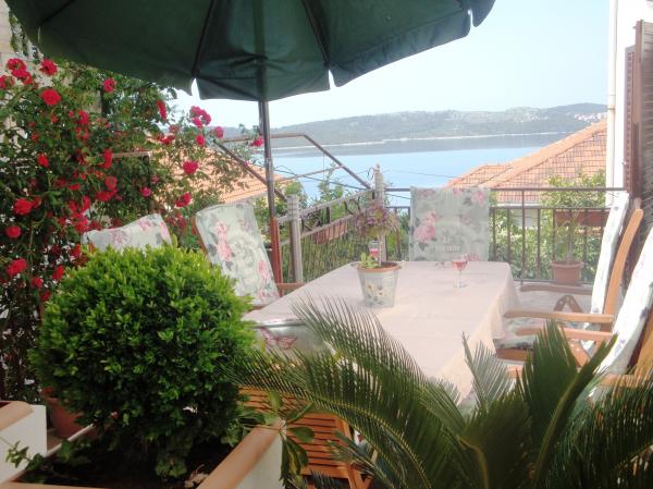 Jest to dom z tekskluzivna mieszkań. Znajduje się w atrakcyjnej części miasta. W południowej części wyspy Ciovo (połączone mostem na brzeg i pięknego miasta Trogir (UNESCO)). Dom położony jest w dzielnicy Mirnyi, z dala od morza (plaża z sosny), niektóre 200m z atrakcyjnej plaży miejskiej w Okrug Gornji około 700m. Odległość od restauracji i sklepów zostało zakończone 150m, szpital, poczta, a wszystkie obiekty są położone w centrum miasta, które znajduje się około 15 minut. chodzenia i około 5 km od lotniska Split (oferowane transport z lotniska po wcześniejszym uzgodnieniu z właścicielami). Dom ma dwa mieszkania. Każdy z nich jest w pełni wyposażone i mają wspaniały widok na morze. Jednym z nich jest podzielone na 4 gwiazdki. Znajduje się na parterze posiada taras i dwa balkony. 2 sypialnie, pokój dzienny z rozkładaną sofą, jadalnią i kuchnią i 2 łazienkami. Wyposażona w pełni (klimatyzacja, Wi-Fi, telewizja satelitarna, pralka, wszystkie urządzenia kuchenne, parking ... a. Drugi znajduje się w kategorii 3 gwiazdki. On jest pierwszym