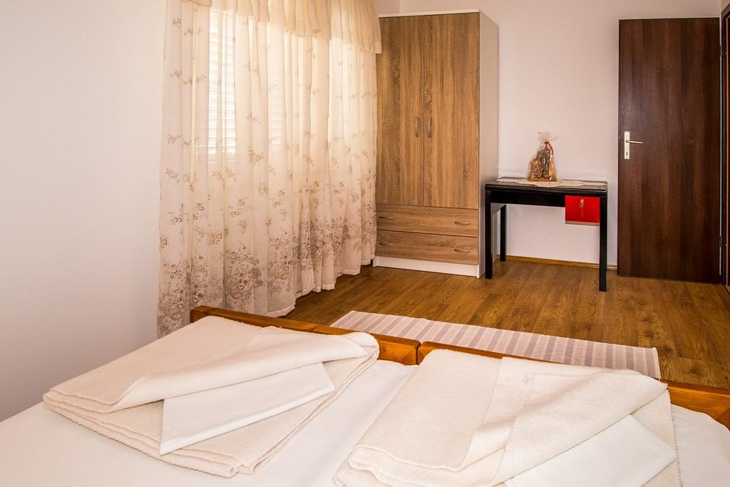 To był jeden z naszych najlepszych urlopów w Chorwacji. Zarówno apartament jak i gospodarcze zasługują na najwyższe oceny. Wszędzie czysto, basen zadbany. Gospodarze przesympatyczni, otwarci i niesamowicie gościnni.Trzykrotnie zostaliśmy ugoszczeni przez gospodarzy przepysznym jedzeniem oraz swojskim winem. W trakcie pobytu córka obchodziła urodziny, już z rana Ivo przyszedł z życzeniami i pysznym, swojskim miodzikiem. Zawsze trafiamy na fajnych gospodarzy ale chyba nigdy dotąd nie spotkaliśmy się z aż taką gościnnością. Można z nimi bez większego problemu porozumieć się w języku polskim. Zawsze służą dobrą radą. Na pewno wrócimy. Co do miasteczka w moim odczuciu jest ono w sam raz, jest gdzie zjeść, jest gdzie iść na spacer, jest gdzie zrobić zakupy, są plaże żwirkowe, betonowe, węższe, szersze, z knajpką (piwo, lody. kawa) lub bez. Jest wszystko oprócz tłumów co dla mnie jest zaletą.