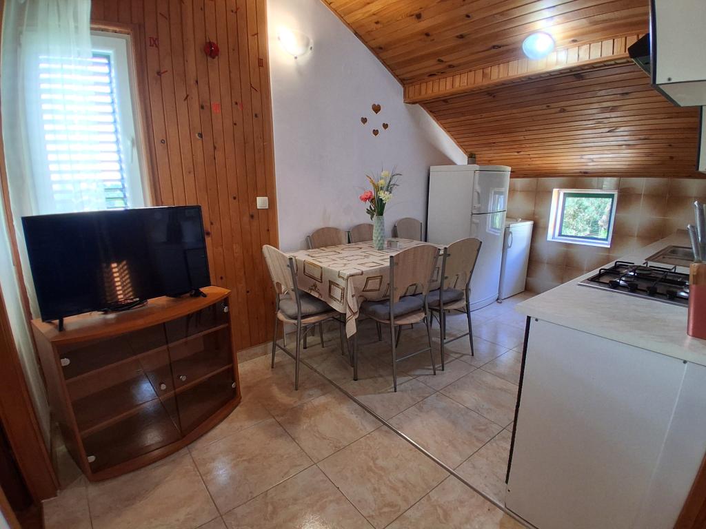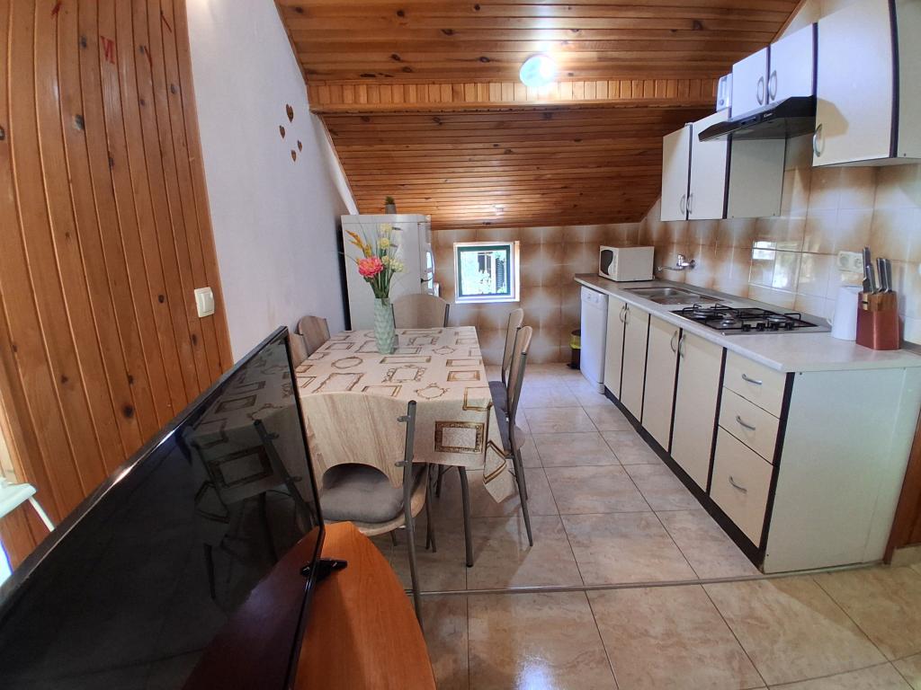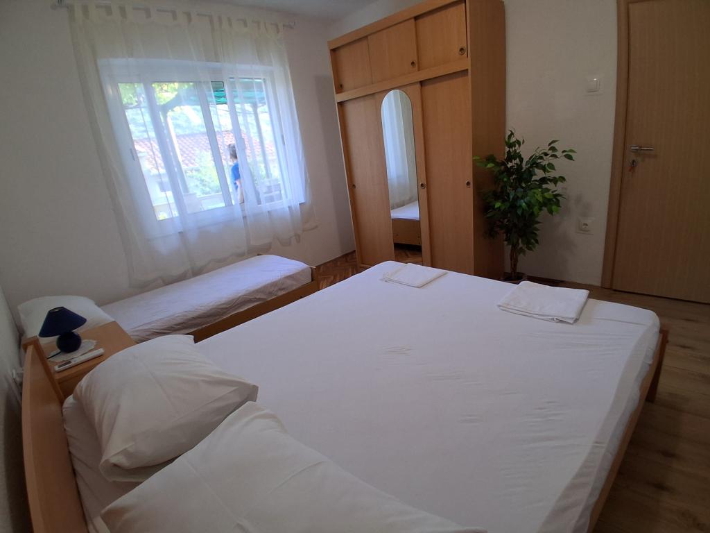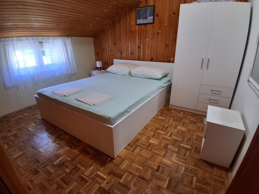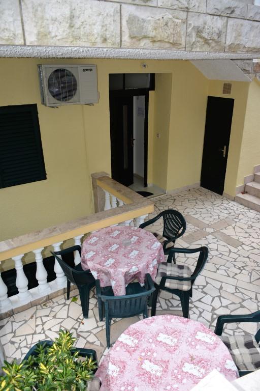 Apartament A1. - Znajduje się na parterze. Składa się z 3 pokoi z łazienkami, pojemności 6 oraz 2 łóżkami. W pełni wyposażona kuchnia. Taras z TV, grill. Apartament może być wynajmowane jako pokoje z użytkowania kuchni. Apartament A2. - Znajduje się na pierwszym piętrze. Składa się z sypialni z trzema łóżkami, łazienka, pokój dzienny, kuchnia, TV. Sofa z 140x200 cm łóżko. , Balkon, taras. Klimatyzacja jest dodatkowa opłata w wysokości 5 € za dzień. Grill jest powszechne na ziemi. Apartament A3. - Znajduje się na pierwszym piętrze. Składa się z sypialni z trzema łóżkami, łazienka, kuchnia, pokój dzienny z telewizorem i rozkładaną sofą z 140x200 cm, balkon, taras. Klimatyzacja jest dodatkowa opłata w wysokości 5 € za dzień. Grill jest powszechne na ziemi. Apartament A4. - Znajduje się na drugim piętrze. Składa się z trzech sypialni, pojemności 6 plus drugie dwie łazienki znajdujące się w korytarzu, kuchni, TV, balkon, taras. Parking. Położony w odległości 50 metrów od domu