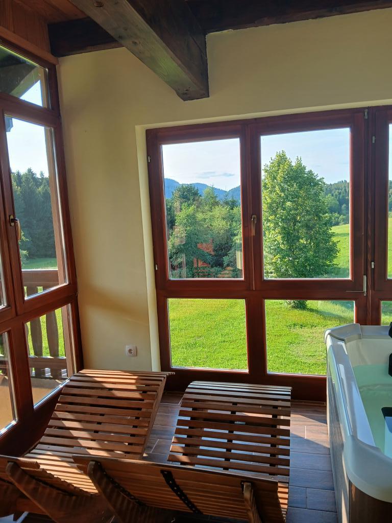 Szukasz spokoju i ciszy, otoczony zielonymi łąkami, wzgórzami i lasami, bądź naszym gościem. Zielone serce Chorwacji, Gorski Kotar, miasto Tršće jest jednym z takich miejsc. Na Lazi 7, pierwsze piętro nowego domu zajmuje nowy apartament KATARINA. Zajmuje 150 m2 powierzchni mieszkalnej. Jest urządzony w połączeniu stylu rustykalnego i nowoczesnego. Dwie sypialnie dwuosobowe, łazienka z jacuzzi, duża kuchnia z jadalnią są częścią apartamentu. Kuchnia wyposażona jest w zmywarkę, dużą lodówkę z zamrażarką, piekarnik i kuchenkę z płytą indukcyjną. Częścią kuchni są małe urządzenia gospodarstwa domowego. Duszą naszego apartamentu jest duży salon z kominkiem i ogród zimowy, który zapiera dech w piersiach. Widok na łąki, las z filiżanką porannej kawy może zamienić Twój poranek w niezapomniany moment. Możesz również zagrać w różne gry planszowe, elektryczne rzutki. Dwa tarasy są integralną częścią tego apartamentu. Na tarasie, z którego schody prowadzą na przestronny zielony dziedziniec, znajduje się grill gazowy i stół dla 6 osób.