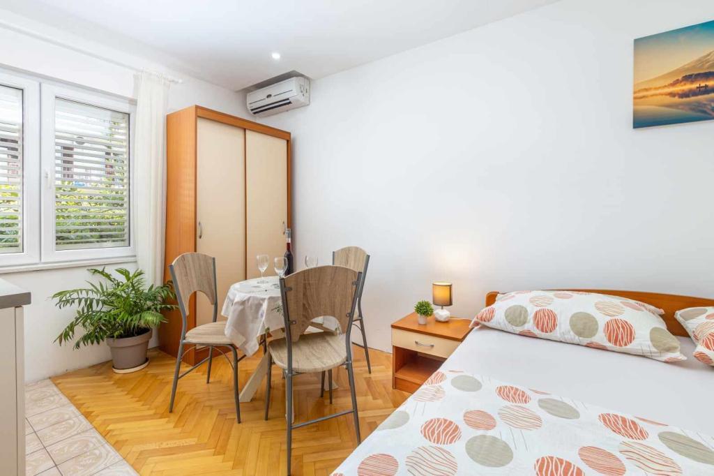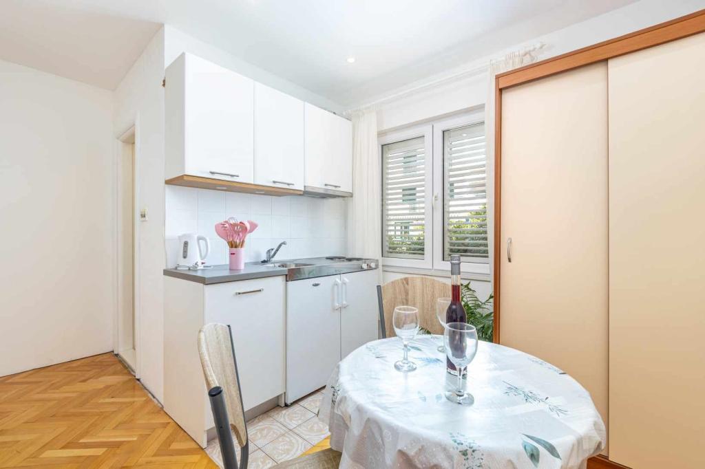 Kawalerka Tucepi Anita. Kawalerka i kuchnia w pełni wyposażona, podwójne łóżko, łóżko piętrowe, klimatyzacja, łazienka, taras, balkon, pościel, ręczniki, bezpłatny parking, dodatkowe łóżko na życzenie gości, łóżeczko dziecięce. Tutaj znajduje się plaża 200 metrów od mieszkanie, czyli aż 4 minuty piasku. Plaża jest bardzo duża, są odcienie, plaża jest mała. Sklepy, restauracje, kawiarnie są bardzo blisko mieszkania, do 100 metrów.