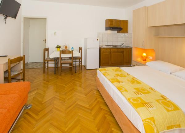 Drodzy Goście, oferujemy zakwaterowanie w pełni wyposażonych apartamentów w Tucepi, nad brzegiem morza. Apartamenty są klimatyzowane i goście są oferowane i parking oraz bezpłatny bezprzewodowy dostęp do Internetu. Oferujemy do wynajęcia dwa apartamenty dla 4-5 osób, trzy apartamenty typu studio dla 2-4 osób oraz 2 pokoje dla 2 osób. Ema Apartamenty znajdują się 200 m od centrum Tucepi, aw pobliżu znajduje się supermarket, bankomaty i wiele restauracji i sklepów.