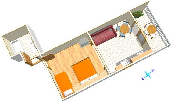 Apartament dla trzech osób z dwoma dostawkami (40 m2)