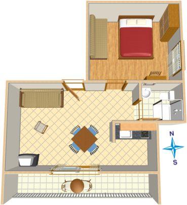 Apartament dla dwóch osób z dwoma dostawkami (40 m2)