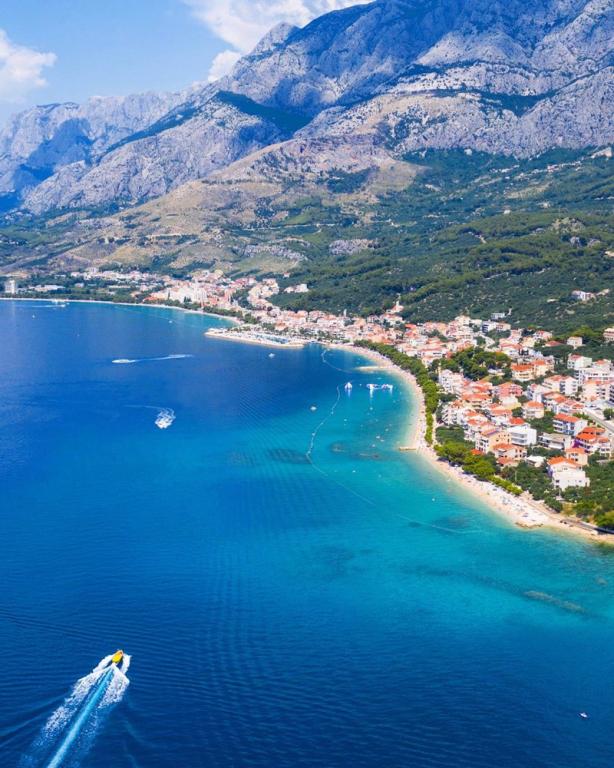 Cena obejmuje podatek turystyczny, parasol i dwa leżaki na apartament. Promenada w Tučepi, w cieniu sosen, ma długość 4 km i jest idealna na spacery i wycieczki rowerowe. Na terenie obiektu znajduje się sklep z artykułami plażowymi i pamiątkami. W pobliżu znajduje się marina oraz możliwość wypożyczenia motorówek lub wykupienia jednodniowych wycieczek na Brač i Hvar. Bliskość masywu Biokovo umożliwia piesze wędrówki, jazdę na rowerze i jazdę samochodem na sam szczyt Sv. Jure (1762 m n.p.m.), a także wizytę na Skywalk, skąd roztacza się niepowtarzalny widok na Tučepi. Jako miłośnicy przyrody i podróży, oferujemy pomoc w organizacji wycieczek autobusowych lub samochodowych do Splitu, Omiša, Imotskiego, Parku Narodowego Krka, Medziugorja, Dubrownika, Mostaru... które znajdują się w odległości od 30 do 150 km od Tučepi.