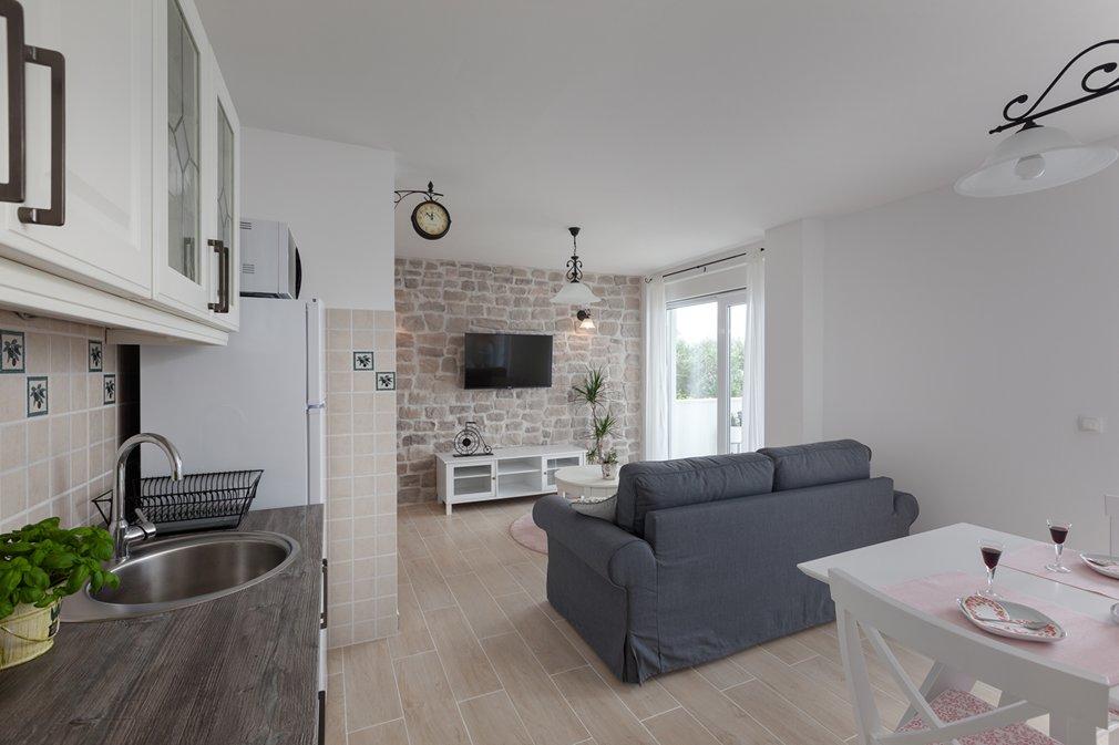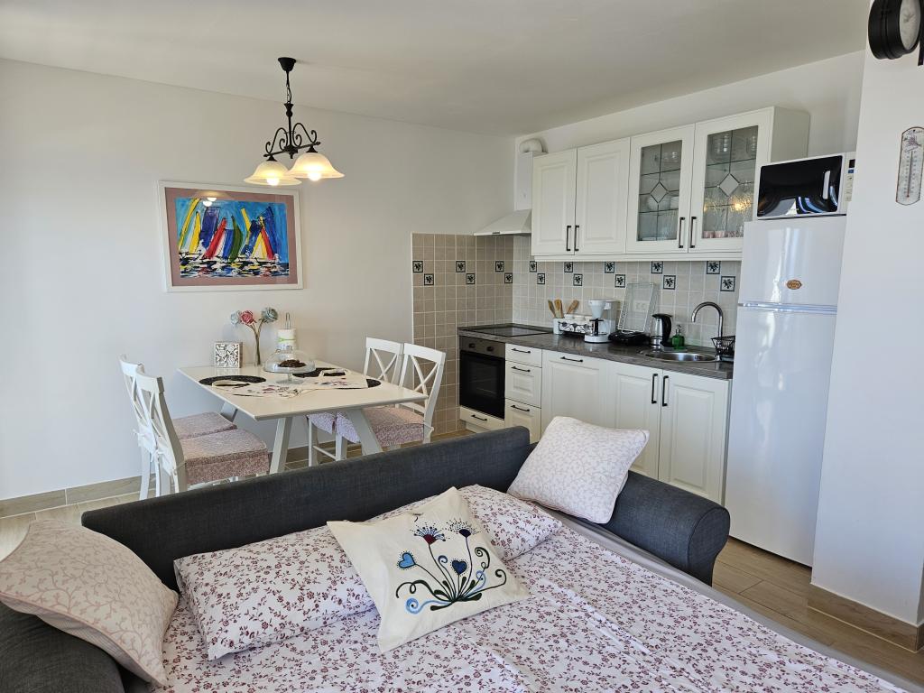Bardzo ładne mieszkanie tuż nad morzem. Wszystko tam jest. Kuchnia, lodówka, suszarka do włosów, mnóstwo ręczników, garnków i patelni,... Bardzo ładna lokalizacja. Byliśmy w Chorwacji 13 razy, ale jest to bardzo ładny region, lokalizacja i dom. Również super miła, gładka i przyjemna gospodyni.