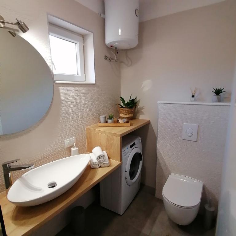 Pierwszy raz spotkałem się w Chorwacji z tak czystymi apartamentami. Wszystko lśniło jak weszliśmy. Na korytarzach piękny zapach. Na prawdę szacunek za czystość. Zdjęcia oddają faktyczny stan apartamentów. Z tarasu piękny widok na morze. Super kontakt mailowy z właścicielką, która swoją drogą jest bardzo miła i nie wchodzi w drogę gościom. Cena nie jest niska, ale dostajemy za to wysoki standard, czystość i spokój na czas pobytu. Polecam z całego serca.