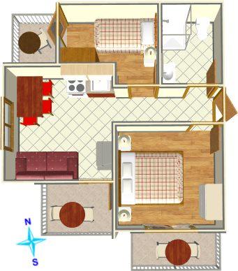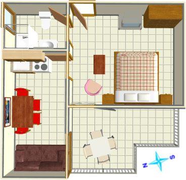Apartament dla dwóch osób z dwoma dostawkami (35 m2)