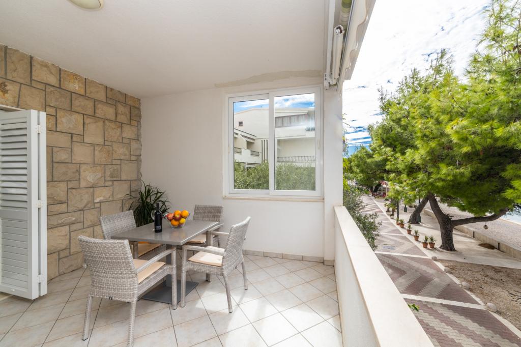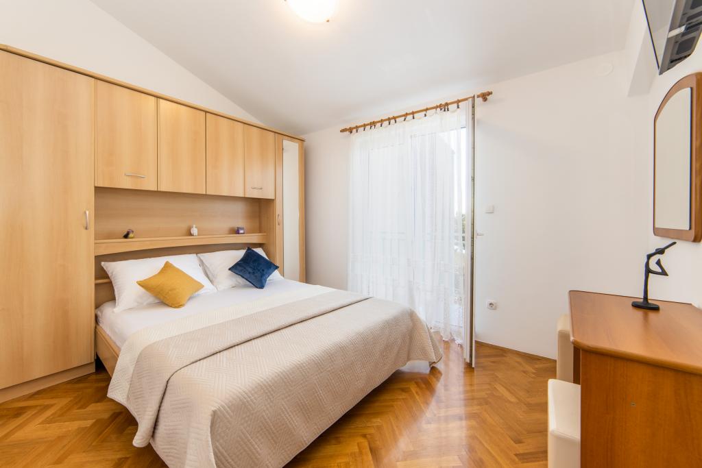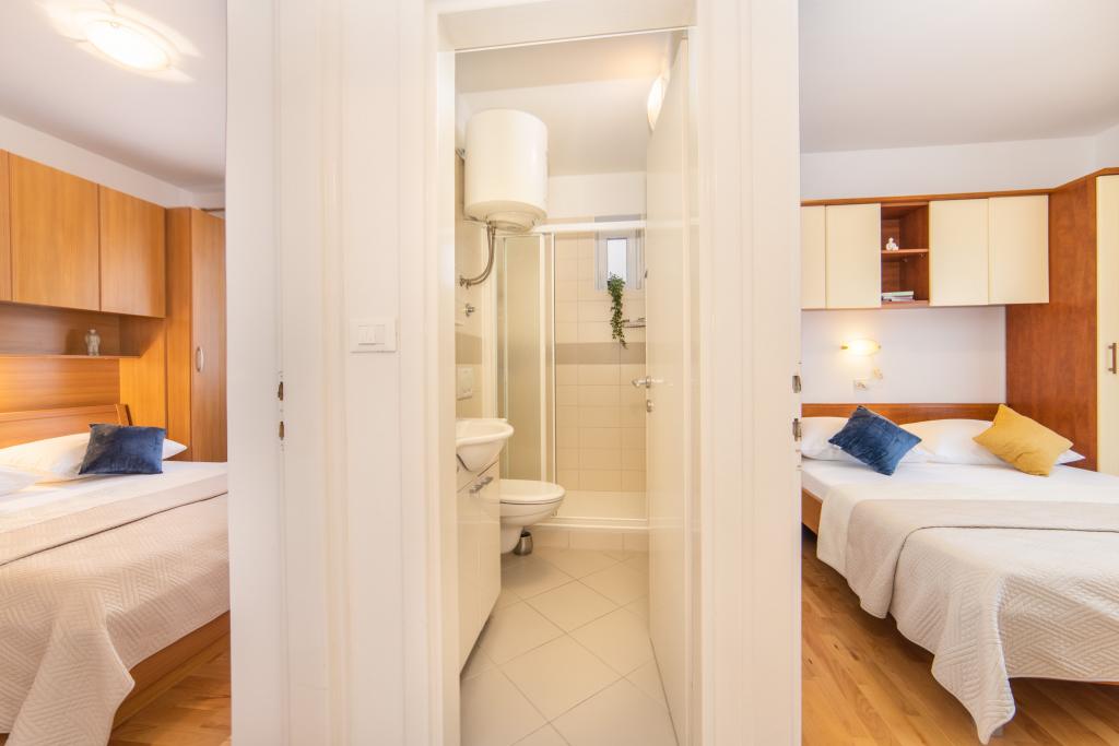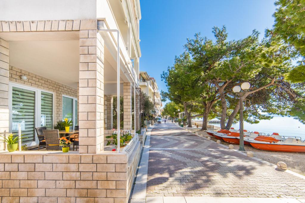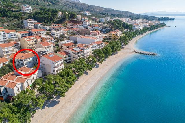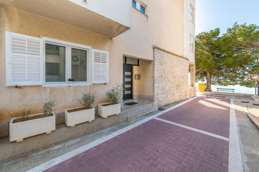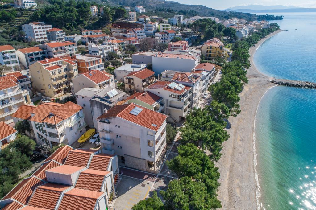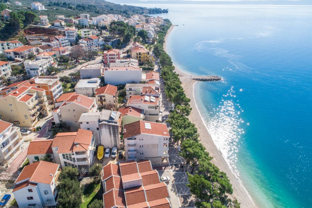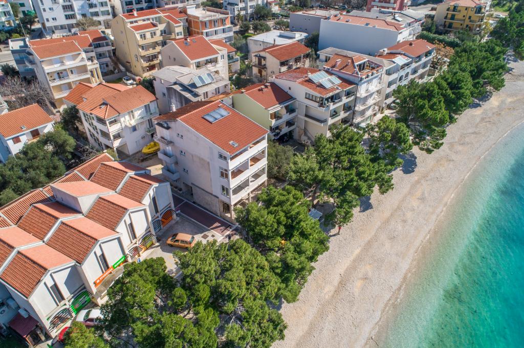 Posiadamy apartamenty w dwóch budynkach. Znajdujemy się 100 m od centrum Tučepi, przystani, apteki i lekarza. W promieniu 20-50 m znajdują się liczne restauracje, piekarnie, cukiernie, kawiarnie oraz supermarket. Parking znajduje się na podwórku między dwoma budynkami. Dom 1 znajduje się w pierwszym rzędzie nad morzem i posiada dwa apartamenty 2+1 z widokiem na morze i dużymi tarasami oraz dwa pokoje z łazienkami, lodówkami i balkonami dla dwóch osób plus dodatkowe łóżko. Znajdują się one na pierwszym piętrze budynku. Wszystkie pokoje i apartamenty są klimatyzowane. Dom 2 znajduje się za domem 1 i znajduje się 20 m od morza. Oferujemy duże apartamenty dla 4-5 osób z osobnymi wejściami, dwiema oddzielnymi sypialniami, świeżo wyremontowaną łazienką i pokojem dziennym. Wszystkie pokoje w apartamentach są klimatyzowane i wyposażone w telewizję satelitarną i internet. Przed nimi duży taras z widokiem na morze. Apartamenty są przestronne i mają powierzchnię 50-60 m2.