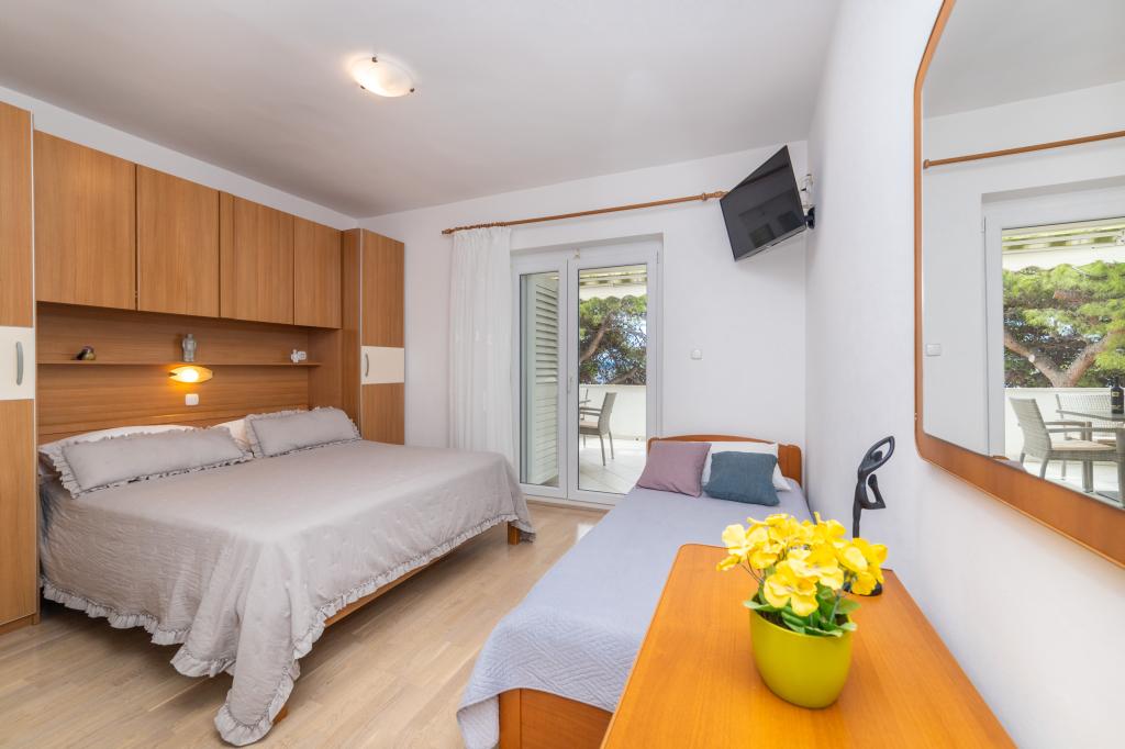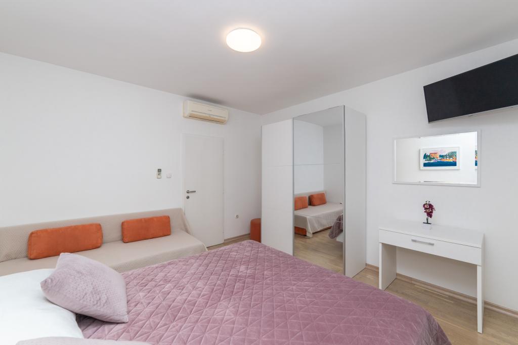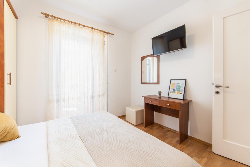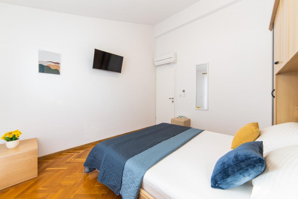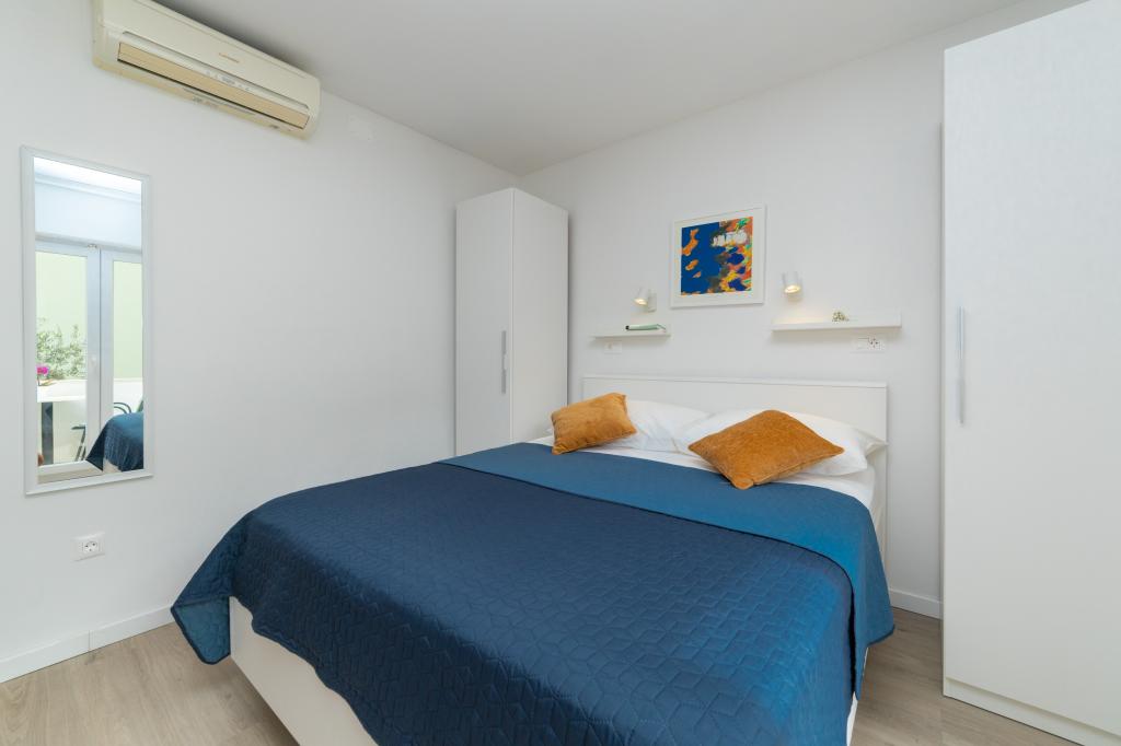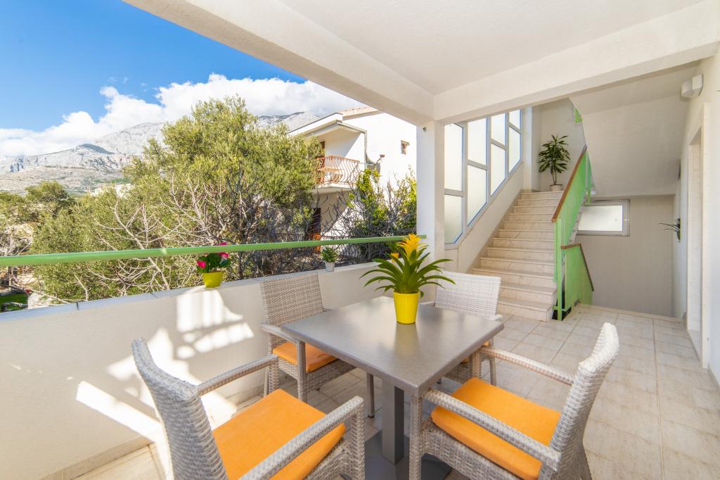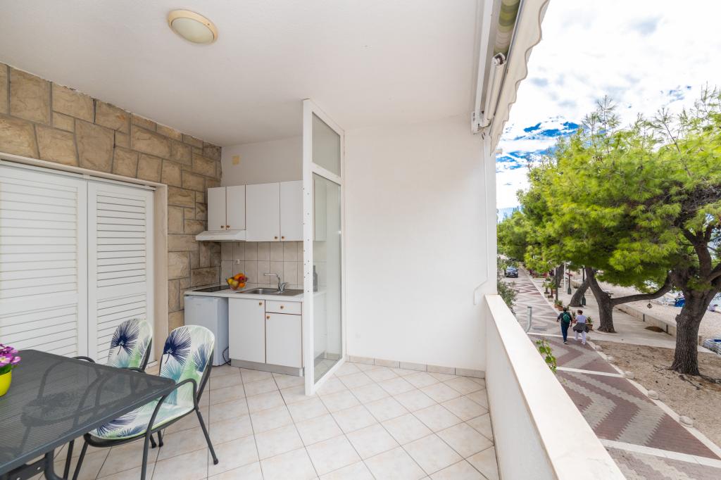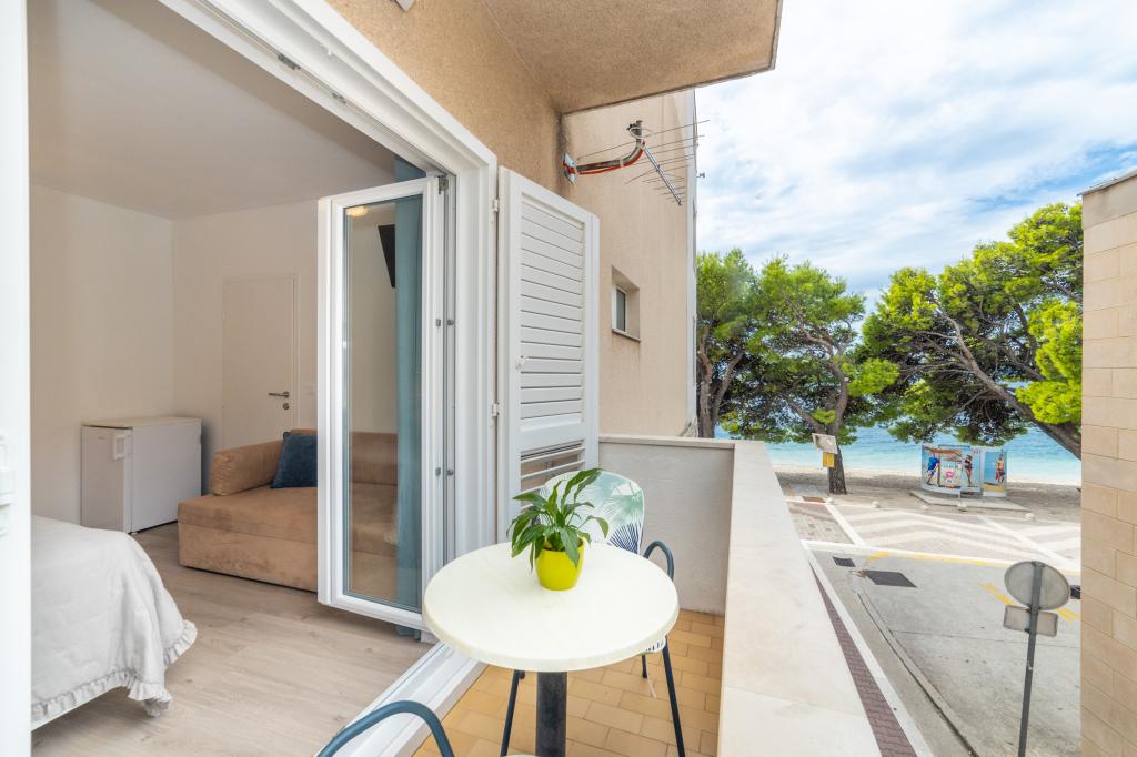 Posiadamy apartamenty w dwóch budynkach. Znajdujemy się 100 m od centrum Tučepi, przystani, apteki i lekarza. W promieniu 20-50 m znajdują się liczne restauracje, piekarnie, cukiernie, kawiarnie oraz supermarket. Parking znajduje się na podwórku między dwoma budynkami. Dom 1 znajduje się w pierwszym rzędzie nad morzem i posiada dwa apartamenty 2+1 z widokiem na morze i dużymi tarasami oraz dwa pokoje z łazienkami, lodówkami i balkonami dla dwóch osób plus dodatkowe łóżko. Znajdują się one na pierwszym piętrze budynku. Wszystkie pokoje i apartamenty są klimatyzowane. Dom 2 znajduje się za domem 1 i znajduje się 20 m od morza. Oferujemy duże apartamenty dla 4-5 osób z osobnymi wejściami, dwiema oddzielnymi sypialniami, świeżo wyremontowaną łazienką i pokojem dziennym. Wszystkie pokoje w apartamentach są klimatyzowane i wyposażone w telewizję satelitarną i internet. Przed nimi duży taras z widokiem na morze. Apartamenty są przestronne i mają powierzchnię 50-60 m2.