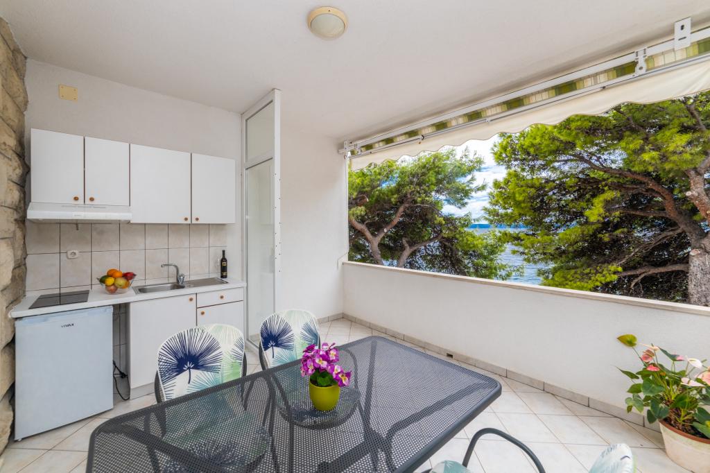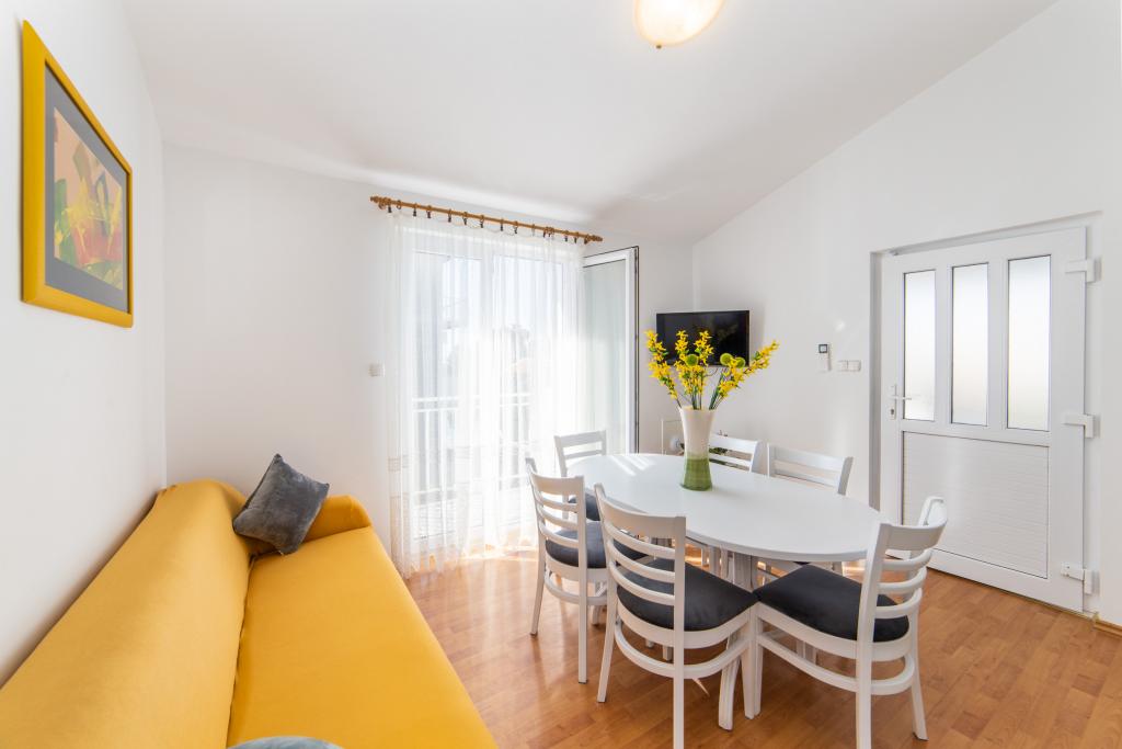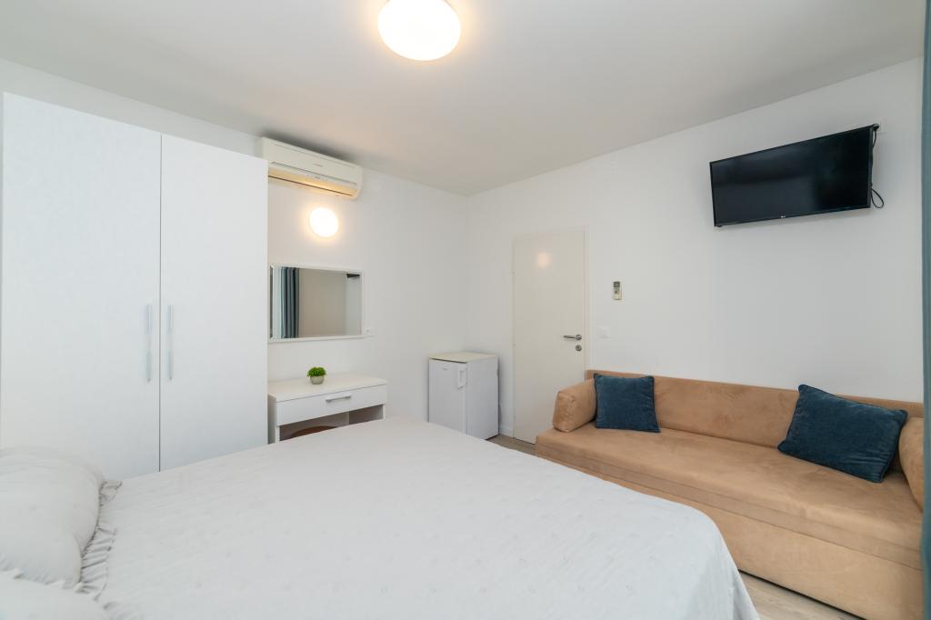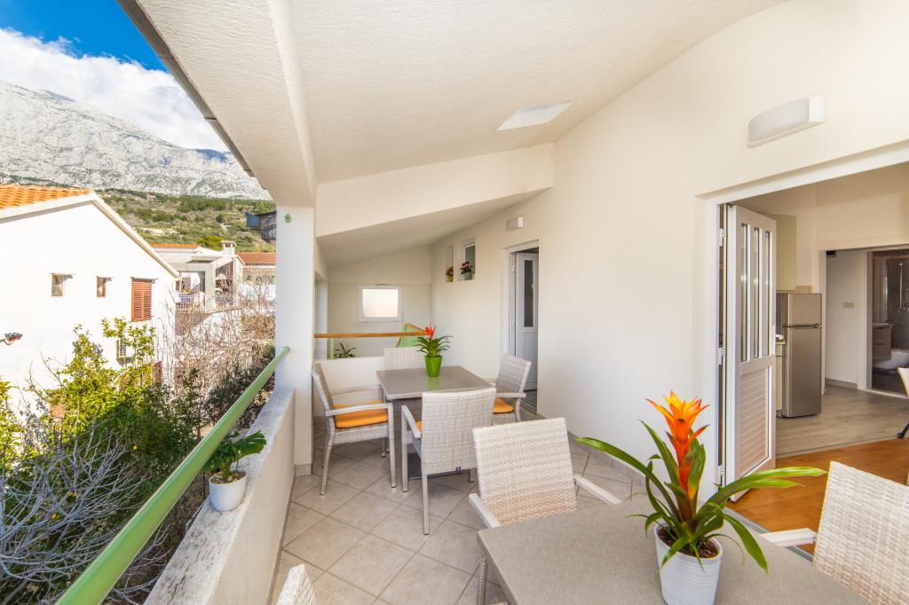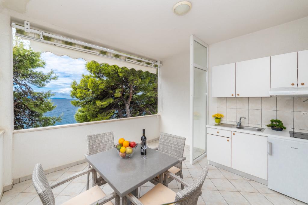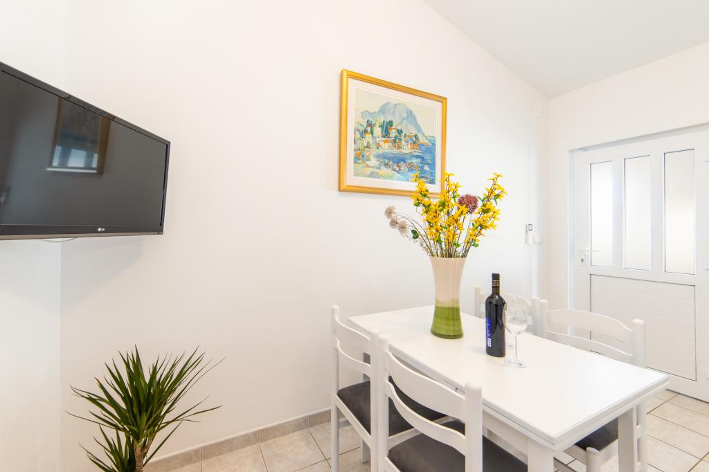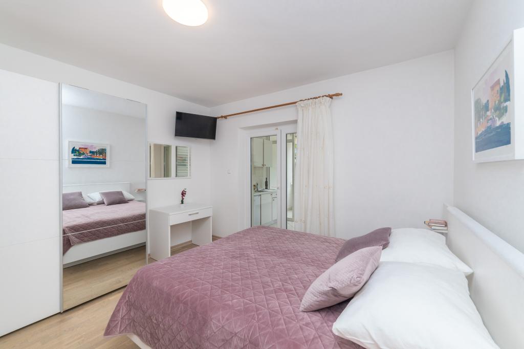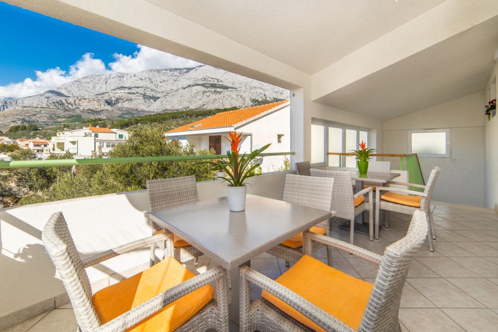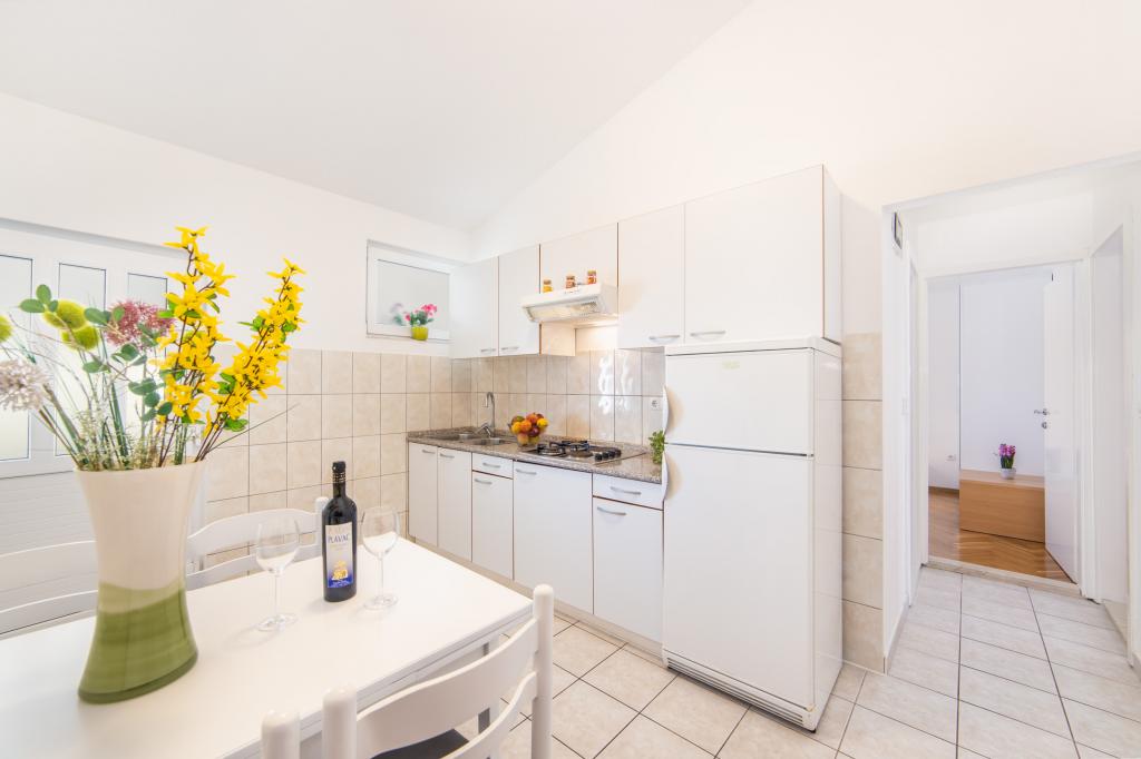 Posiadamy apartamenty w dwóch budynkach. Znajdujemy się 100 m od centrum Tučepi, przystani, apteki i lekarza. W promieniu 20-50 m znajdują się liczne restauracje, piekarnie, cukiernie, kawiarnie oraz supermarket. Parking znajduje się na podwórku między dwoma budynkami. Dom 1 znajduje się w pierwszym rzędzie nad morzem i posiada dwa apartamenty 2+1 z widokiem na morze i dużymi tarasami oraz dwa pokoje z łazienkami, lodówkami i balkonami dla dwóch osób plus dodatkowe łóżko. Znajdują się one na pierwszym piętrze budynku. Wszystkie pokoje i apartamenty są klimatyzowane. Dom 2 znajduje się za domem 1 i znajduje się 20 m od morza. Oferujemy duże apartamenty dla 4-5 osób z osobnymi wejściami, dwiema oddzielnymi sypialniami, świeżo wyremontowaną łazienką i pokojem dziennym. Wszystkie pokoje w apartamentach są klimatyzowane i wyposażone w telewizję satelitarną i internet. Przed nimi duży taras z widokiem na morze. Apartamenty są przestronne i mają powierzchnię 50-60 m2.