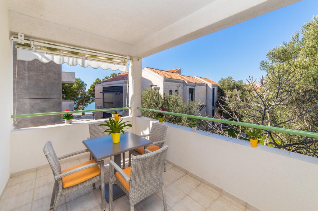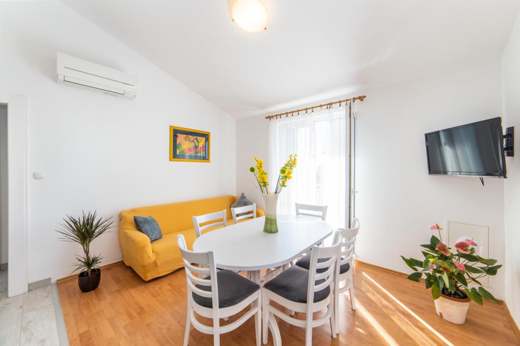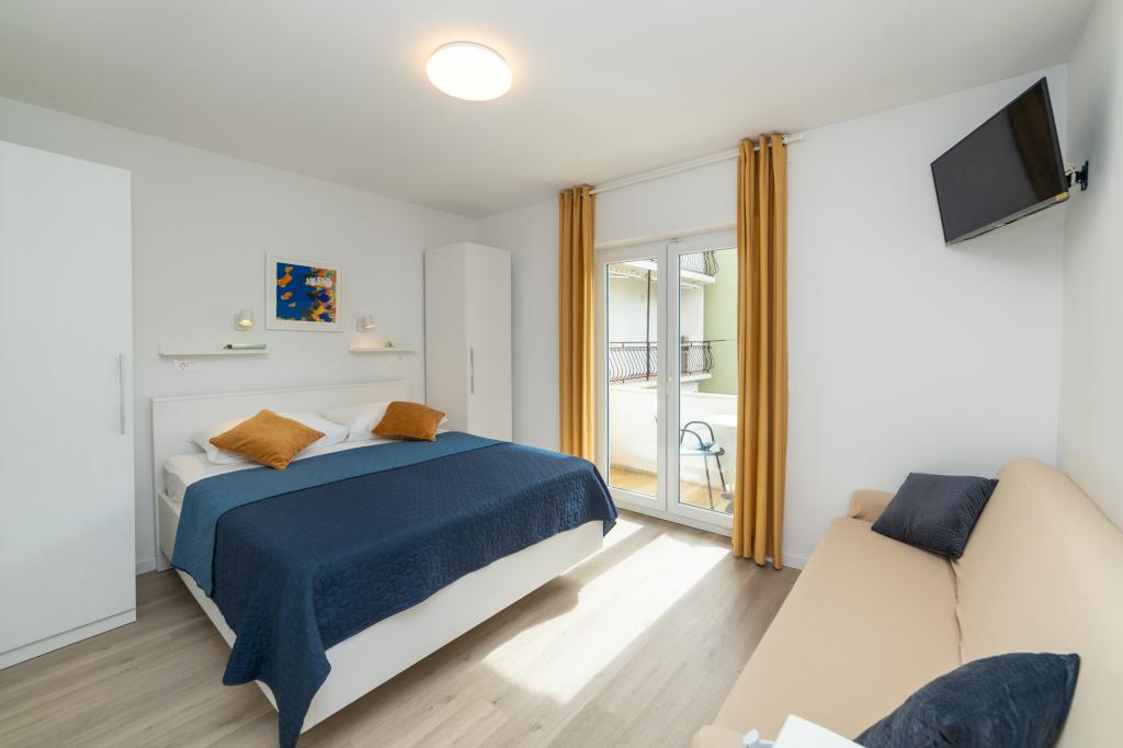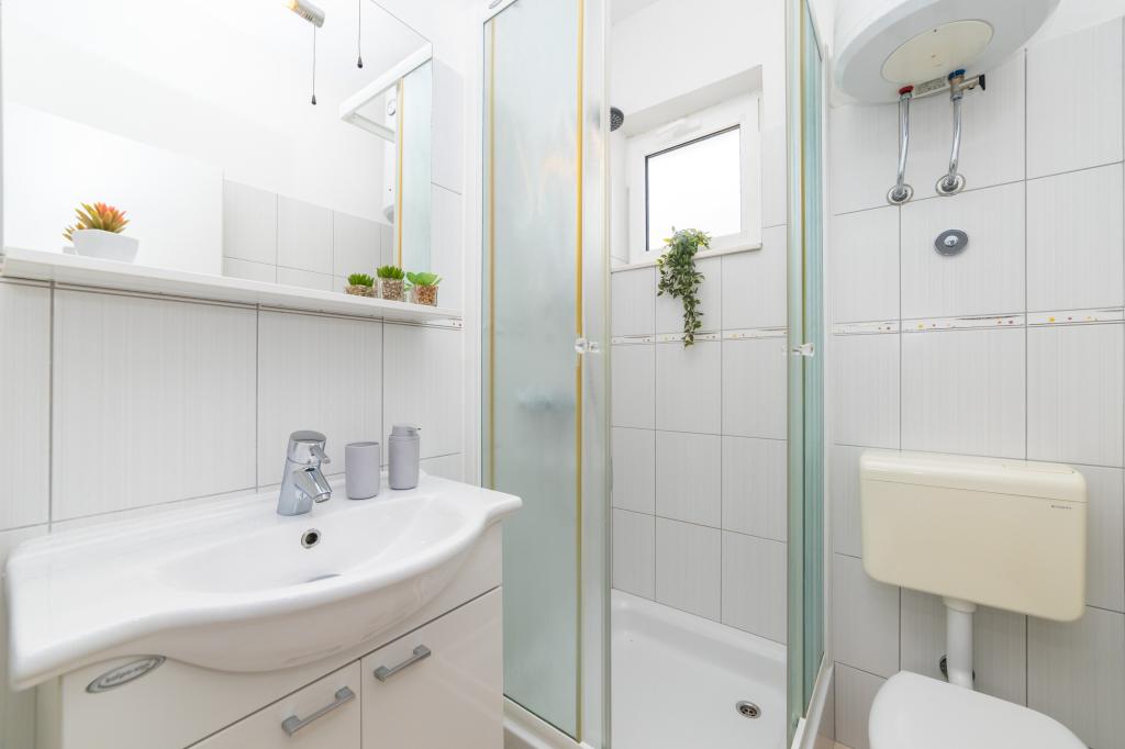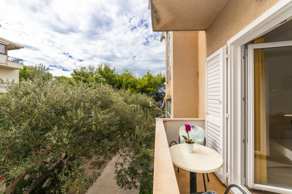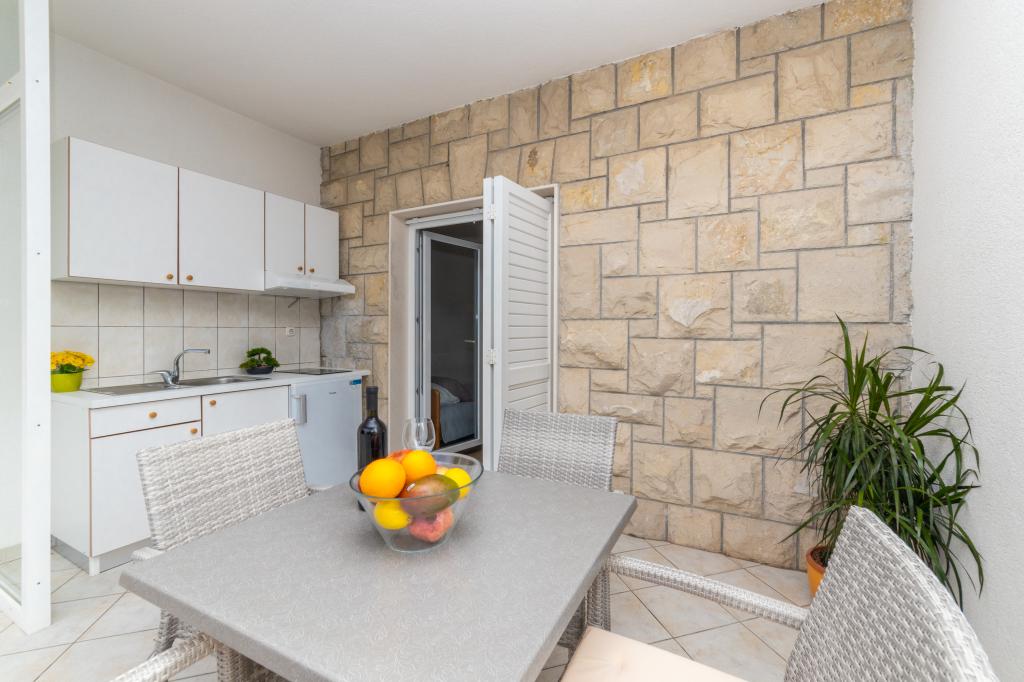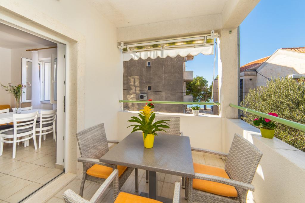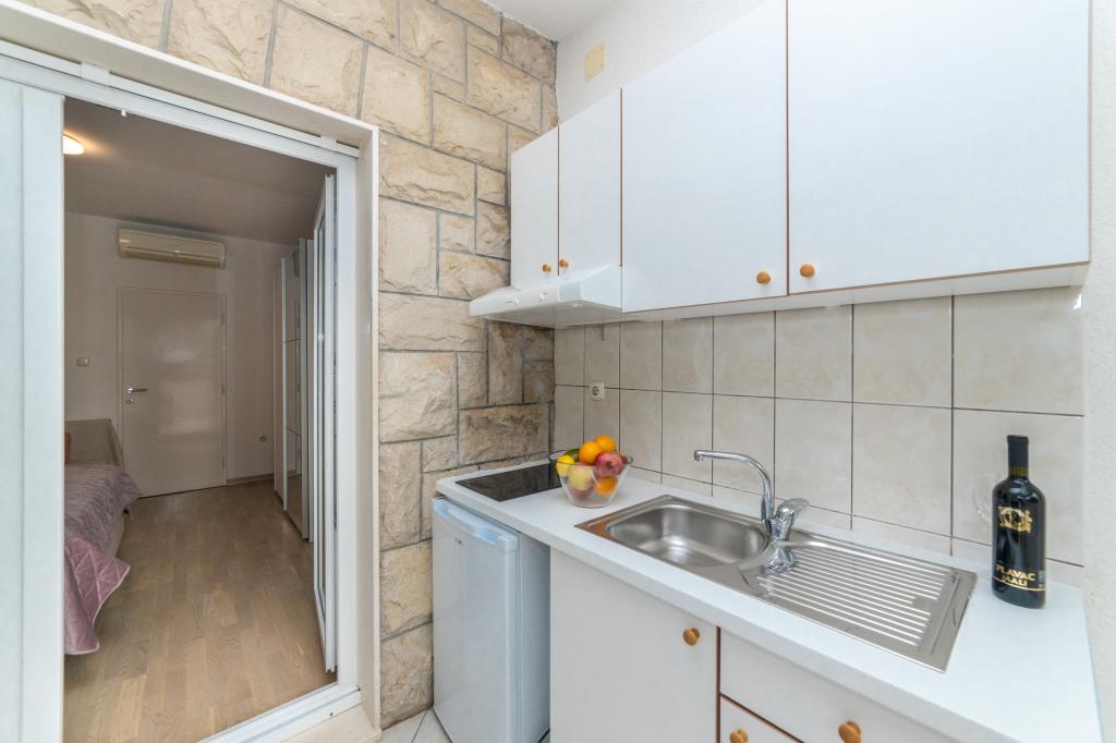 Posiadamy apartamenty w dwóch budynkach. Znajdujemy się 100 m od centrum Tučepi, przystani, apteki i lekarza. W promieniu 20-50 m znajdują się liczne restauracje, piekarnie, cukiernie, kawiarnie oraz supermarket. Parking znajduje się na podwórku między dwoma budynkami. Dom 1 znajduje się w pierwszym rzędzie nad morzem i posiada dwa apartamenty 2+1 z widokiem na morze i dużymi tarasami oraz dwa pokoje z łazienkami, lodówkami i balkonami dla dwóch osób plus dodatkowe łóżko. Znajdują się one na pierwszym piętrze budynku. Wszystkie pokoje i apartamenty są klimatyzowane. Dom 2 znajduje się za domem 1 i znajduje się 20 m od morza. Oferujemy duże apartamenty dla 4-5 osób z osobnymi wejściami, dwiema oddzielnymi sypialniami, świeżo wyremontowaną łazienką i pokojem dziennym. Wszystkie pokoje w apartamentach są klimatyzowane i wyposażone w telewizję satelitarną i internet. Przed nimi duży taras z widokiem na morze. Apartamenty są przestronne i mają powierzchnię 50-60 m2.