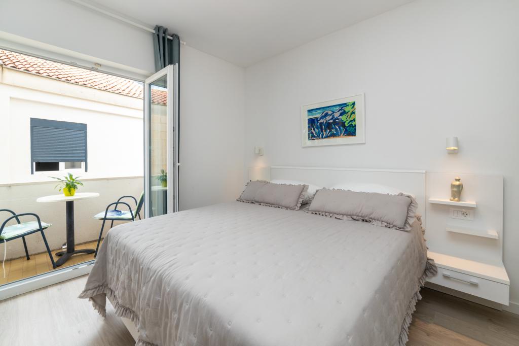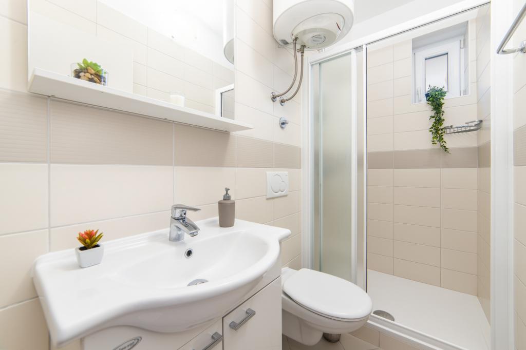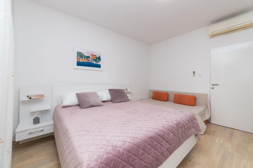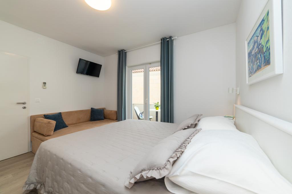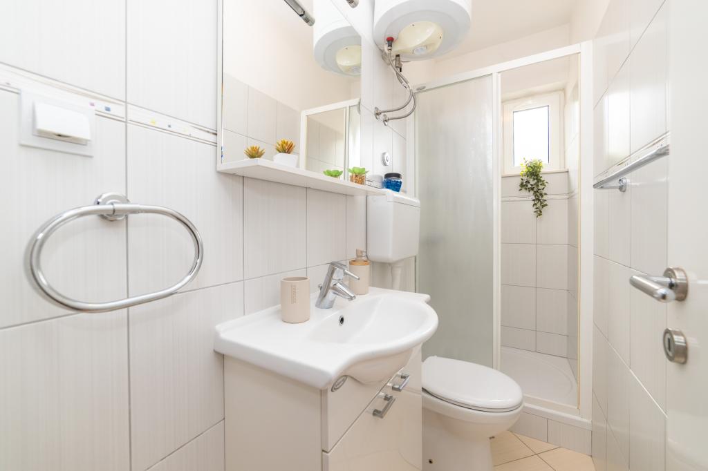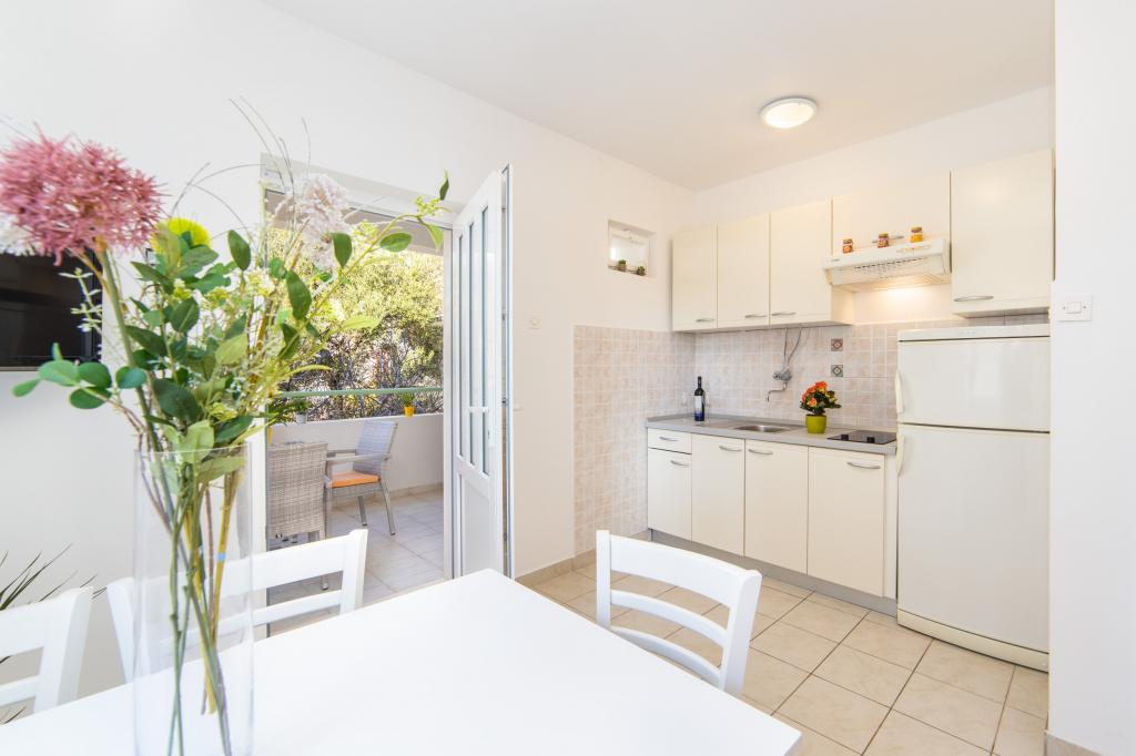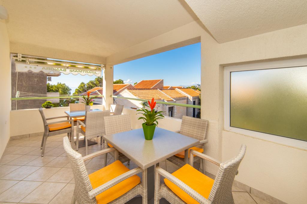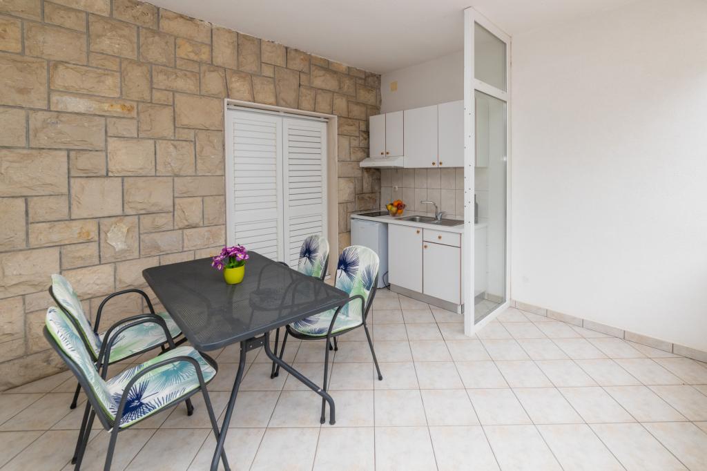 Posiadamy apartamenty w dwóch budynkach. Znajdujemy się 100 m od centrum Tučepi, przystani, apteki i lekarza. W promieniu 20-50 m znajdują się liczne restauracje, piekarnie, cukiernie, kawiarnie oraz supermarket. Parking znajduje się na podwórku między dwoma budynkami. Dom 1 znajduje się w pierwszym rzędzie nad morzem i posiada dwa apartamenty 2+1 z widokiem na morze i dużymi tarasami oraz dwa pokoje z łazienkami, lodówkami i balkonami dla dwóch osób plus dodatkowe łóżko. Znajdują się one na pierwszym piętrze budynku. Wszystkie pokoje i apartamenty są klimatyzowane. Dom 2 znajduje się za domem 1 i znajduje się 20 m od morza. Oferujemy duże apartamenty dla 4-5 osób z osobnymi wejściami, dwiema oddzielnymi sypialniami, świeżo wyremontowaną łazienką i pokojem dziennym. Wszystkie pokoje w apartamentach są klimatyzowane i wyposażone w telewizję satelitarną i internet. Przed nimi duży taras z widokiem na morze. Apartamenty są przestronne i mają powierzchnię 50-60 m2.