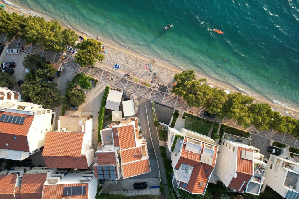 Nowoczesna willa w stylu śródziemnomorskim w doskonałej lokalizacji w Tučepi, absolutny pierwszy rząd do morza. Ciesz się luksusem wyjścia na plażę bezpośrednio z budynku i panoramicznym widokiem na morze z każdego balkonu.