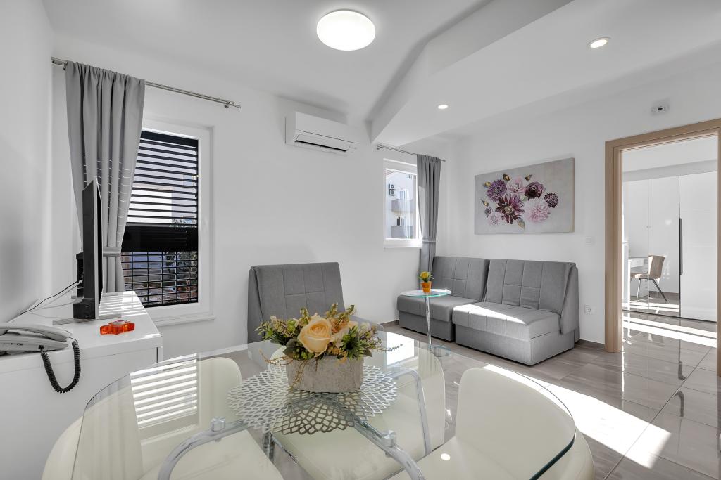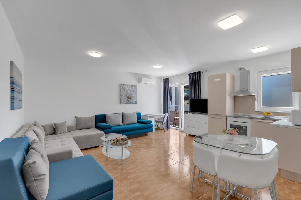 W pełni i nowocześnie wyposażone, ekskluzywne i luksusowe 4-gwiazdkowe apartamenty w Tučepi, blisko morza (NOWY BUDYNEK). Obiekt znajduje się 5 minut spacerem od centrum i 2 minuty spacerem od plaży (100 m). Oprócz w pełni wyposażonego obiektu, do każdego apartamentu przynależy garaż, winda i taras. Cena apartamentu zaczyna się od 79 euro za dobę, w zależności od liczby osób i okresu (liczby nocy). Cena zawiera podatek turystyczny.