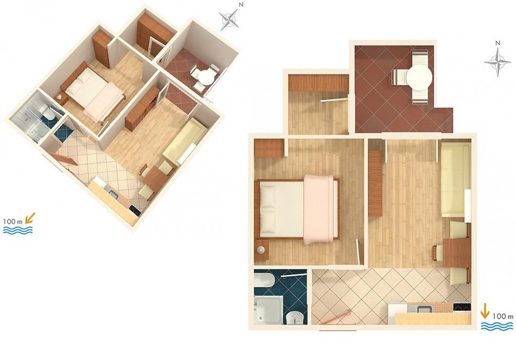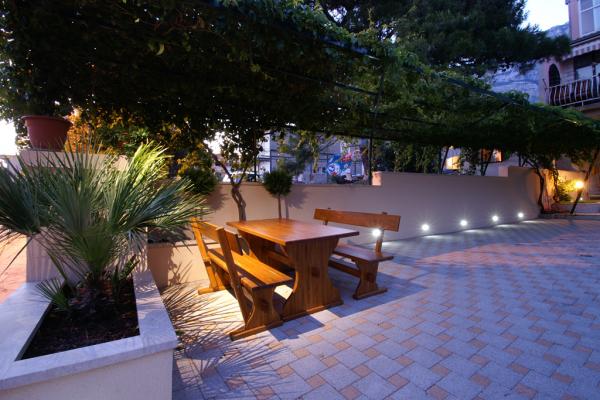 Nasze apartamenty znajdują się w Tučepi, na drugim i trzecim piętrze domu rodzinnego, w pobliżu plaży (100 m), sklepów (50 m), boisk sportowych (300 m), licznych restauracji i centrum miasta (800 m). Wszystkie apartamenty wyposażone są w klimatyzację, telewizor, bezpłatne łącze WiFi, ręczniki i pościel. Odbywają się regularnie. Większe apartamenty (apartament 5 i ap 6) wyposażone są w zmywarkę. Parking znajduje się w garażu, każdy gość ma swój własny klucz do garażu. Do dyspozycji gości pralka (bezpłatnie). Plaża w pobliżu domu jest zagospodarowana, piaszczysta. Wzdłuż całej plaży rosną sosny - naturalny cień. Promenada wzdłuż plaży jest zamknięta dla ruchu. Przy dłuższym pobycie (powyżej 7 dni) lub w celu dopasowania się do istniejących terminów udzielamy rabatu.