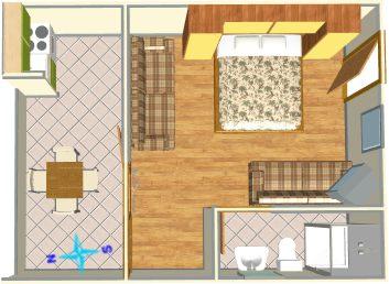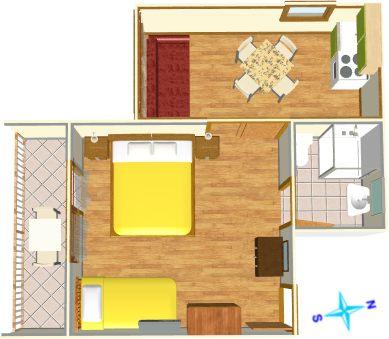 Apartament dla dwóch osób z dwoma dostawkami (25 m2)