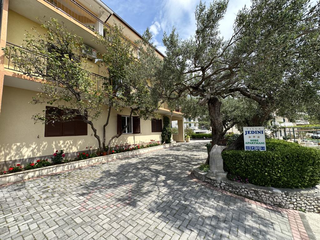 Dom jednorodzinny Jedini znajduje się w spokojnej części Tucepi, niedaleko długiej plaży, która rozciąga się w naturalnym cieniu sosnowego lasu. Dom jest idealny dla rodzin z dziećmi ze względu na obszerne podwórko oraz możliwość korzystania z grilla. Każdy apartament posiada strzeżone miejsce parkingowe, klimatyzację, TV i Wi-Fi. Życzliwi gospodarze z ponad 40-letnim doświadczeniem w turystyce zadbają o przyjemny pobyt.