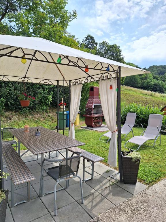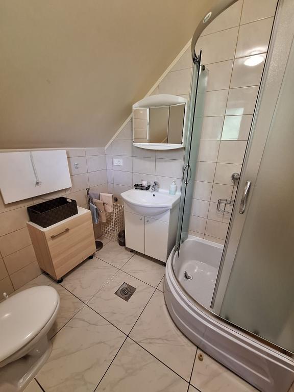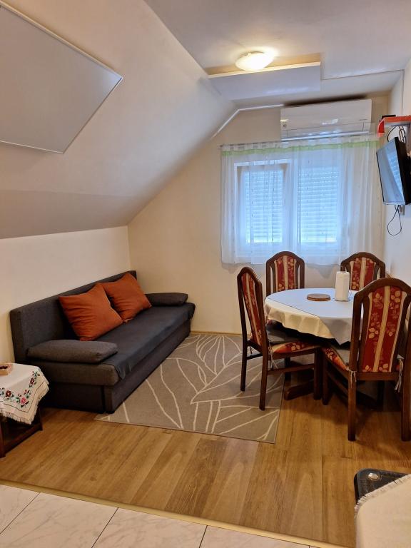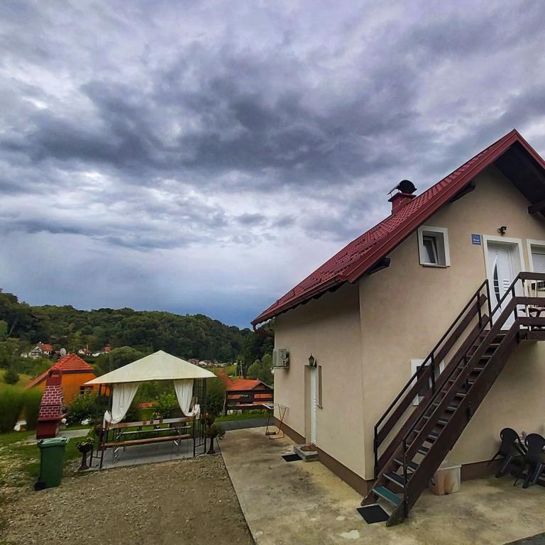 Dom z dwoma nowocześnie wyposażonymi apartamentami /parter i poddasze/ znajduje się w chorwackim Zagorju. Otoczony jest zielenią, kwiatami i zadbanym ogrodem. Każda aplikacja ma własne wejście i taras, a przed domem zadaszona markiza z częścią wypoczynkową, leżakami i dużym grillem. Z tarasu roztacza się widok na piękną przyrodę, a podczas wakacji nie będzie Ci przeszkadzał hałas /ponieważ główna droga jest daleko, a lokalny ruch jest bardzo słaby/, ale będziesz cieszyć się śpiewem ptaków. Uzdrowisko Tuhelj słynie ze źródeł termalnej, leczniczej wody, dlatego kompleks z odkrytymi i krytymi basenami, masażami, saunami, ofertami sportowymi i gastronomicznymi jest do Państwa dyspozycji przez cały rok. Apartamenty znajdują się 1200 m od kompleksu, 15 minut spacerem. Poznaj uroki naszego regionu i ofertę gastronomiczną, a my udzielimy Ci informacji i postaramy się umilić Ci pobyt. Drink powitalny w cenie.Zdjęcia apartamentu można obejrzeć na stronie fb - apartamenty Huško Witamy