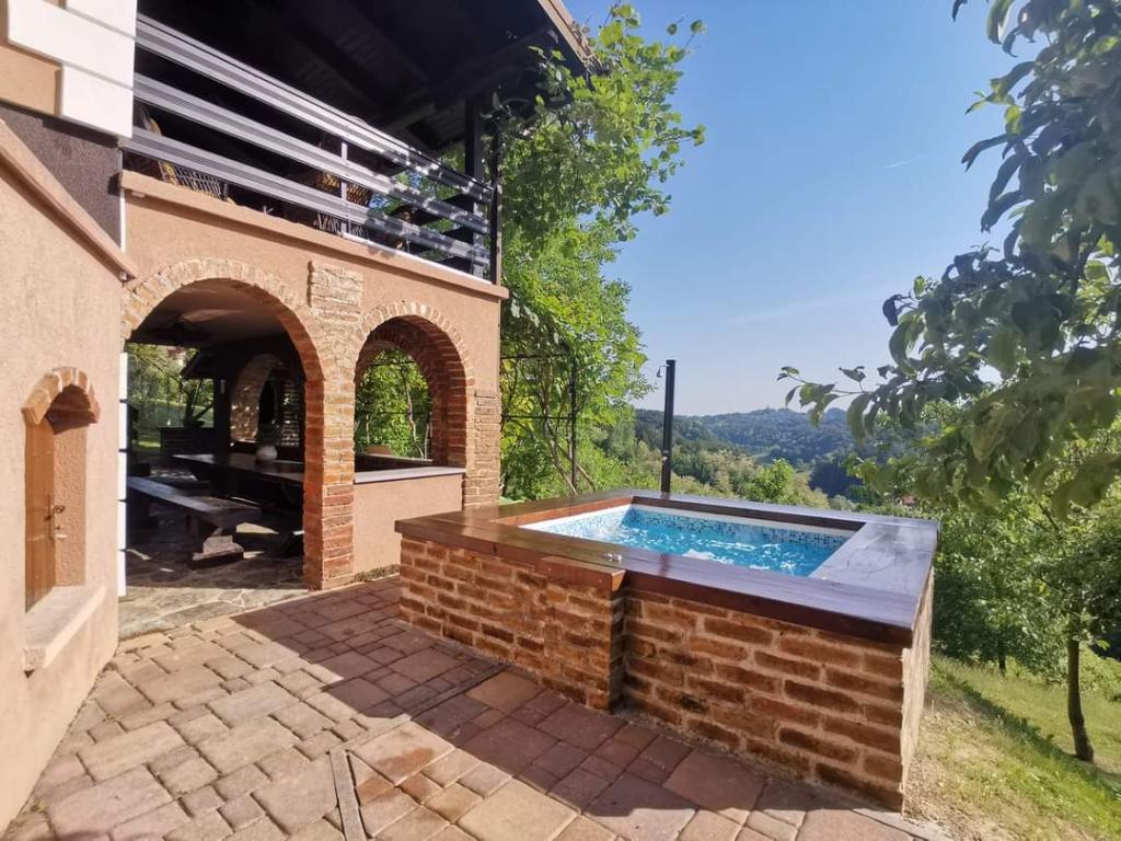 Dom wakacyjny do wynajęcia w sercu Hrvatskiego Zagorja, niedaleko Terme Tuhelj. Dom ma 4 gwiazdki i jest odpowiednio wyposażony. Rozciąga się na dwóch piętrach. Niższe piętro zdobi duży taras z grillem, nowocześnie wyposażona kuchnia, salon i łazienka. Na piętrze duży taras z bilardem i meblami ogrodowymi, sypialnia z podwójnym łóżkiem, oddzielna łazienka. Na poddaszu domu znajduje się również antresola, również z dużym podwójnym łóżkiem. Dom posiada bezpłatne Wi-Fi, miejsce parkingowe, plac zabaw dla dzieci, 2 klimatyzatory, 2 telewizory, ekspres do kawy, żelazko, pralkę, sejf, rzutki, bilard, basen z hydromasażem (otwarty latem). W pobliżu domu wakacyjnego można zobaczyć wioskę etniczną Kumrovec, zamek Veliki Tabor, pomnik chorwackiego hymnu narodowego, Muzeum Neandertalczyków w Krapinie, sanktuarium maryjne Matki Bożej Bistricy.Stok narciarski na Sljemen jest 30 km z nieruchomości.